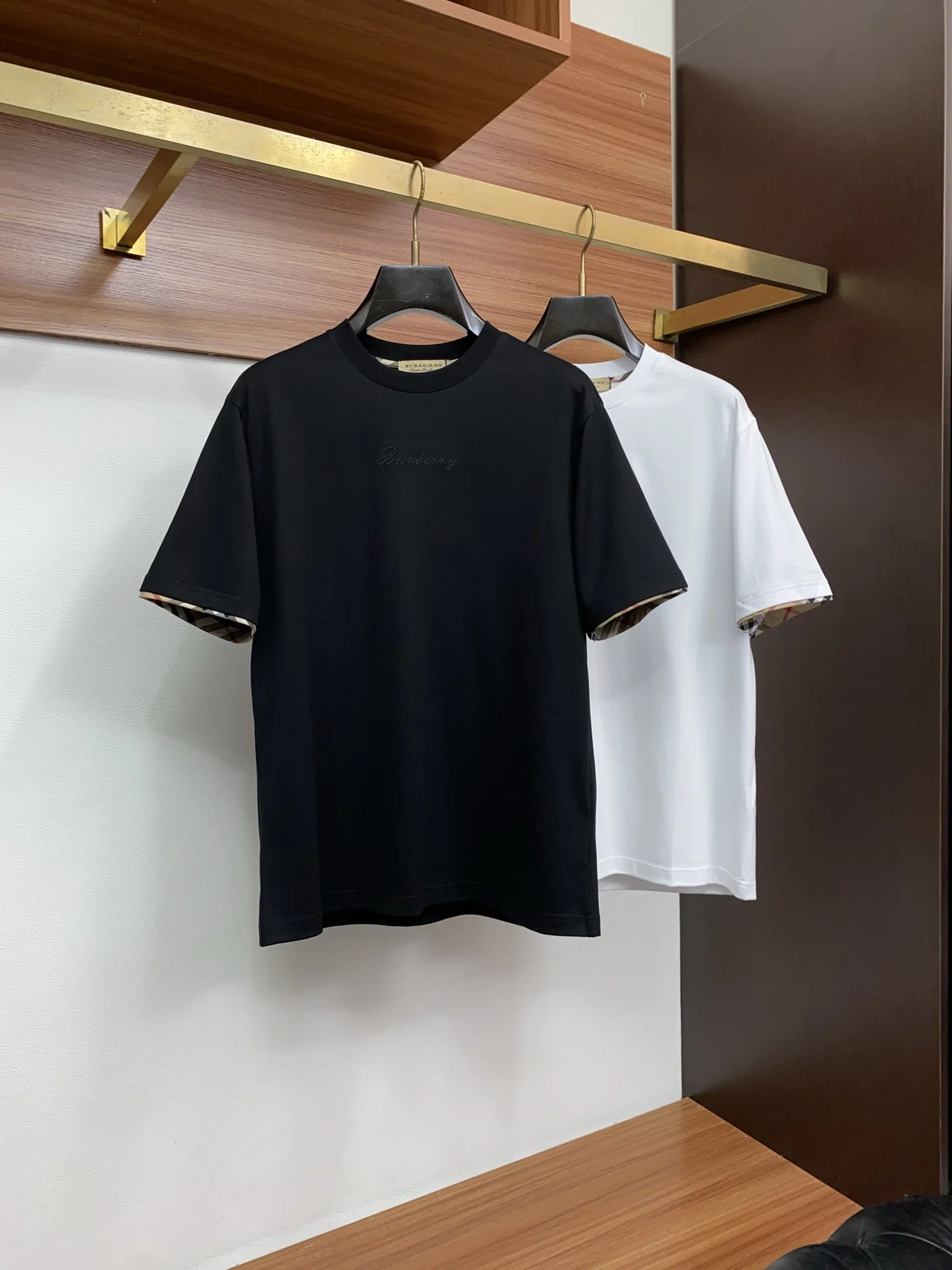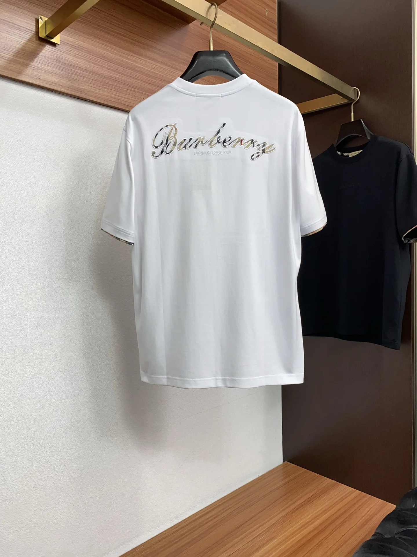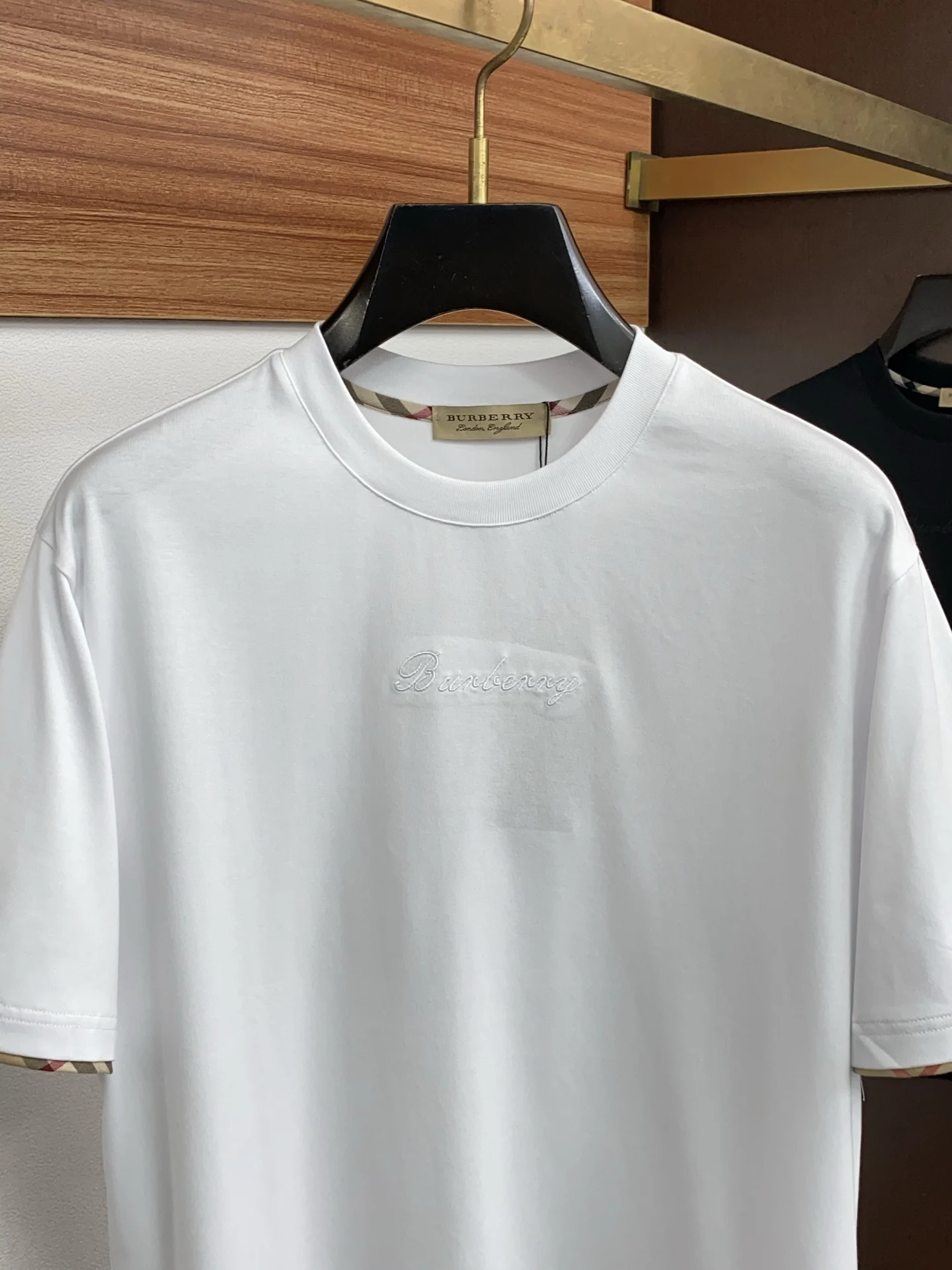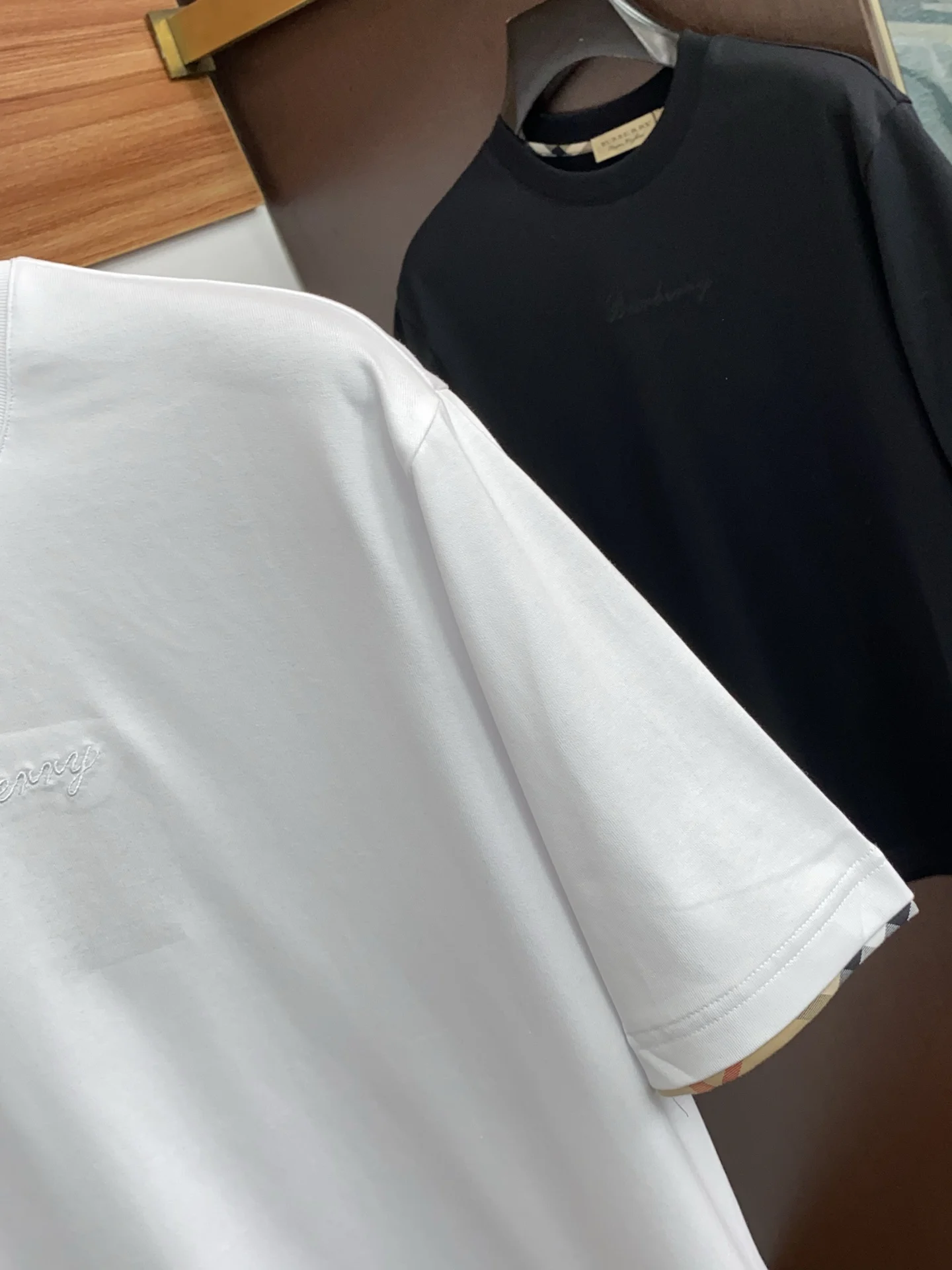 Burberry SS new craft logo pure cotton slightly loose round neck men s short-sleeve T-shirt, the new season s series cleverly integrates the logo into the design, creating a range of sports items full of retro charm. On this versatile T-shirt, a subtly presented pattern with a hint of nostalgia appears on the garment, complemented by the rolled edges at the cuffs. Made from specially selected original double-strand fine cotton plain fabric, it offers a comfortable and structured fit, suitable for both outerwear and layering, available in sizes M-3XL.