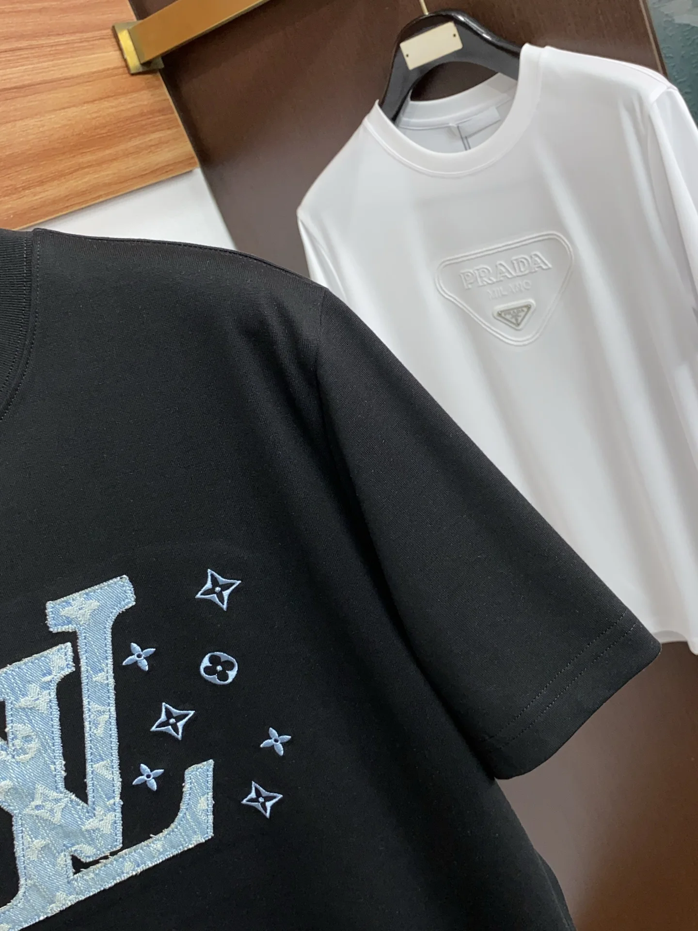 1v Louis Vuitton SS new craft logo pure cotton micro-wide version round neck men s short-sleeve T-shirt, the new season s series cleverly integrates the logo into the design, creating a range of sports items full of retro charm. On this versatile T-shirt, a subtly presented pattern with a hint of nostalgia appears on the garment, complemented by the rolled edges at the cuffs. Selected specific original double-strand fine cotton plain fabric offers a structured and comfortable fit, suitable for both outerwear and layering, available in sizes S-XXL.