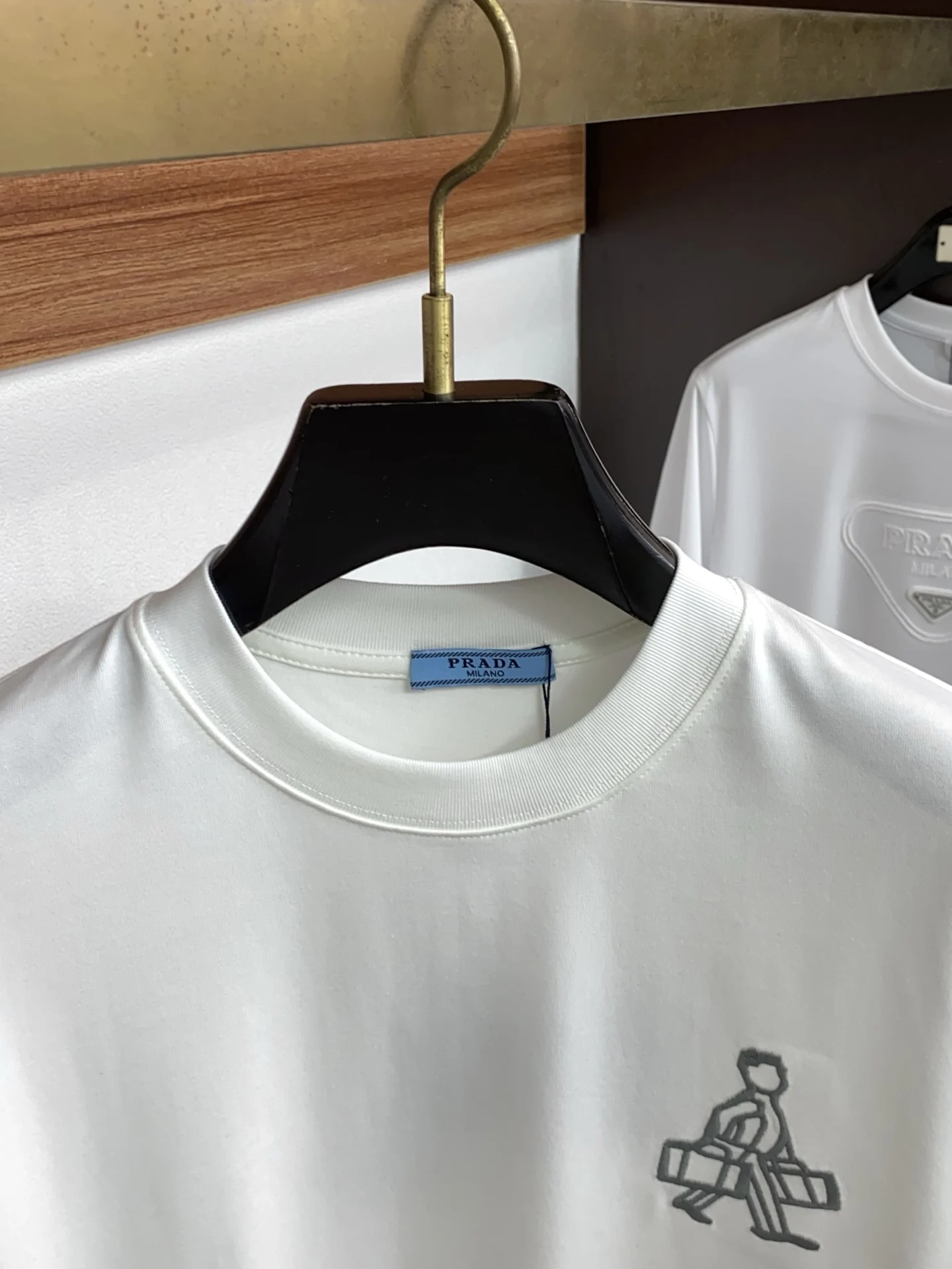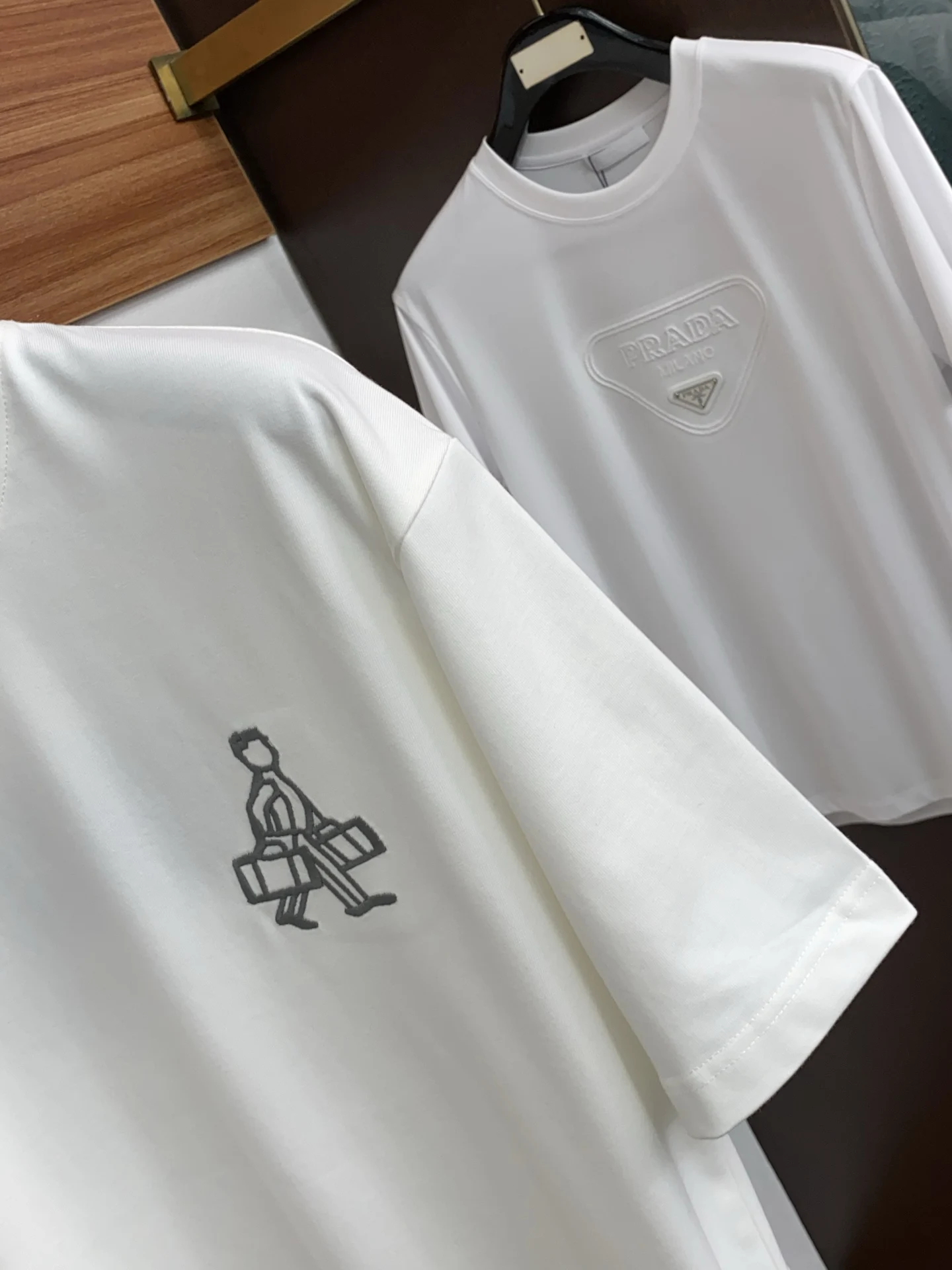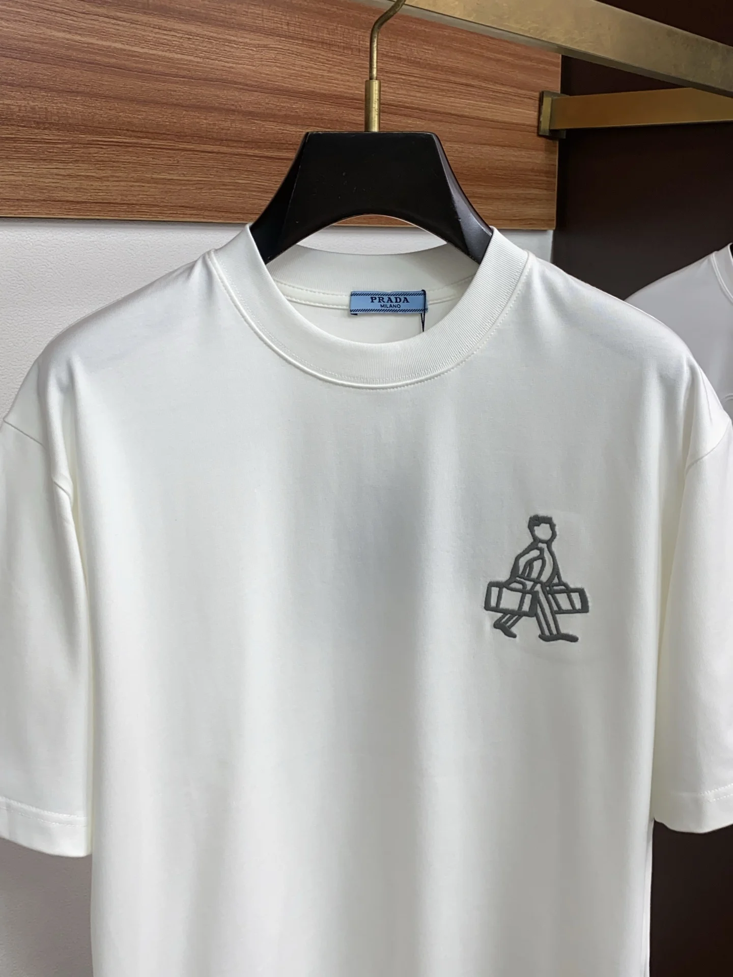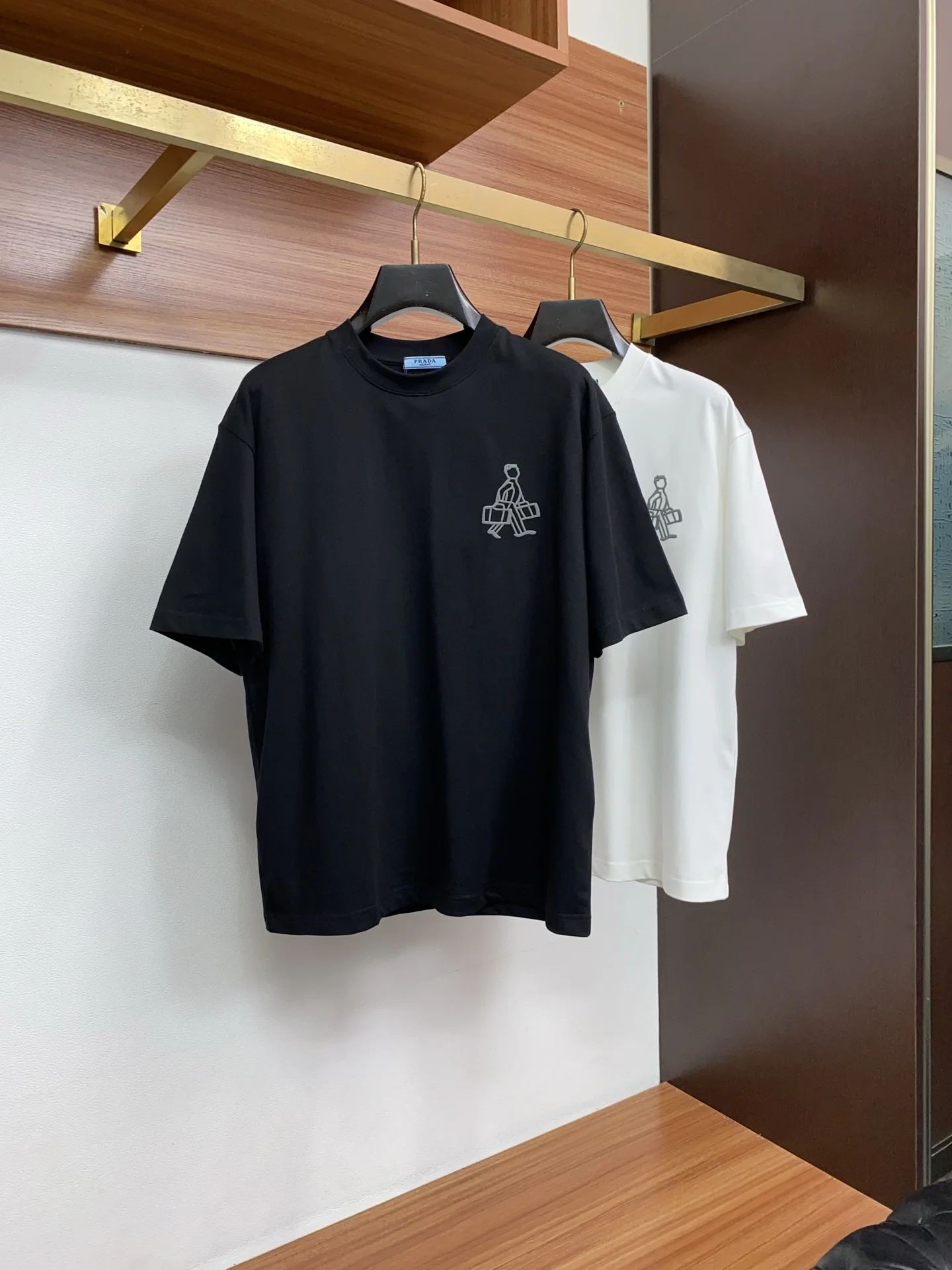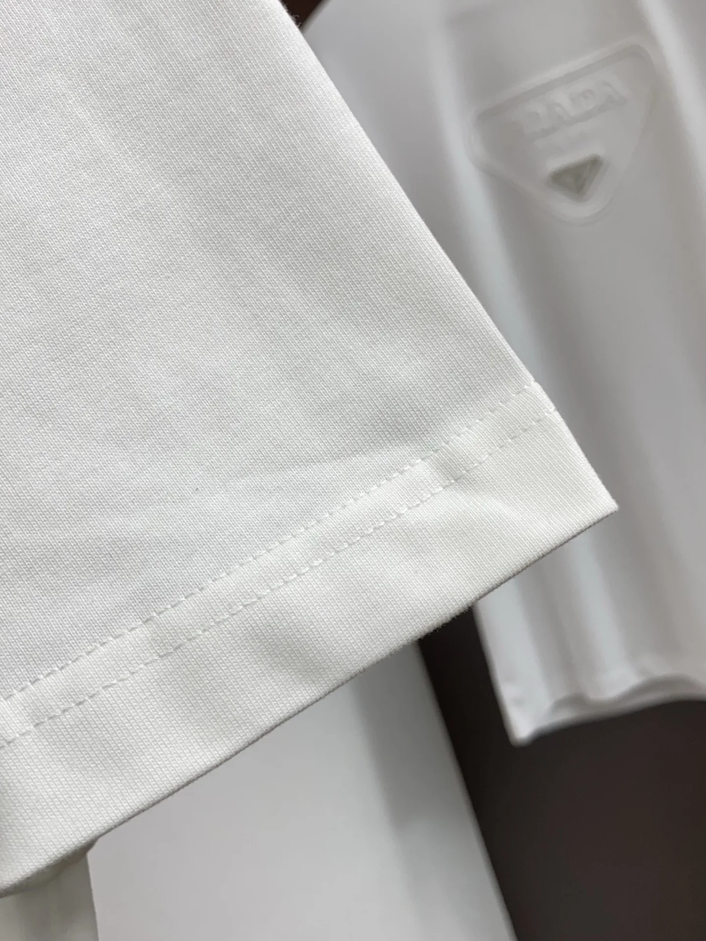 Prada SS new craft logo pure cotton wide round neck men s short sleeve T-shirt, customized 320g pure cotton fabric new season series cleverly integrates the logo into the design, creating a series of sports items full of retro charm. On this versatile T-shirt, a subtly presented pattern with a hint of nostalgia appears on the garment, complemented by the rolled edges at the cuffs. Selected specific original double-strand fine cotton plain fabric offers a structured and comfortable fit, suitable for both outerwear and layering, available in sizes M-2XL.