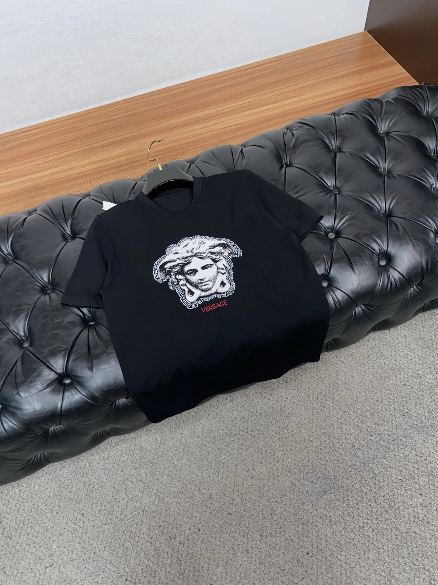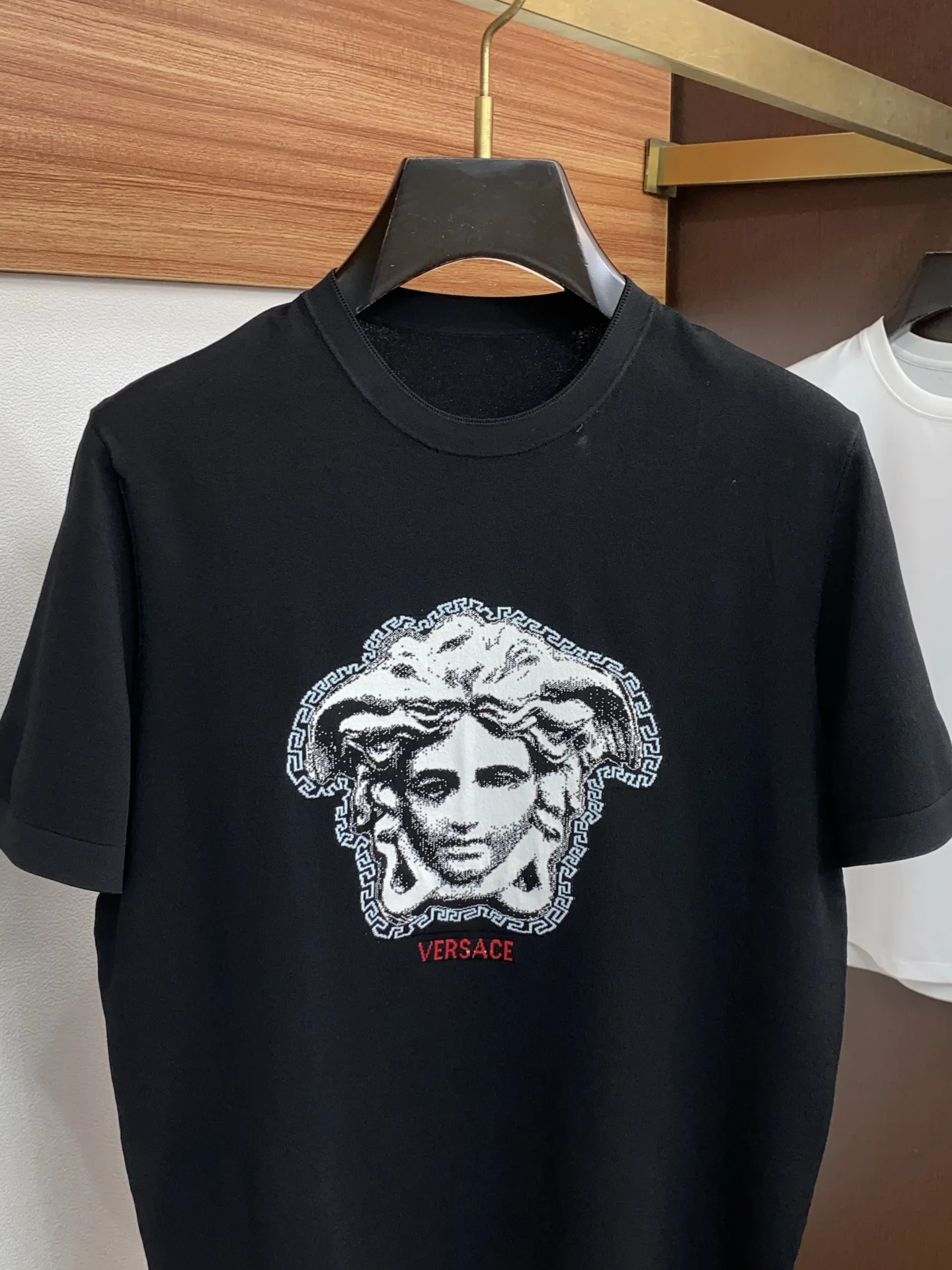 Versace 2026 new men s high-end minimalist round neck knitted short-sleeve T-shirt, sourced from Hong Kong trading channels, with pure pedigree quality, spring and summer new collection, classic ace series!