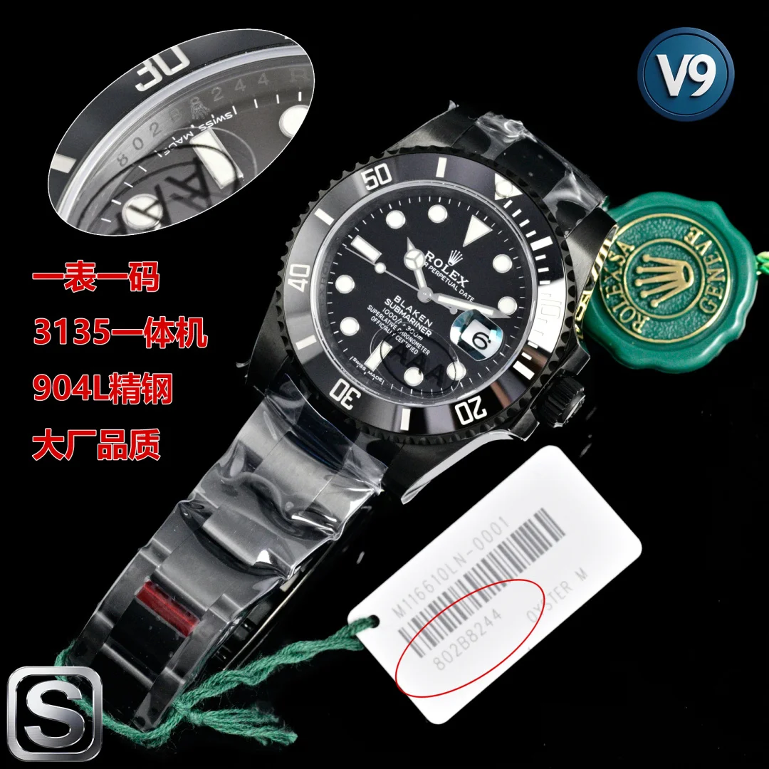 Genuine product molded from the black Submariner 116610LN, synchronizing all details with the official website. Each watch has a unique serial number. Brand new DLC black coating technology + anti-fingerprint layer. 904L stainless steel case and bracelet. Extremely refined dial craftsmanship, equipped with a 3135 integrated movement, offering strong stability!