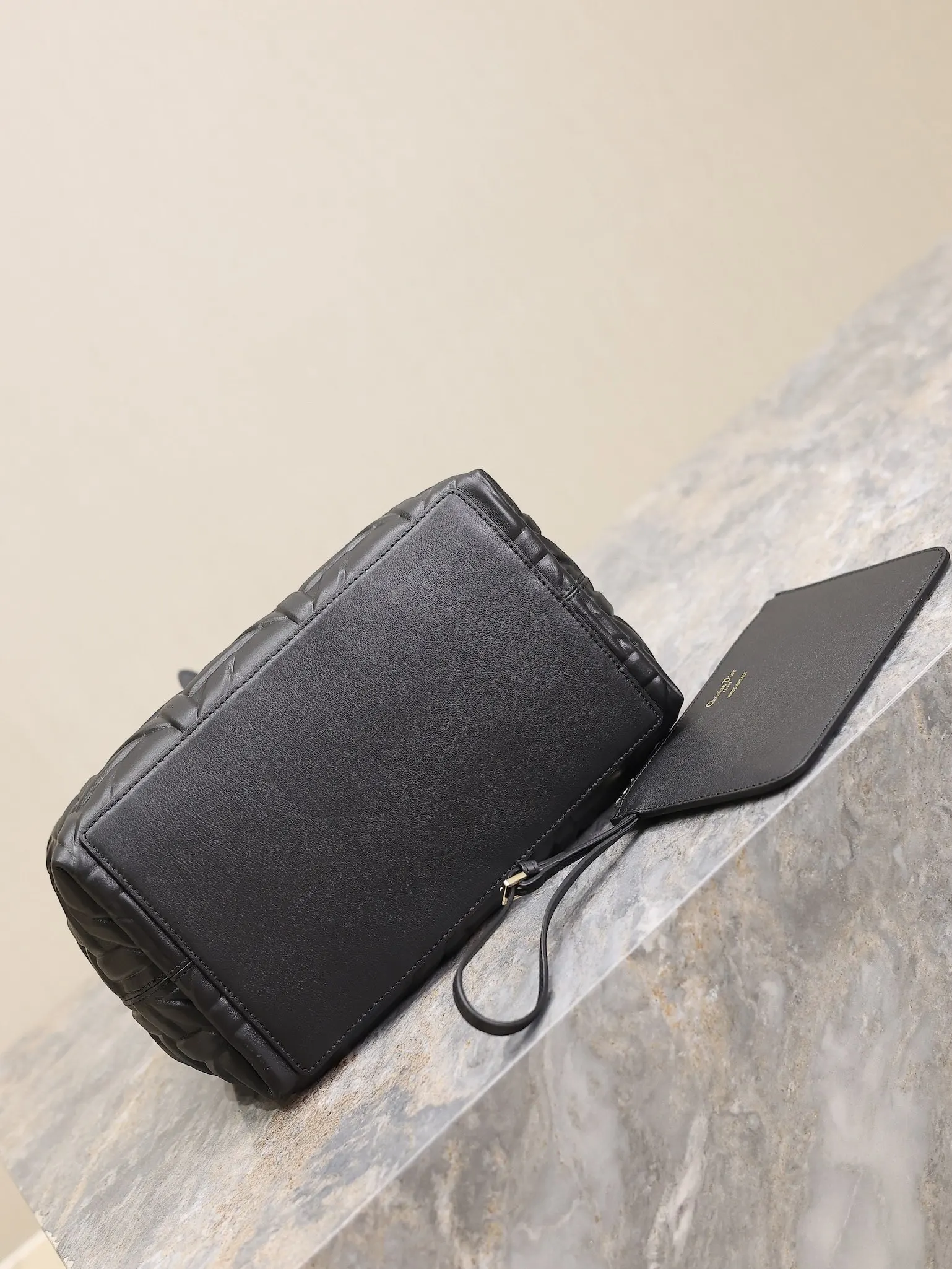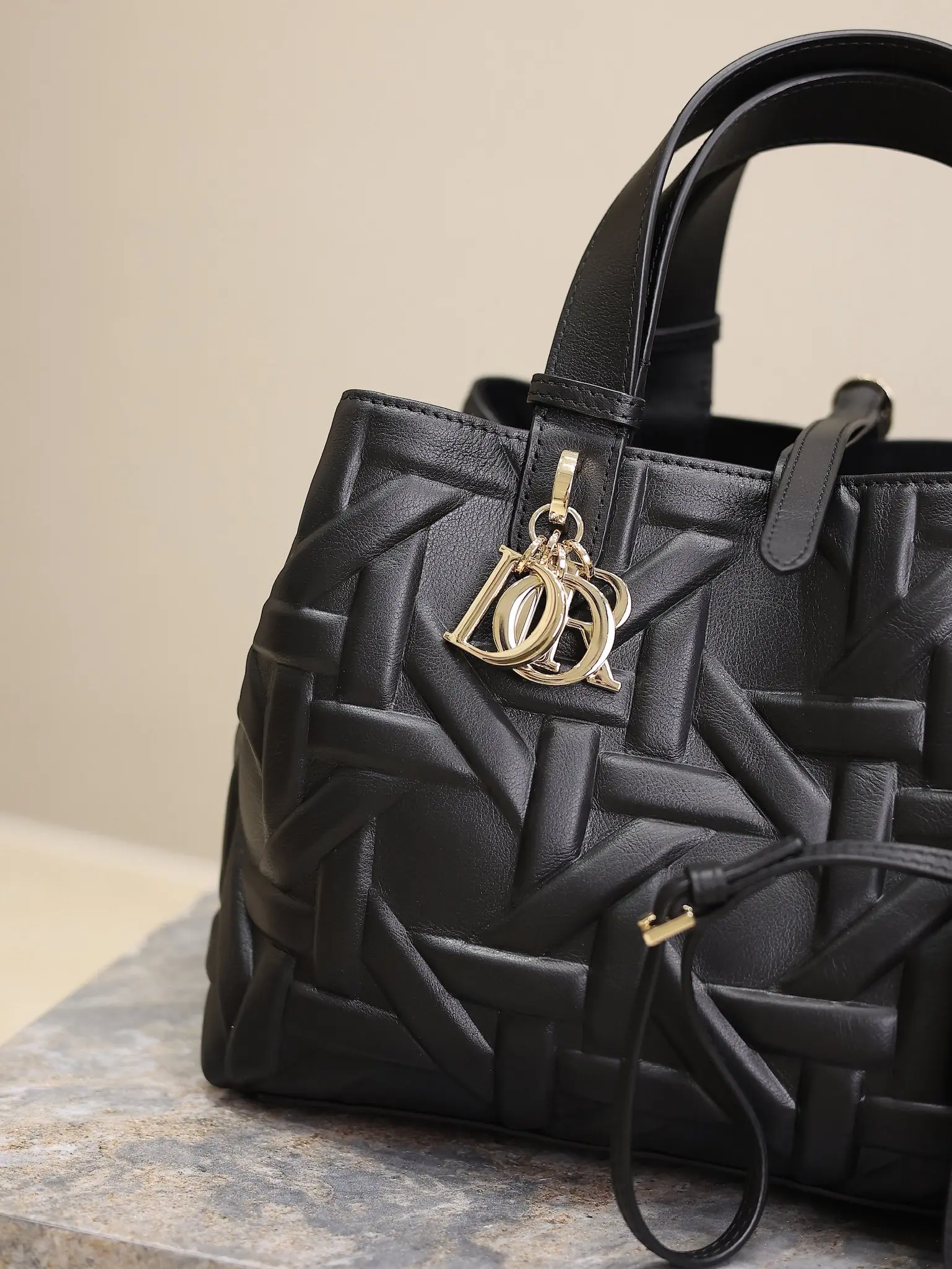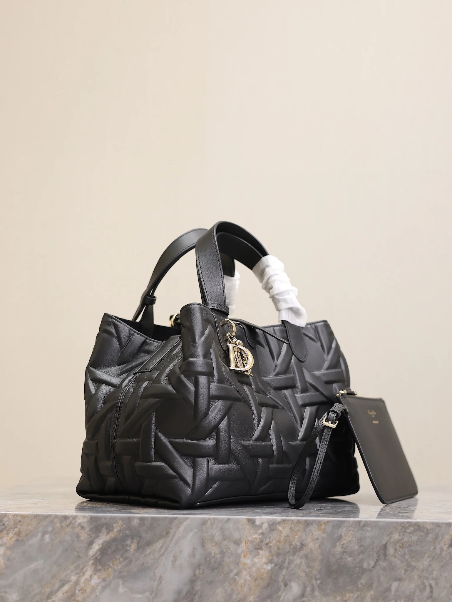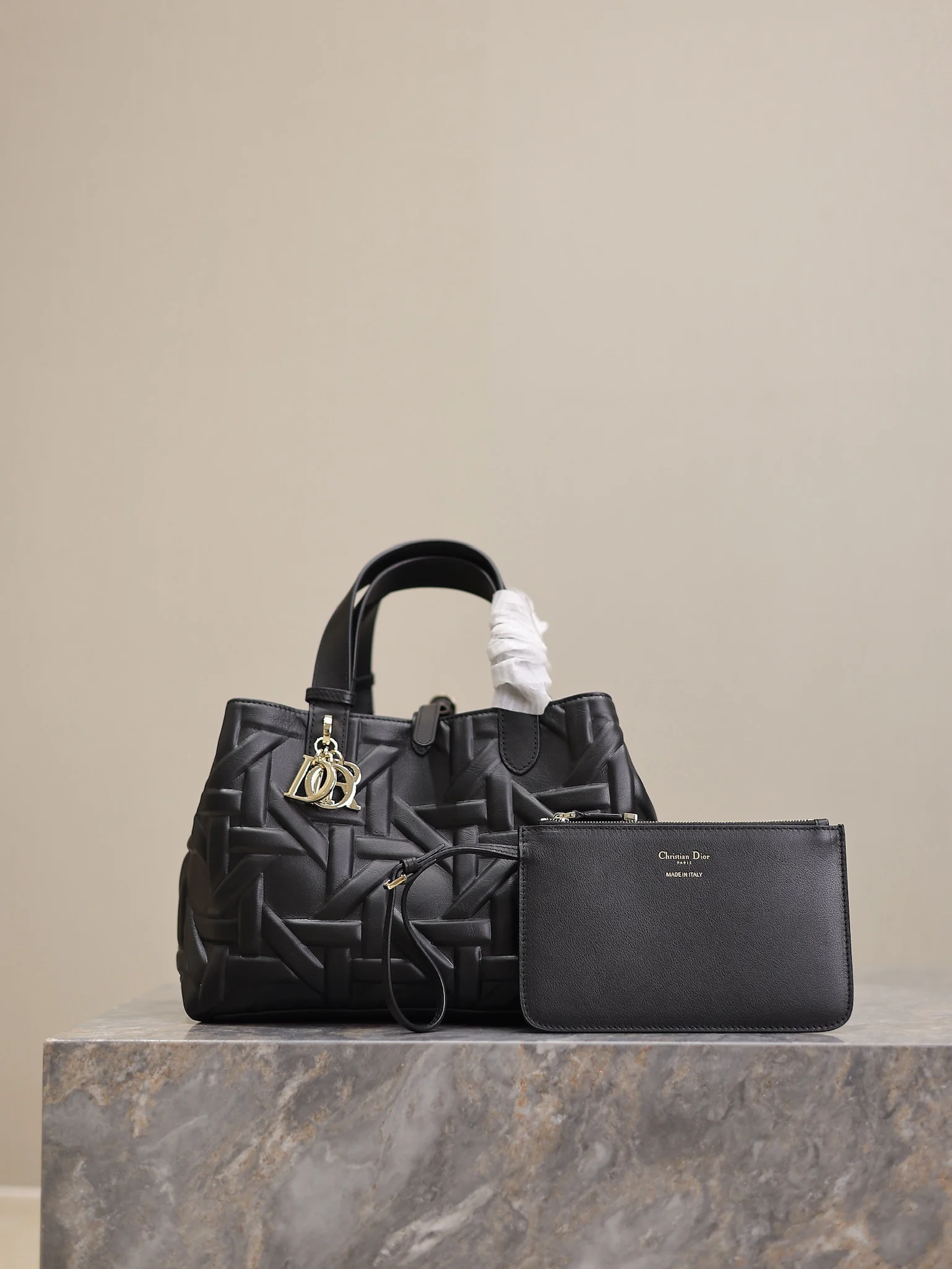 Medium Dior Toujours handbag Black Embossed Diamond This Dior Toujours handbag is casual and practical, with a unique style. It is meticulously crafted from black cowhide leather..