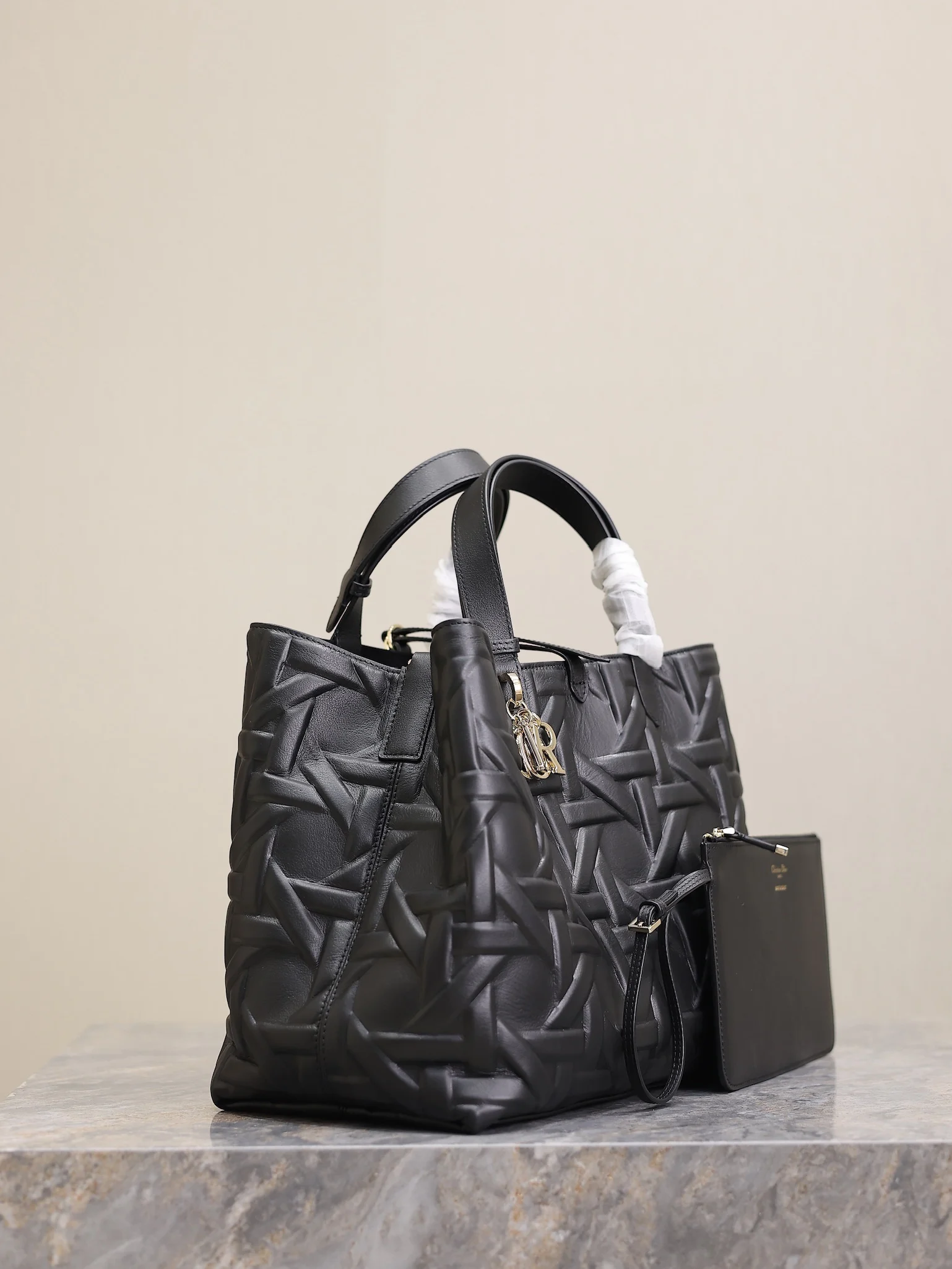 Large Dior Toujours Handbag Black Embossed Diamond