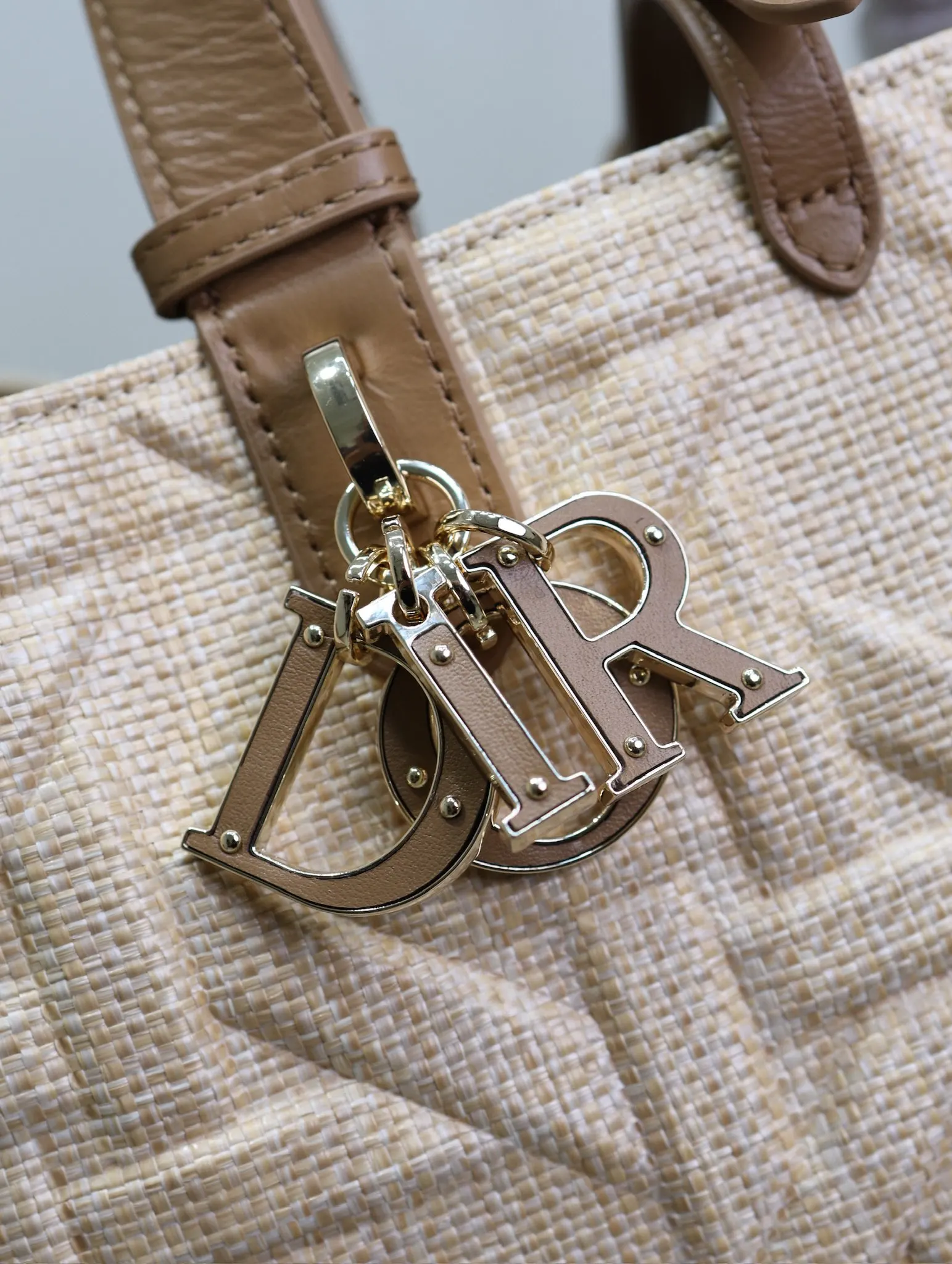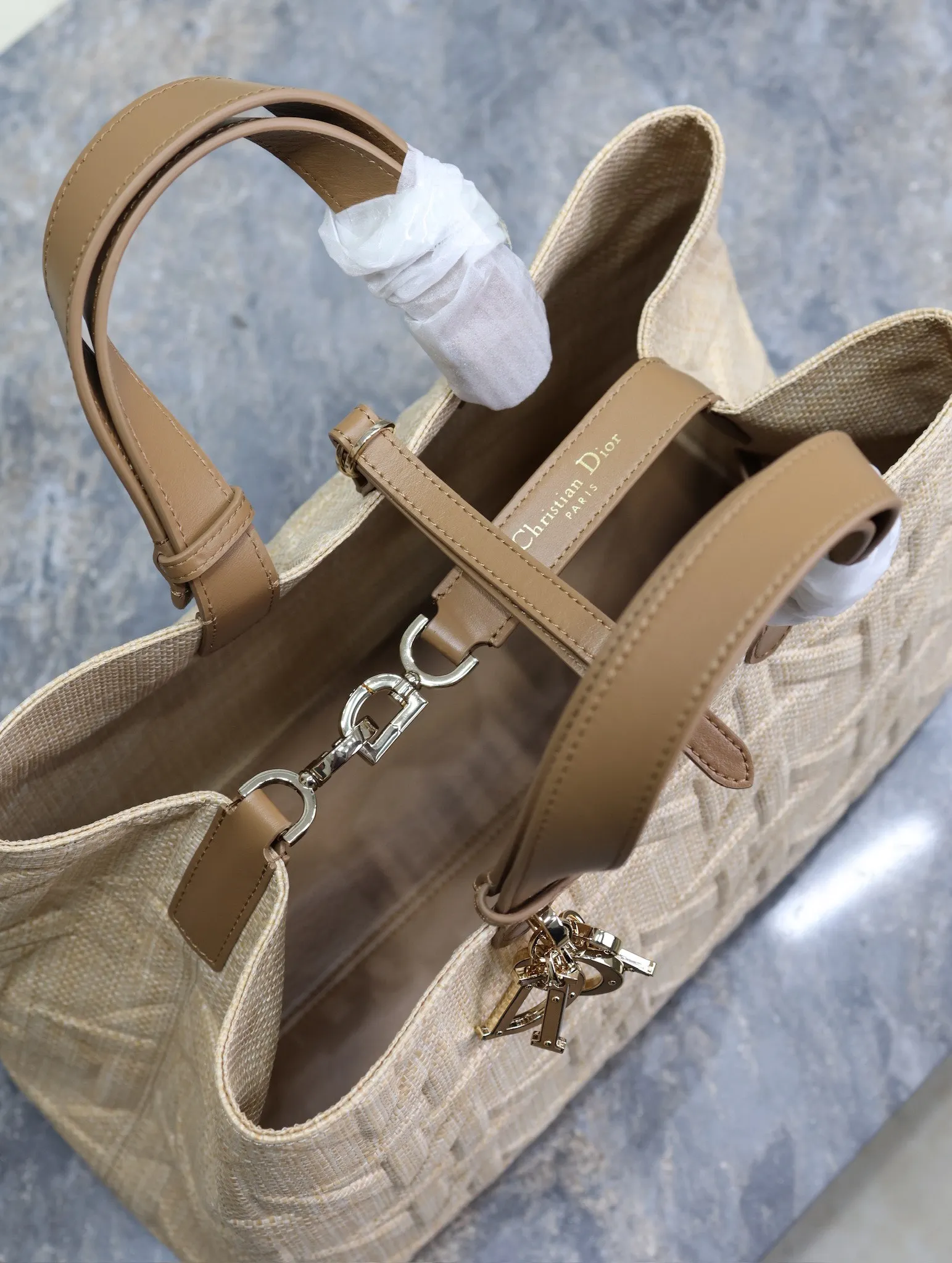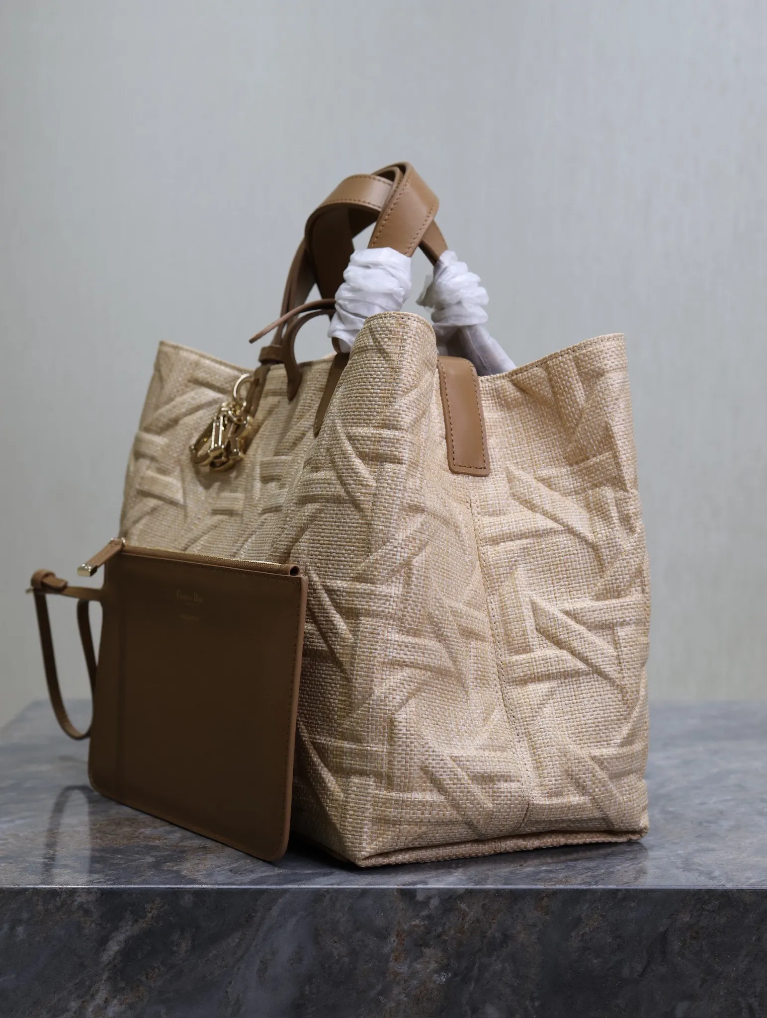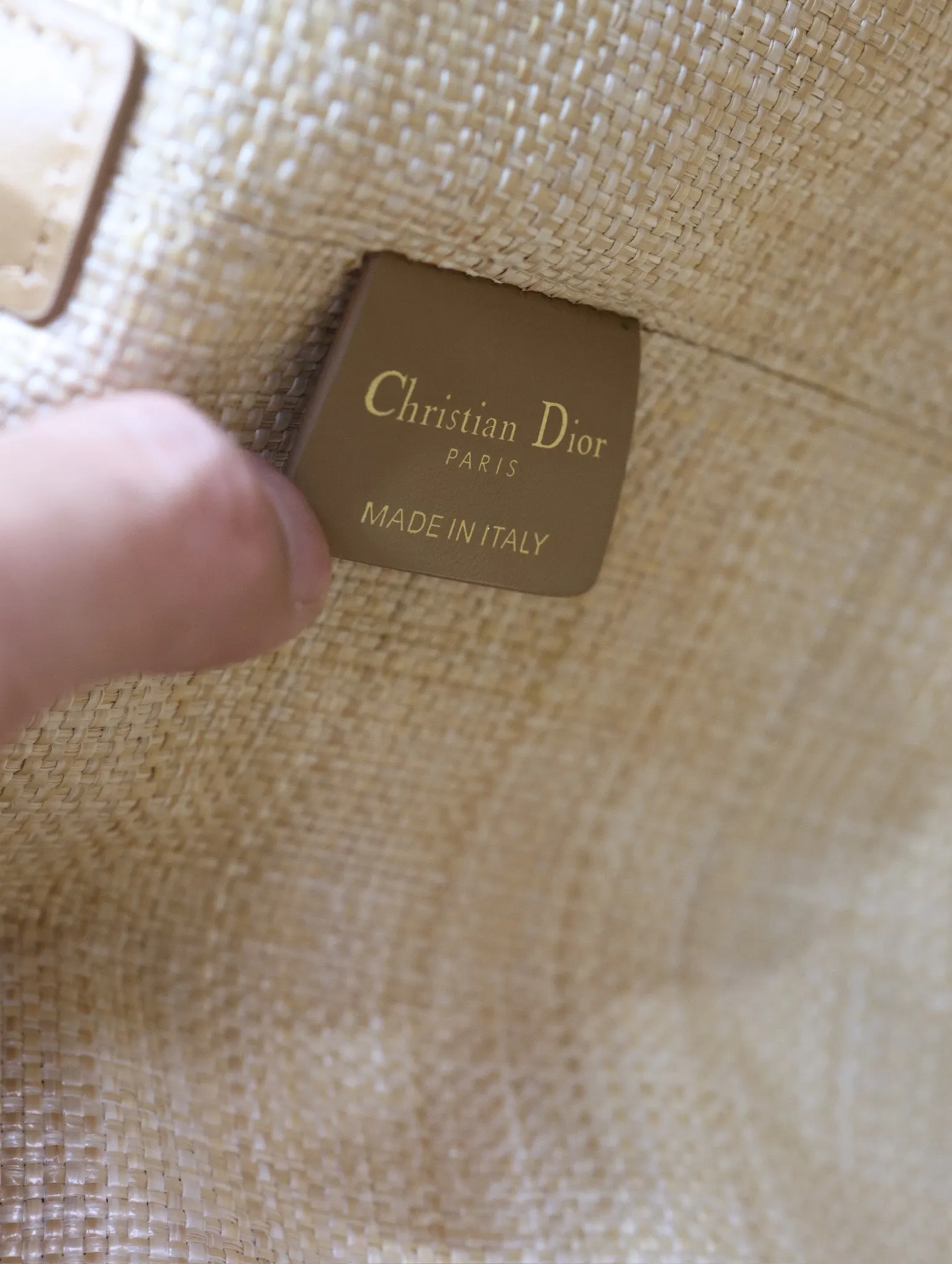 Large Dior Toujours Handbag Raffia Woven Check This Dior Toujours handbag is casual and practical, with a unique style. It is meticulously crafted from beige raffia and features a..