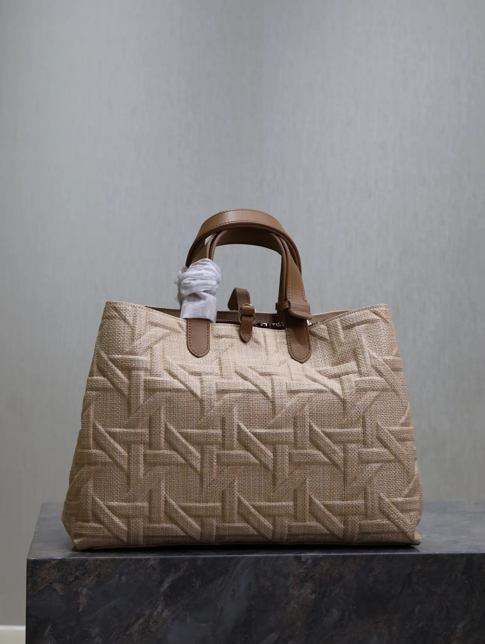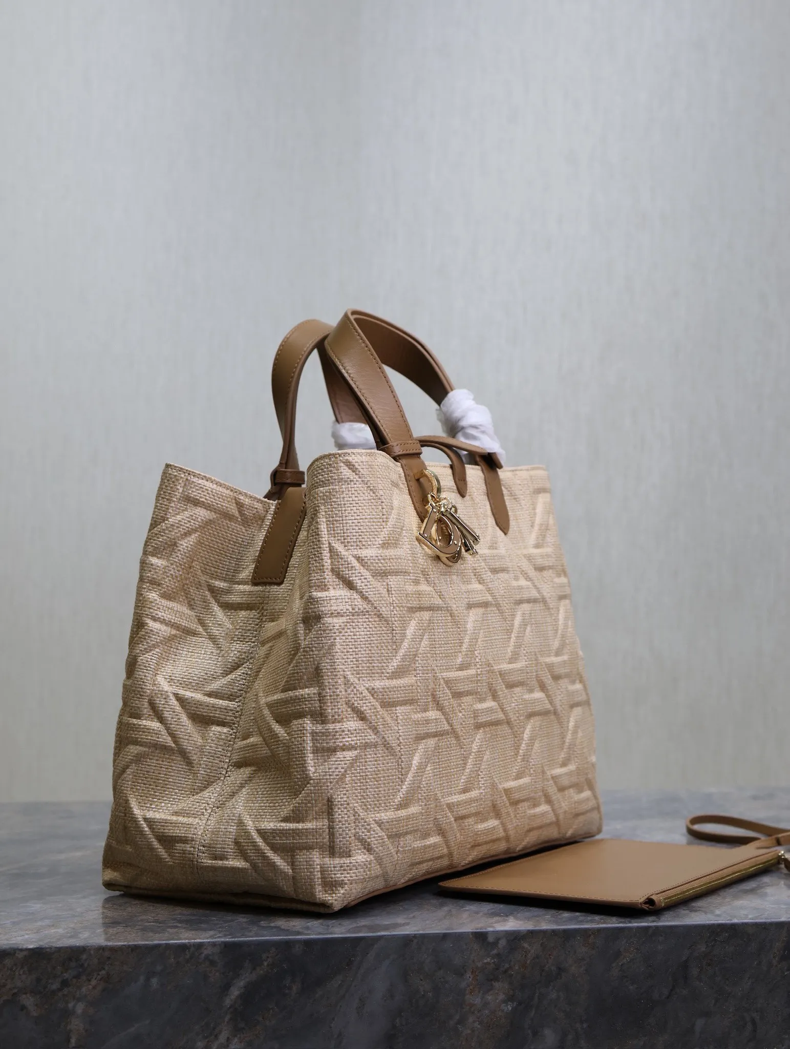 This Dior Toujours handbag is casual and practical, with a unique style. It is meticulously crafted from beige raffia and features a Graphic woven check pattern, offering a fashionable reinterpretation of Dior s classic design with a 3D effect. Model: 1188
