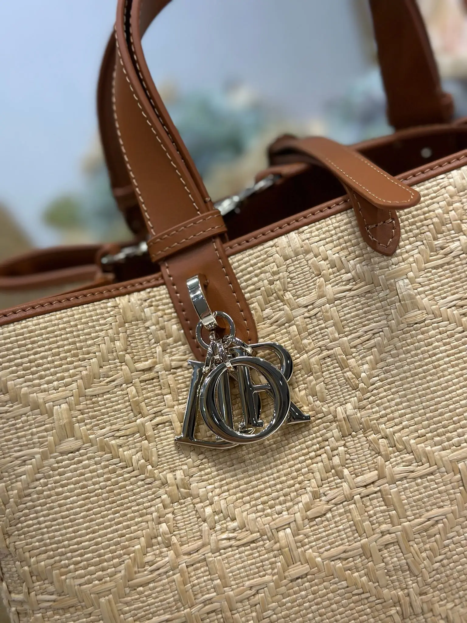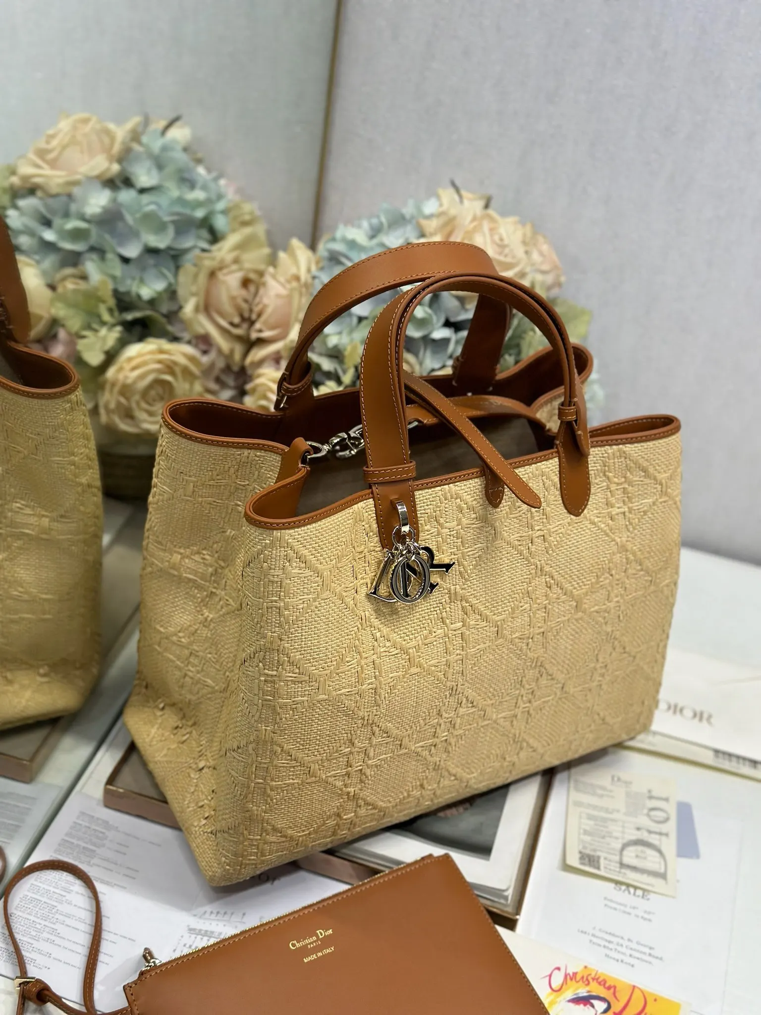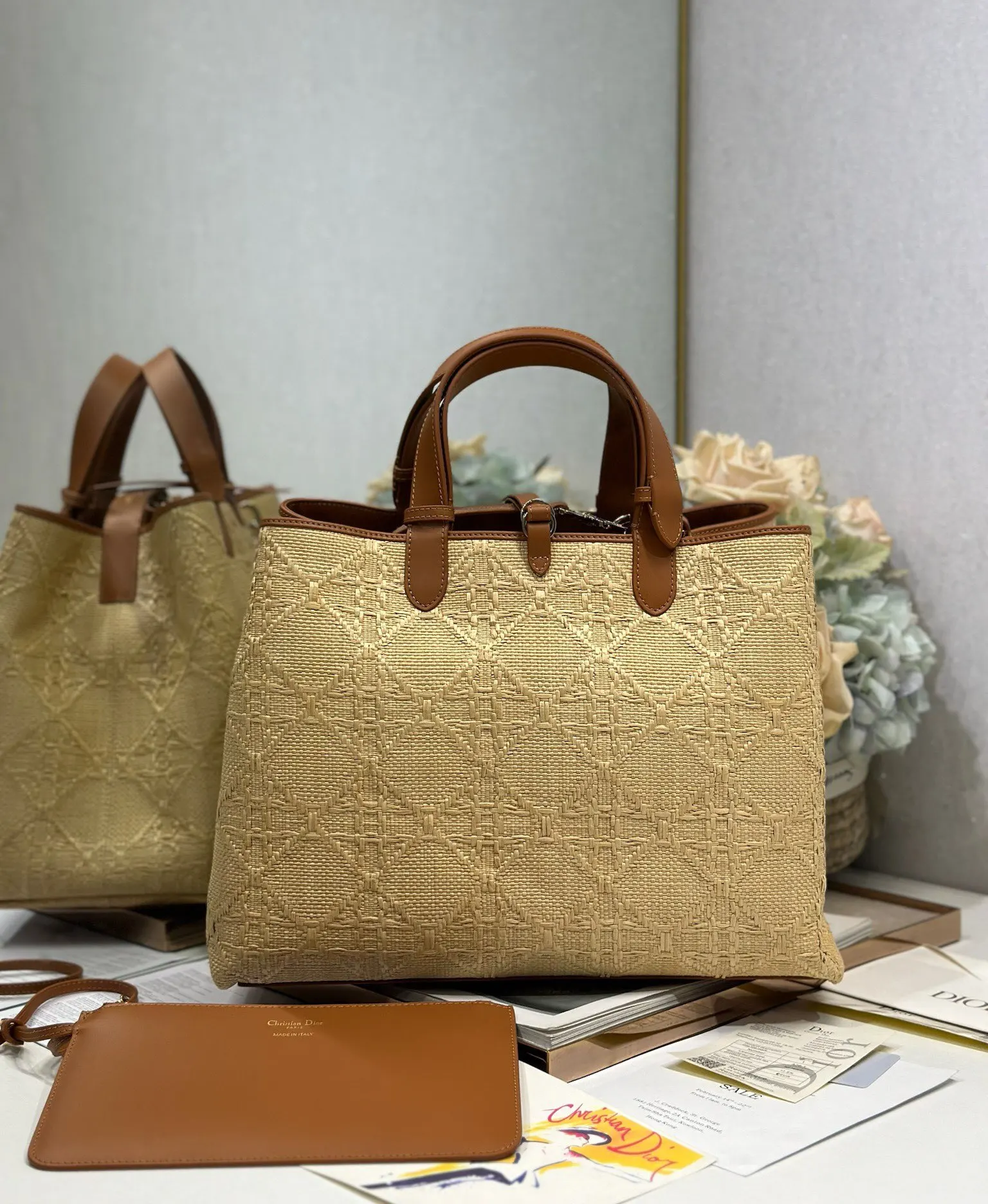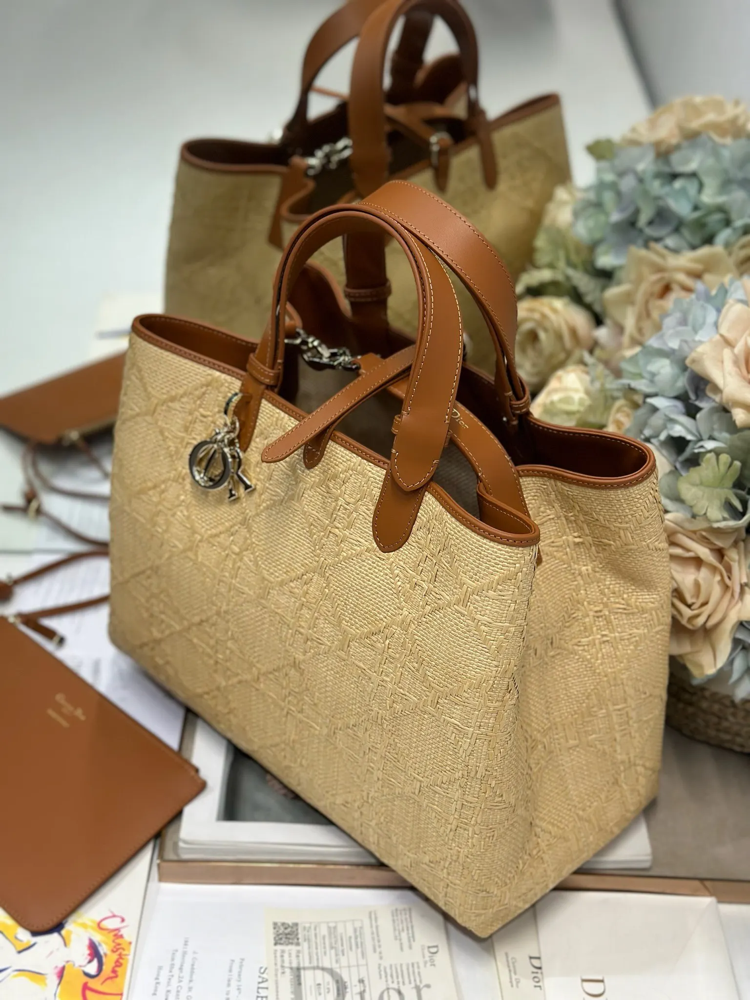 Dior Toujours Handbag Woven Large This Dior Toujours handbag is casual and practical, with a unique style. It is meticulously crafted from beige raffia and adorned with a Graphic ..