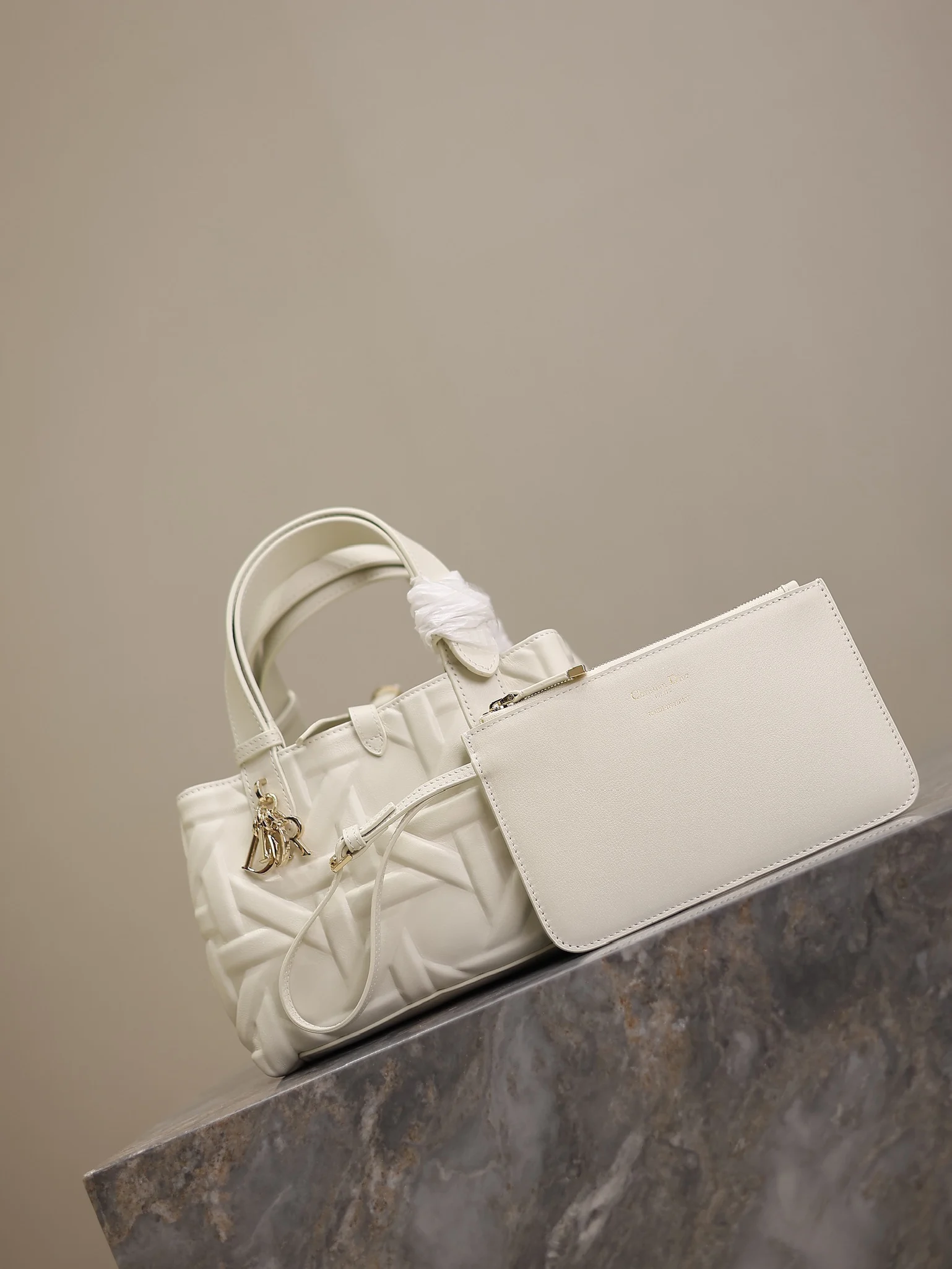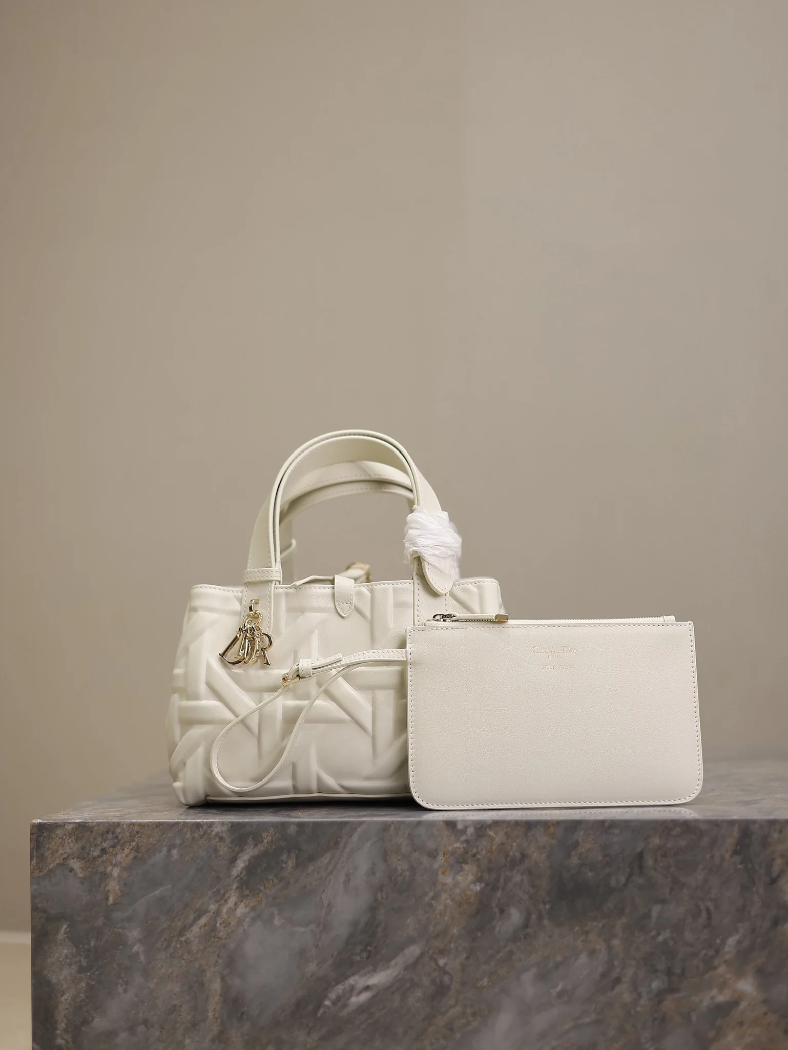 Small Dior Toujours handbag White Embossed Diamond This Dior Toujours handbag is casual and practical, with a unique style. It is meticulously crafted from white cowhide leather ..