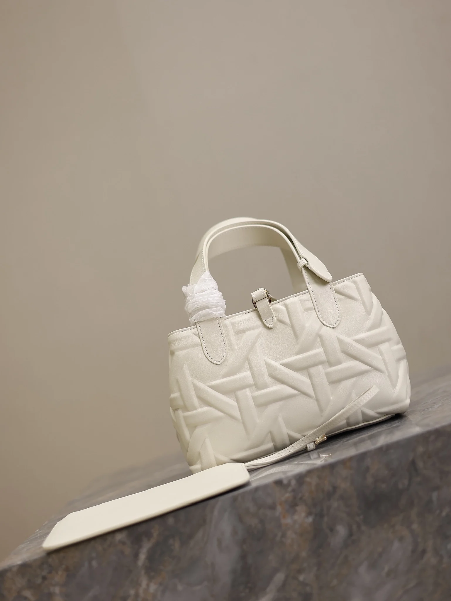 This Dior Toujours handbag is casual and practical, with a unique style. It is meticulously crafted from white cowhide leather and features a Graphic rattan pattern, presenting a fashionable reinterpretation of Dior s classic design with a 3D effect. Model: 1188