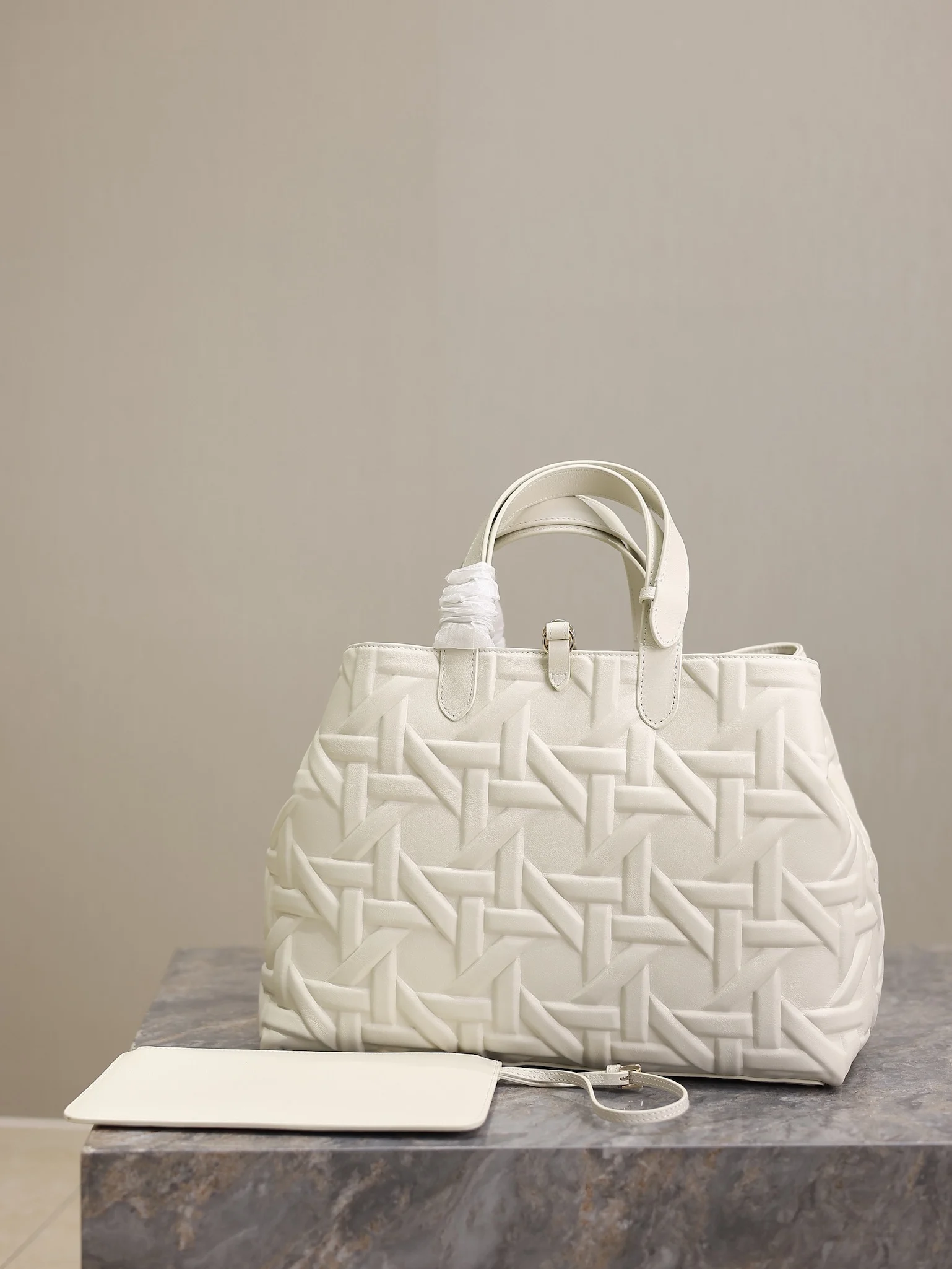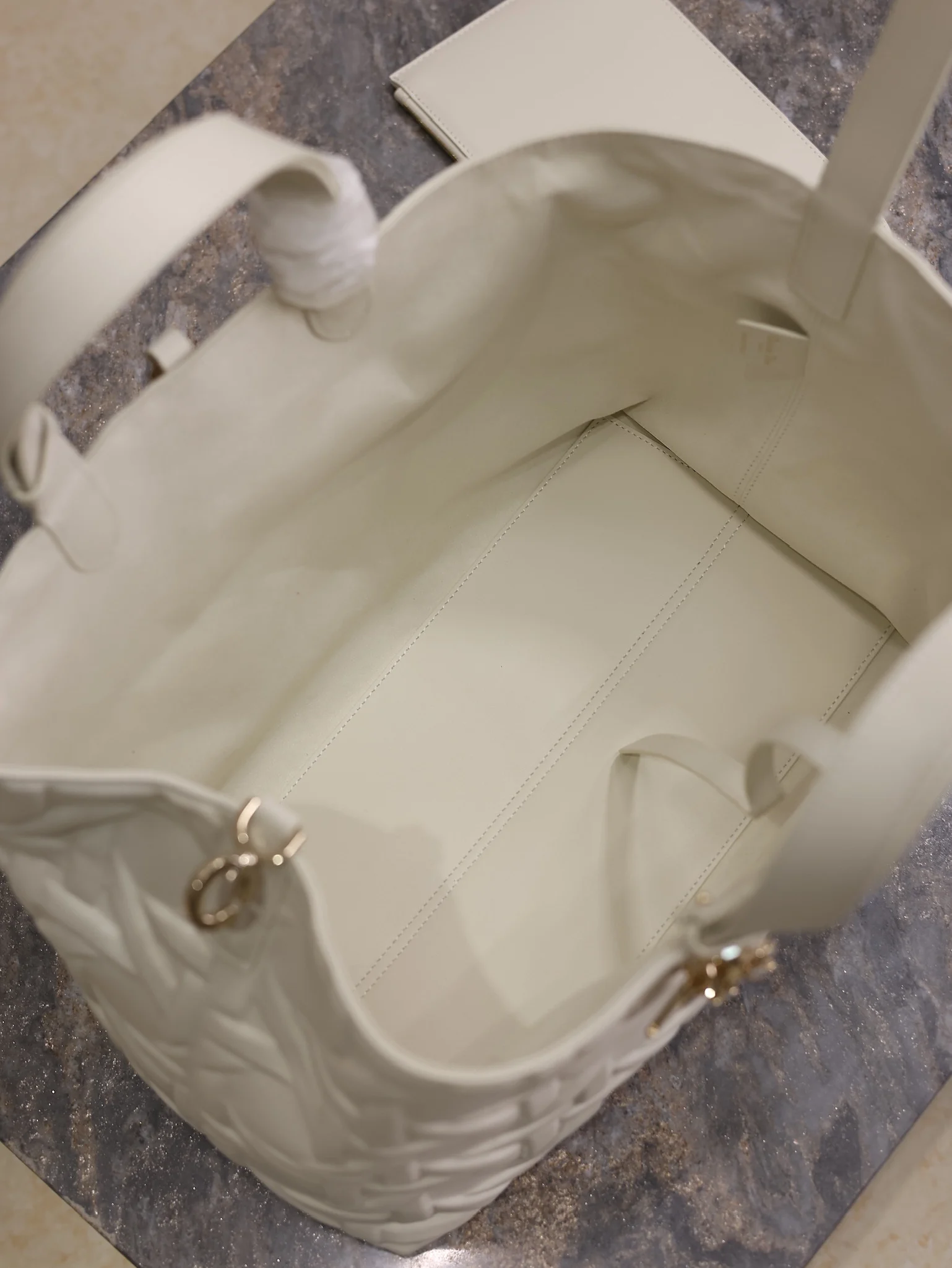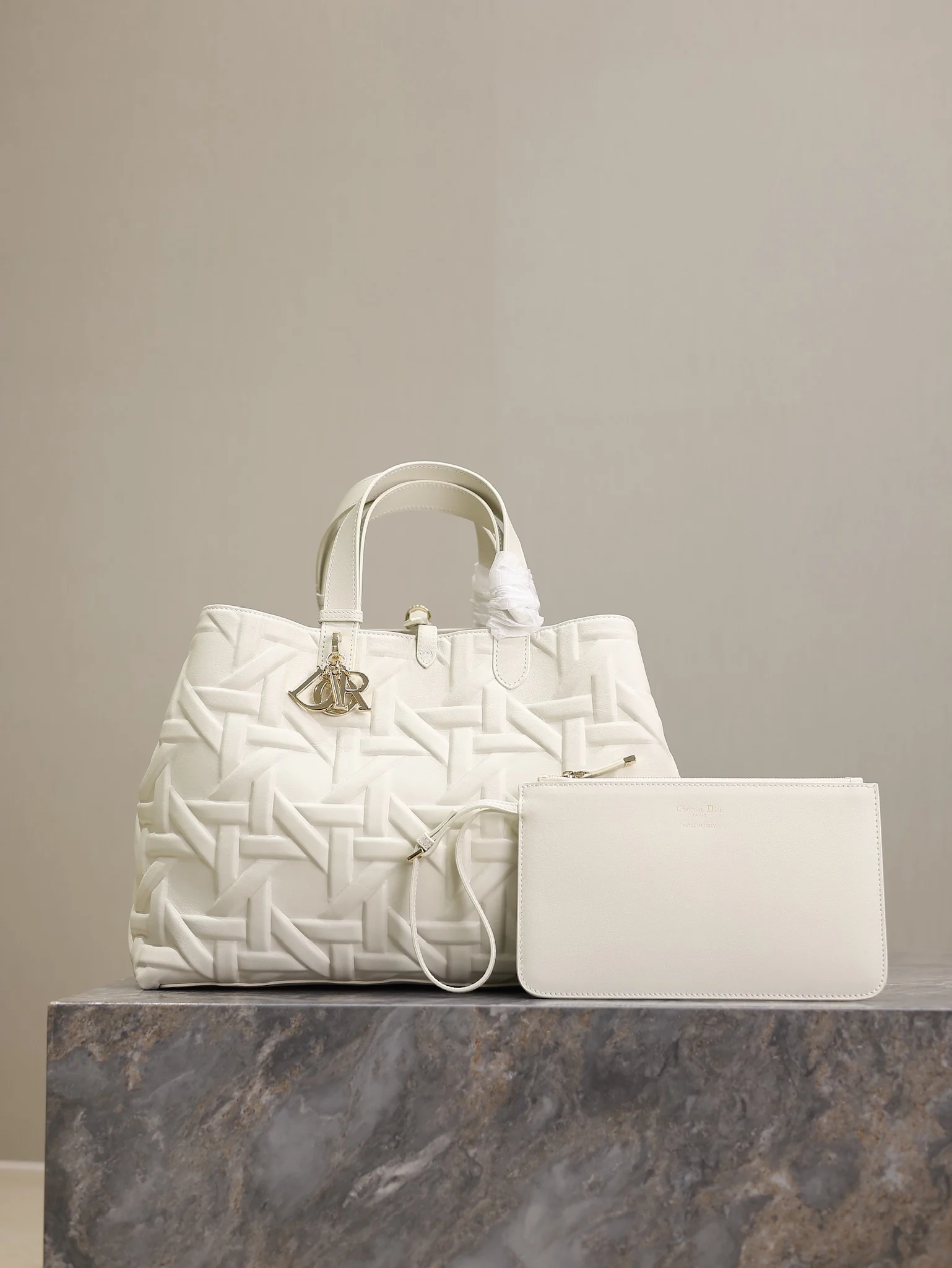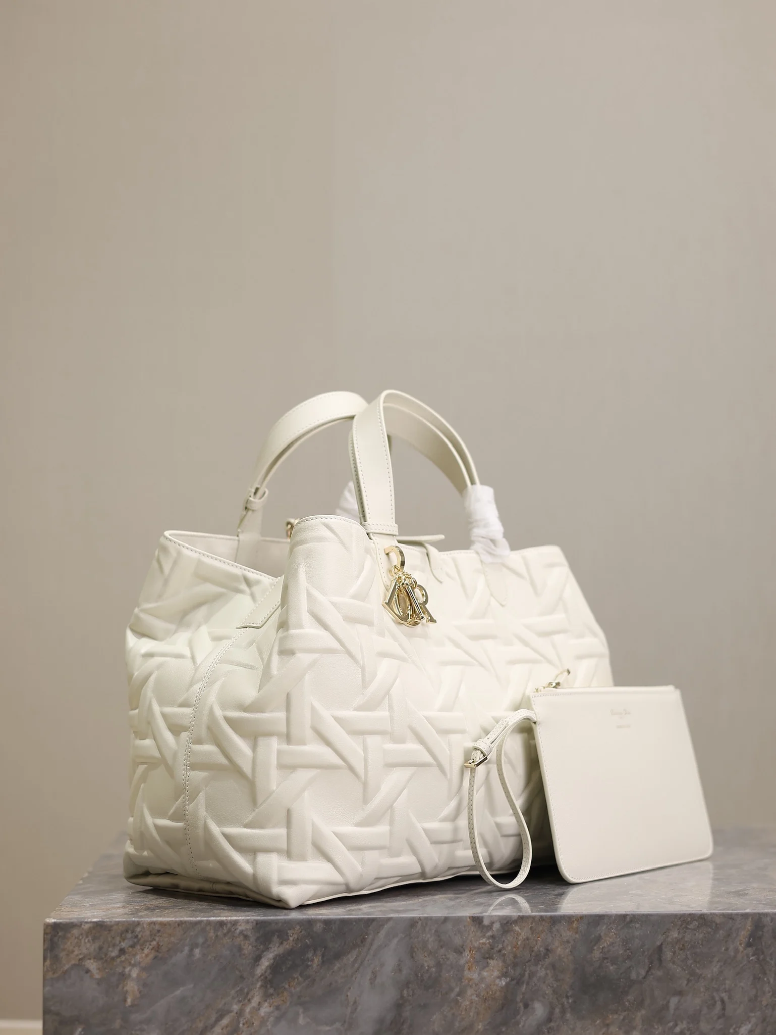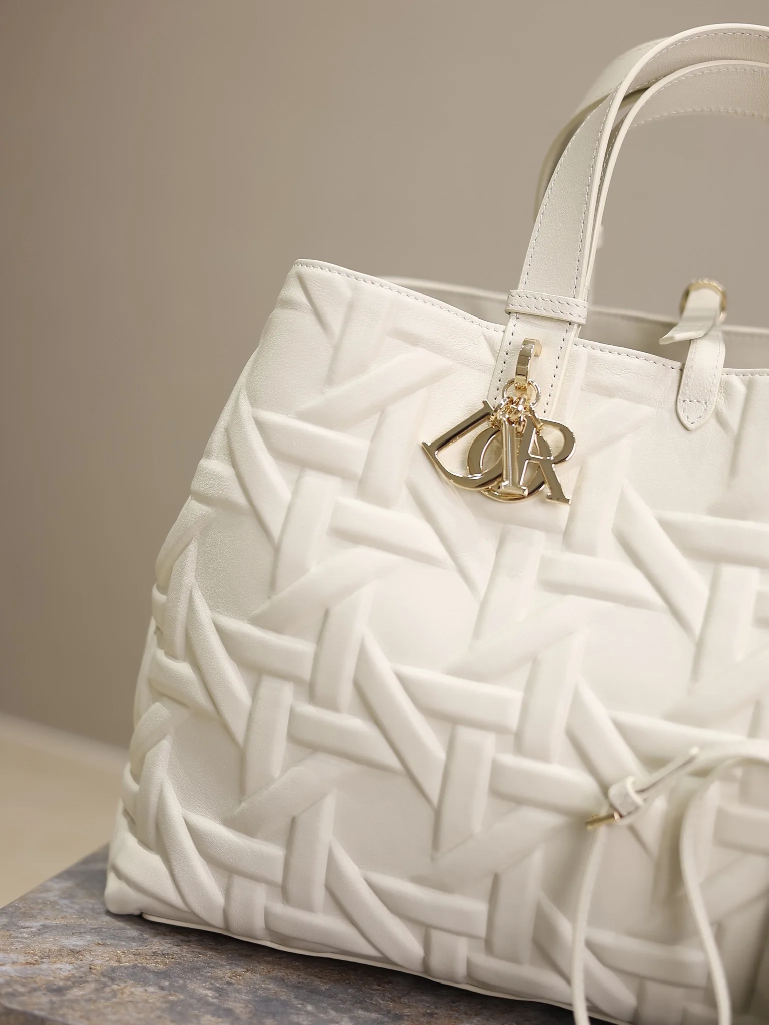 Large Dior Toujours Handbag White Embossed Diamond