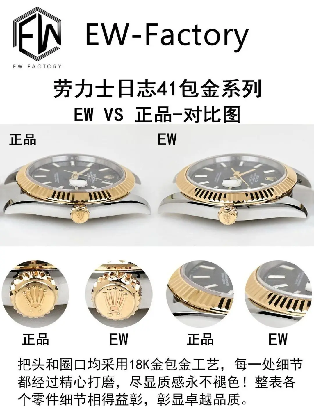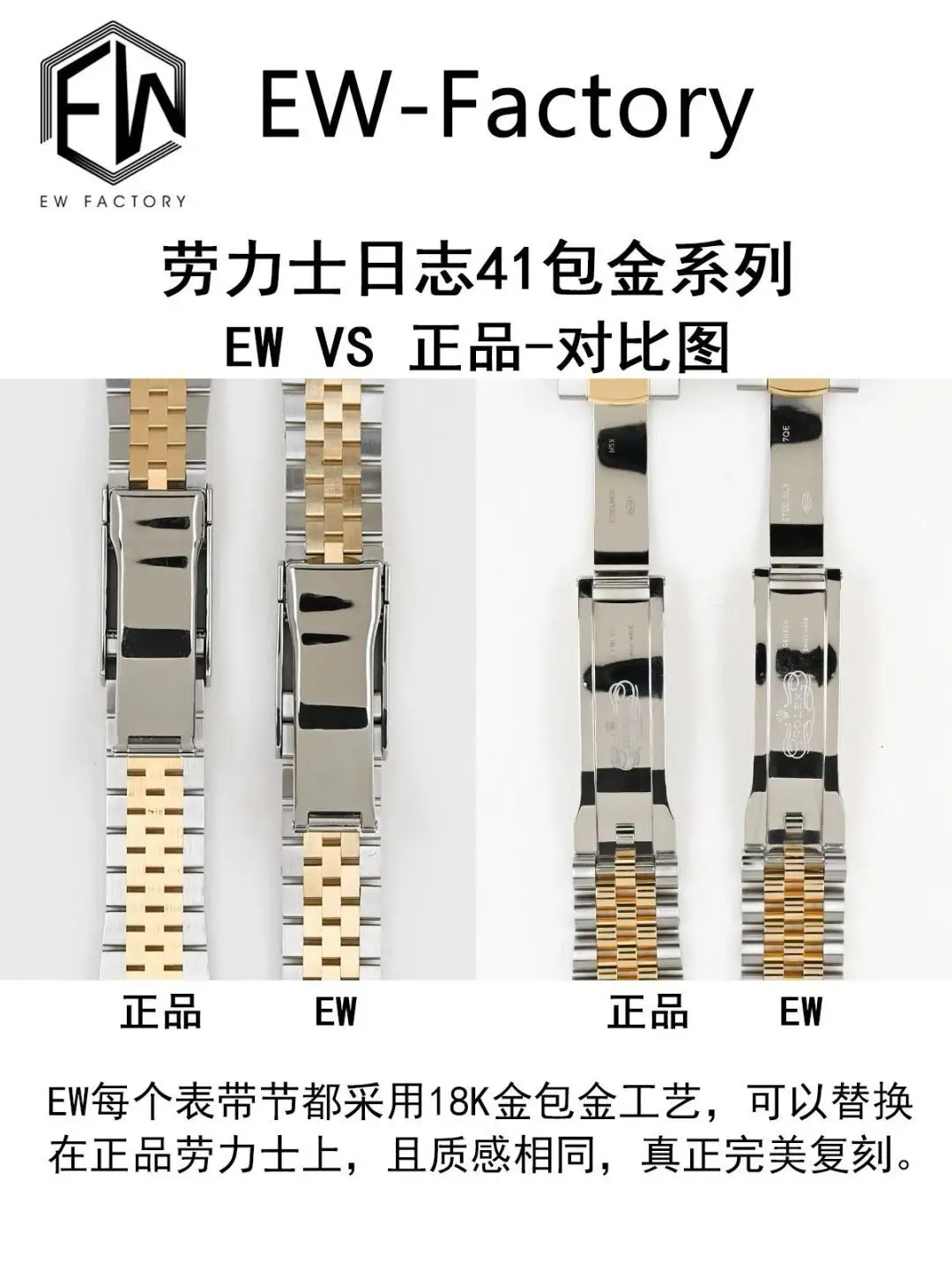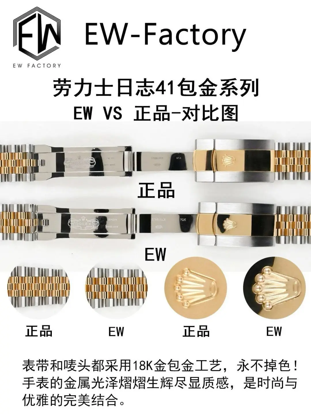 ② Case: The entire watch is made of 904L steel, with the gold-plated parts of the bracelet matching the original, no white showing on the sides.