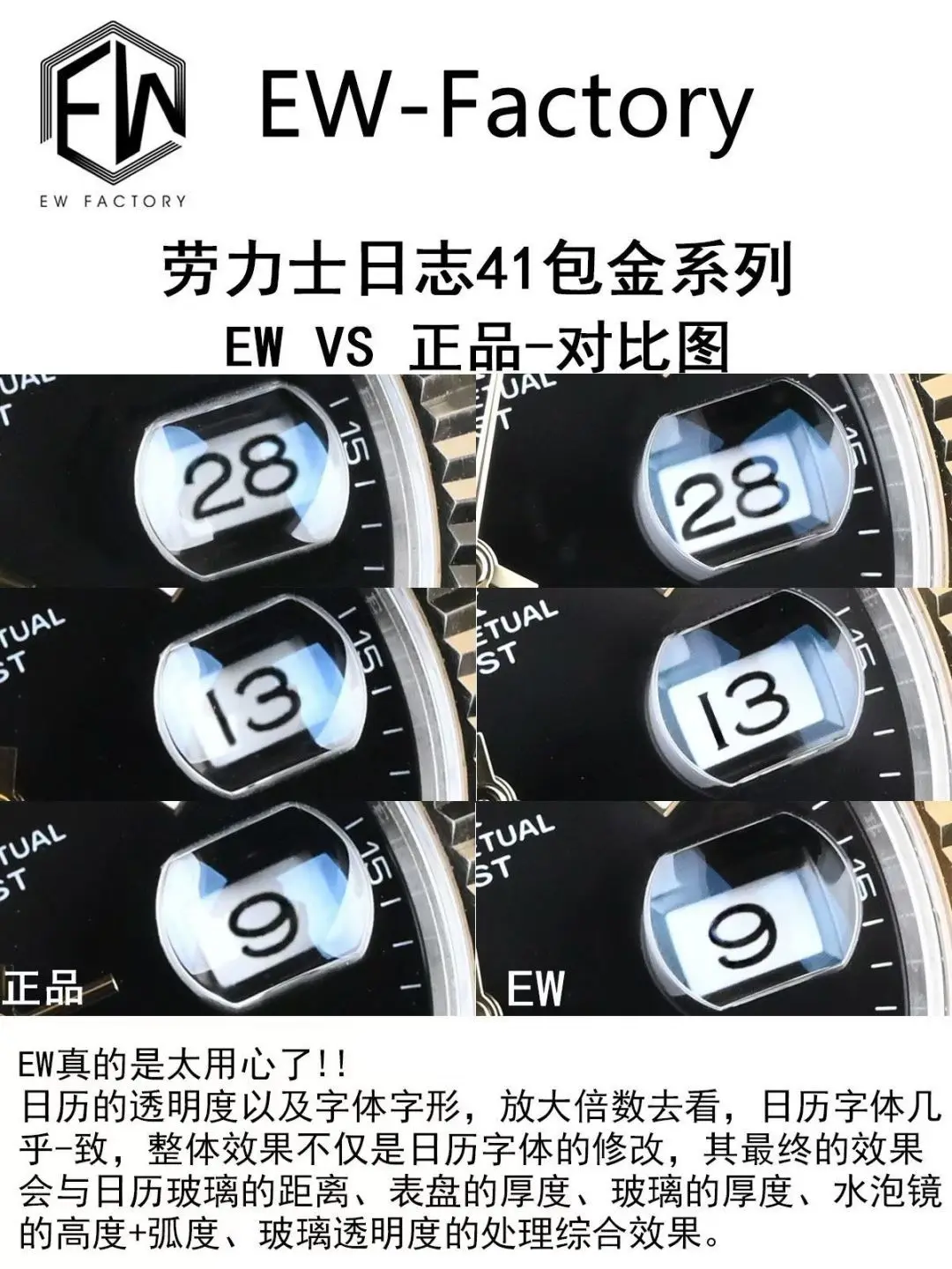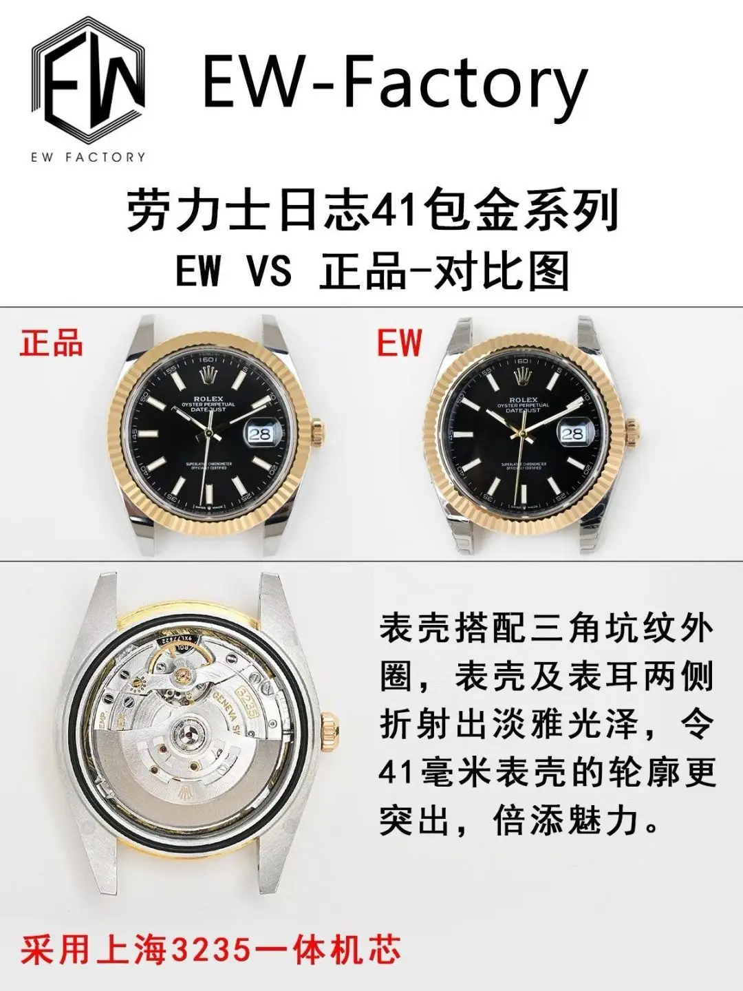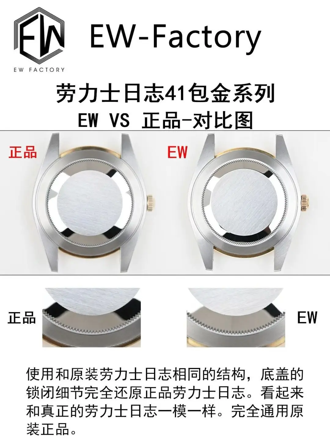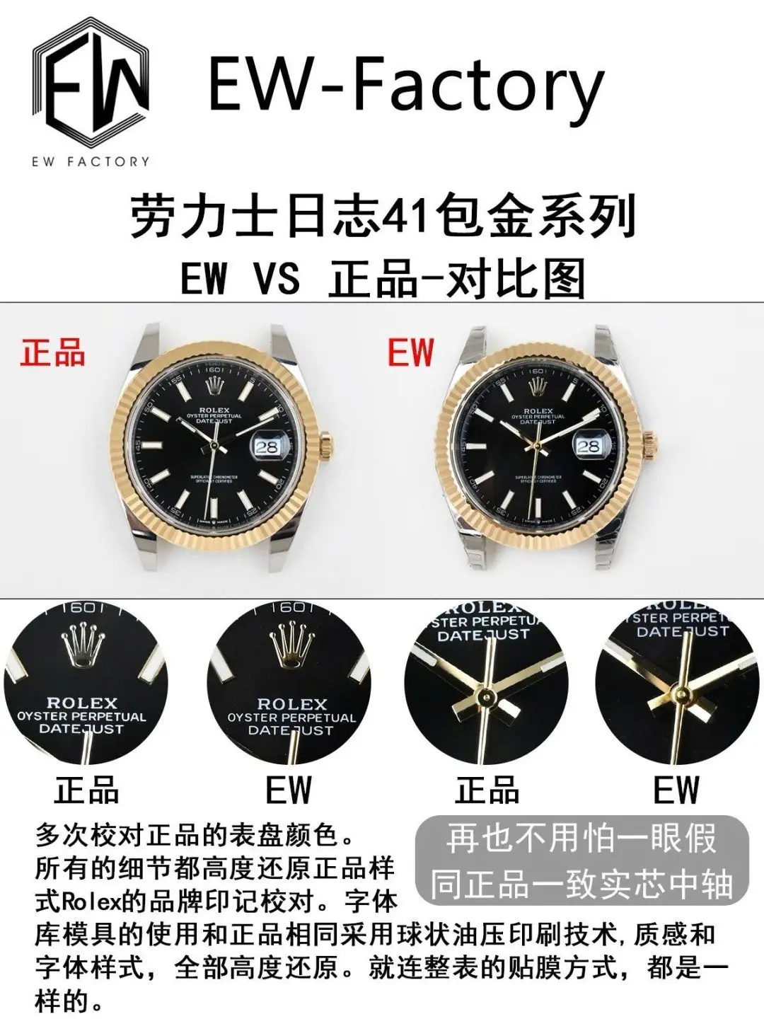 ② Case: The entire watch is made of 904L steel, with the gold-plated parts of the bracelet matching the original, no white showing on the sides.