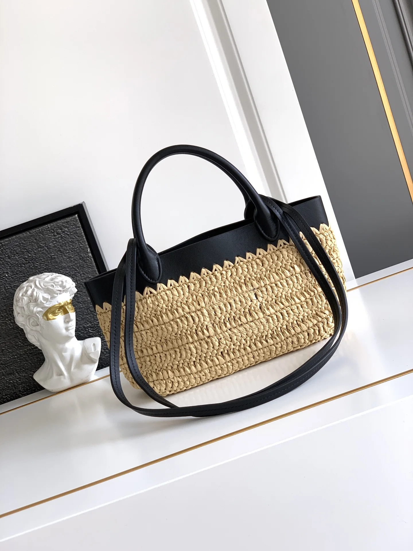 New woven mini tote bag, this modern and exquisite mini tote bag combines crochet craftsmanship with leather details, creating a summer vibe. The cowhide double handles can be used as a handbag or shoulder bag, and the front is adorned with a contrasting embroidered letter logo for added recognition. The delicate woven body exudes a strong spring and summer atmosphere Simply carrying it can impart an unparalleled sense of luxury, with ample space capacity, making it a classic bestseller.