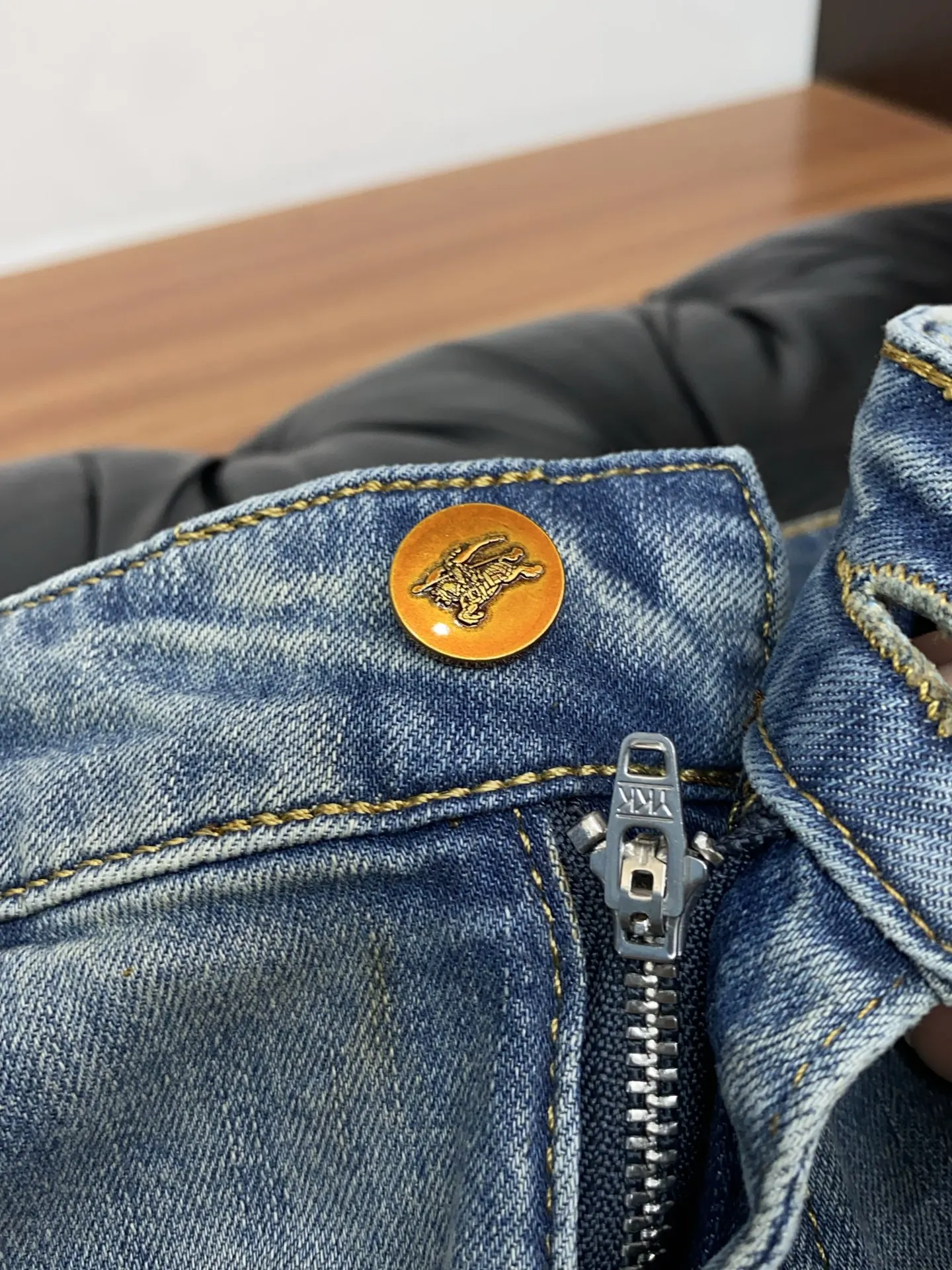 Burberry high-end customization, 2026 early spring latest style jeans available for sale at the counter, original custom replica, client-supplied hardware accessories, original quality, imported denim fabric with high elasticity, heavy washing, exquisite workmanship and stitching, excellent fit! Selected item
