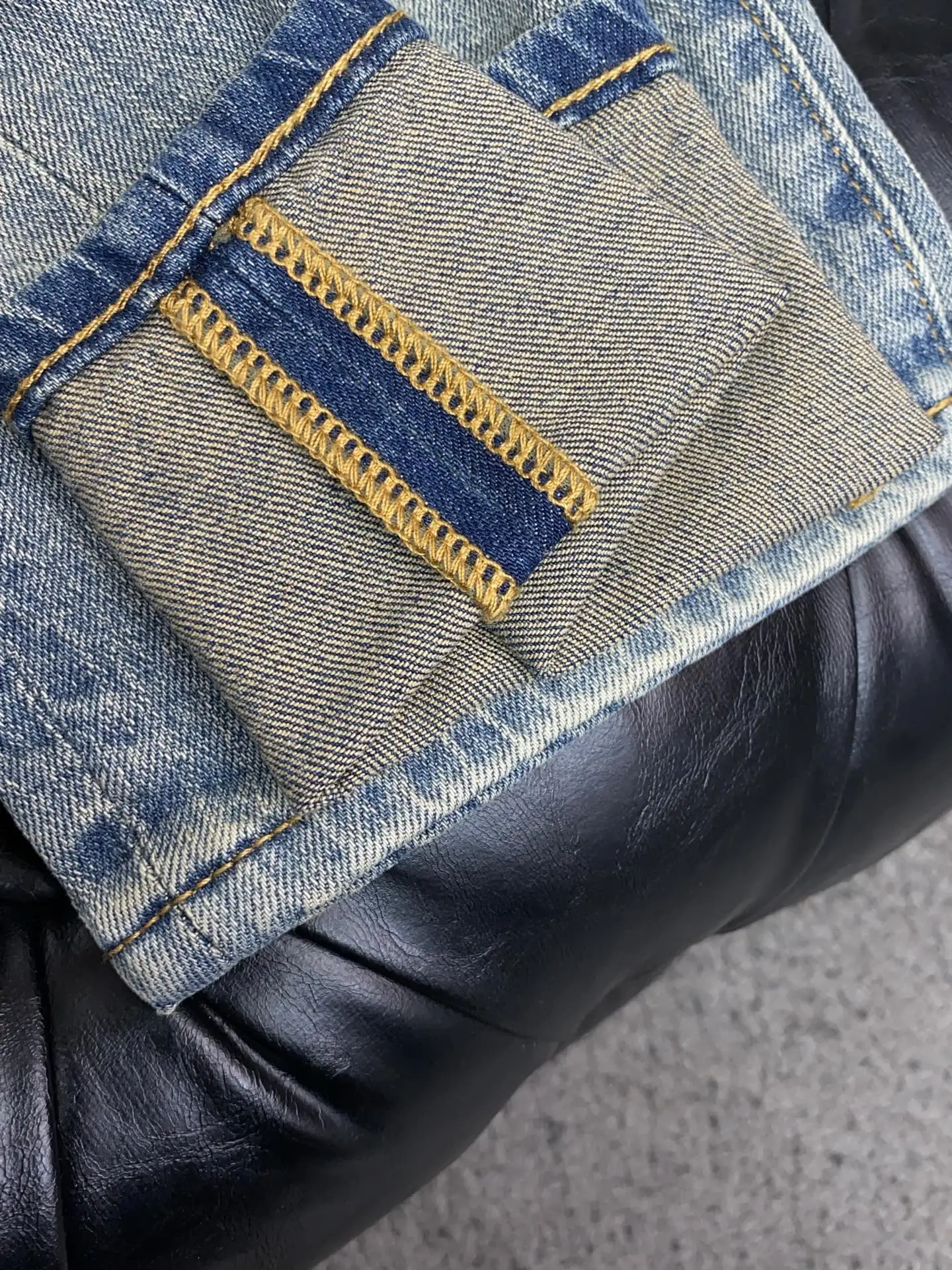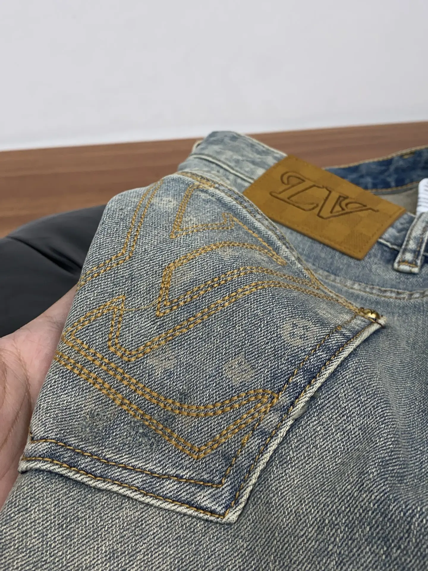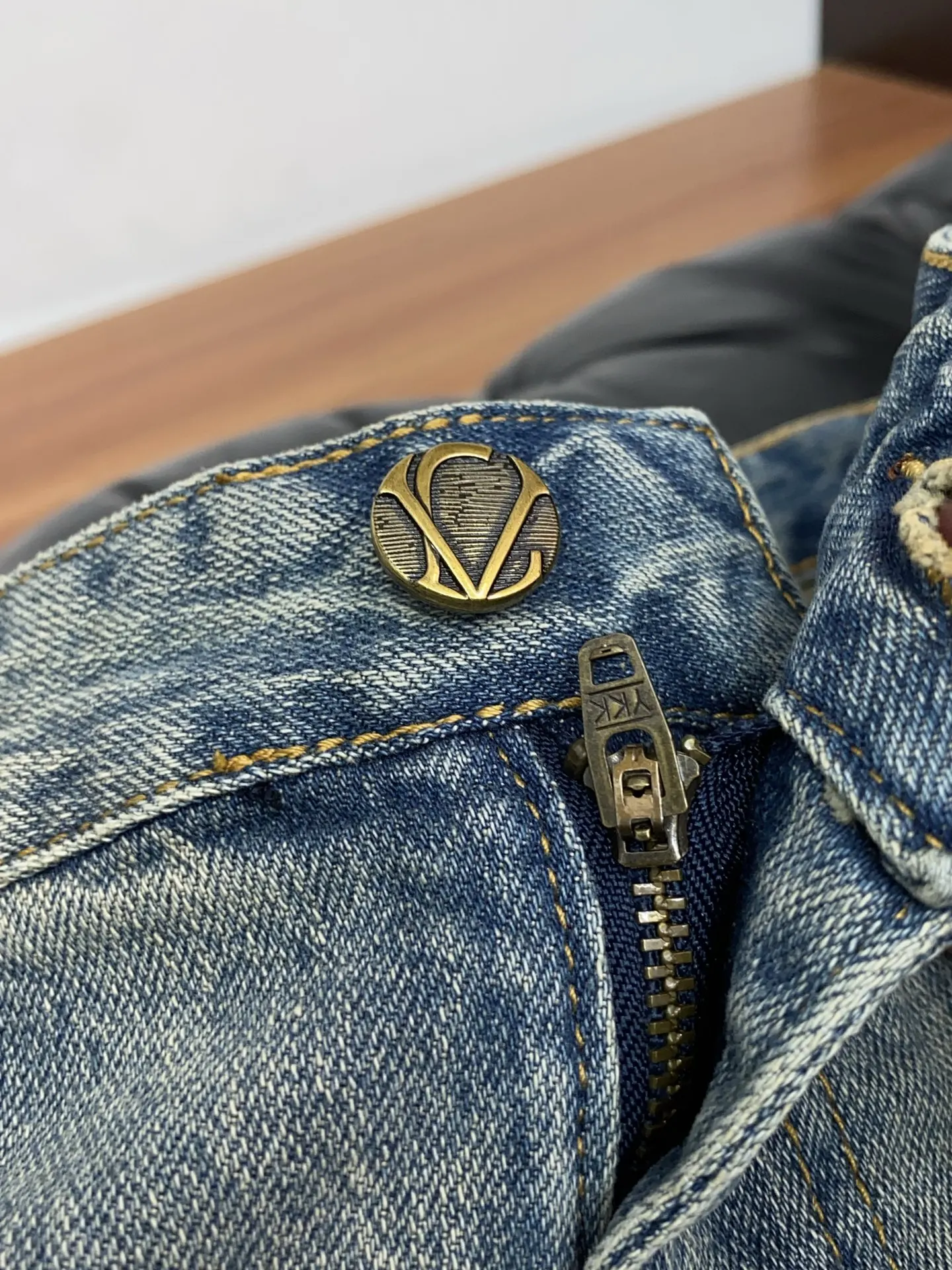 1v Louis Vuitton high-end customization, 2026 early spring latest style jeans, synchronized release at the counter, original customized replica, client-supplied hardware accessories, original quality, imported high-elastic denim fabric, heavy washing, exquisite workmanship and stitching, excellent fit! Selected item
