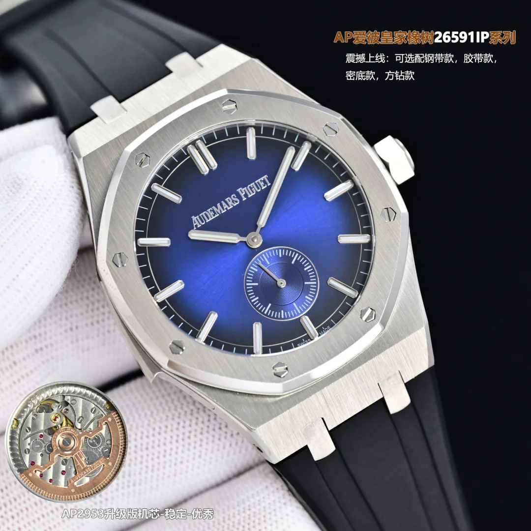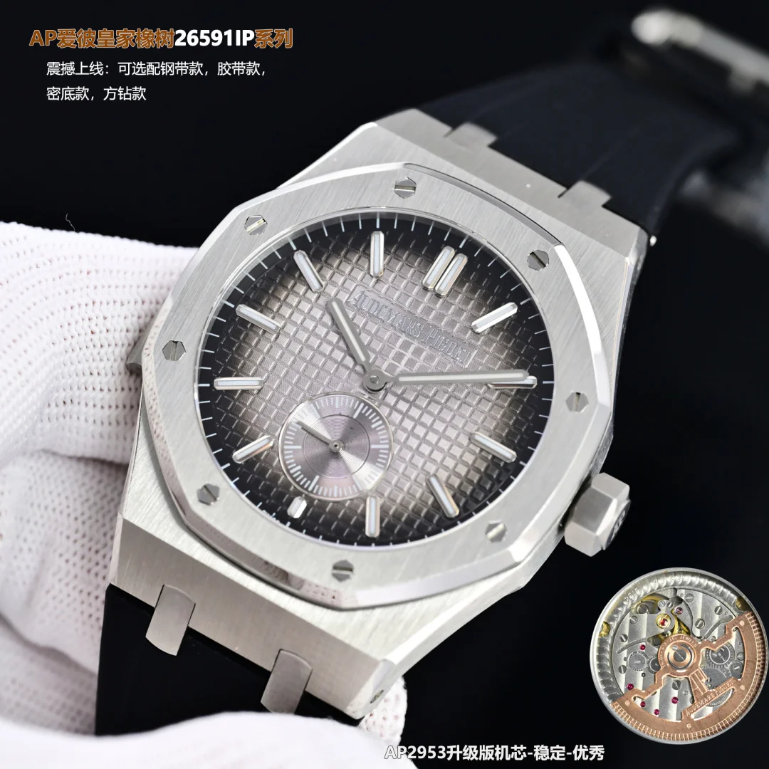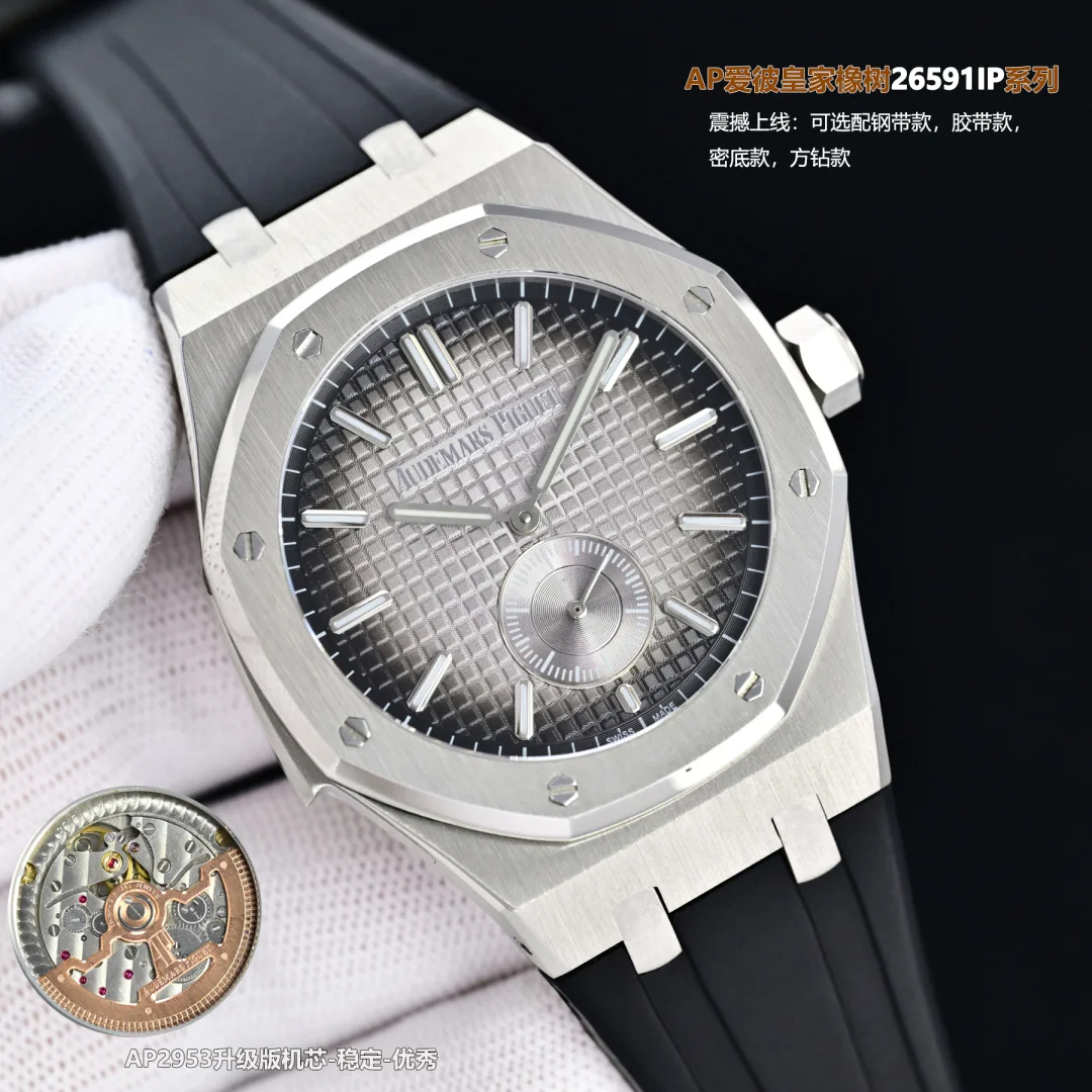 Produced by Sun, White ShellAP Audemars Piguet Royal Oak 26591IP Series R29 Men s Watch, Two and a Half HandsStunning Launch: Upgraded transparent case back, featuring the upgraded..