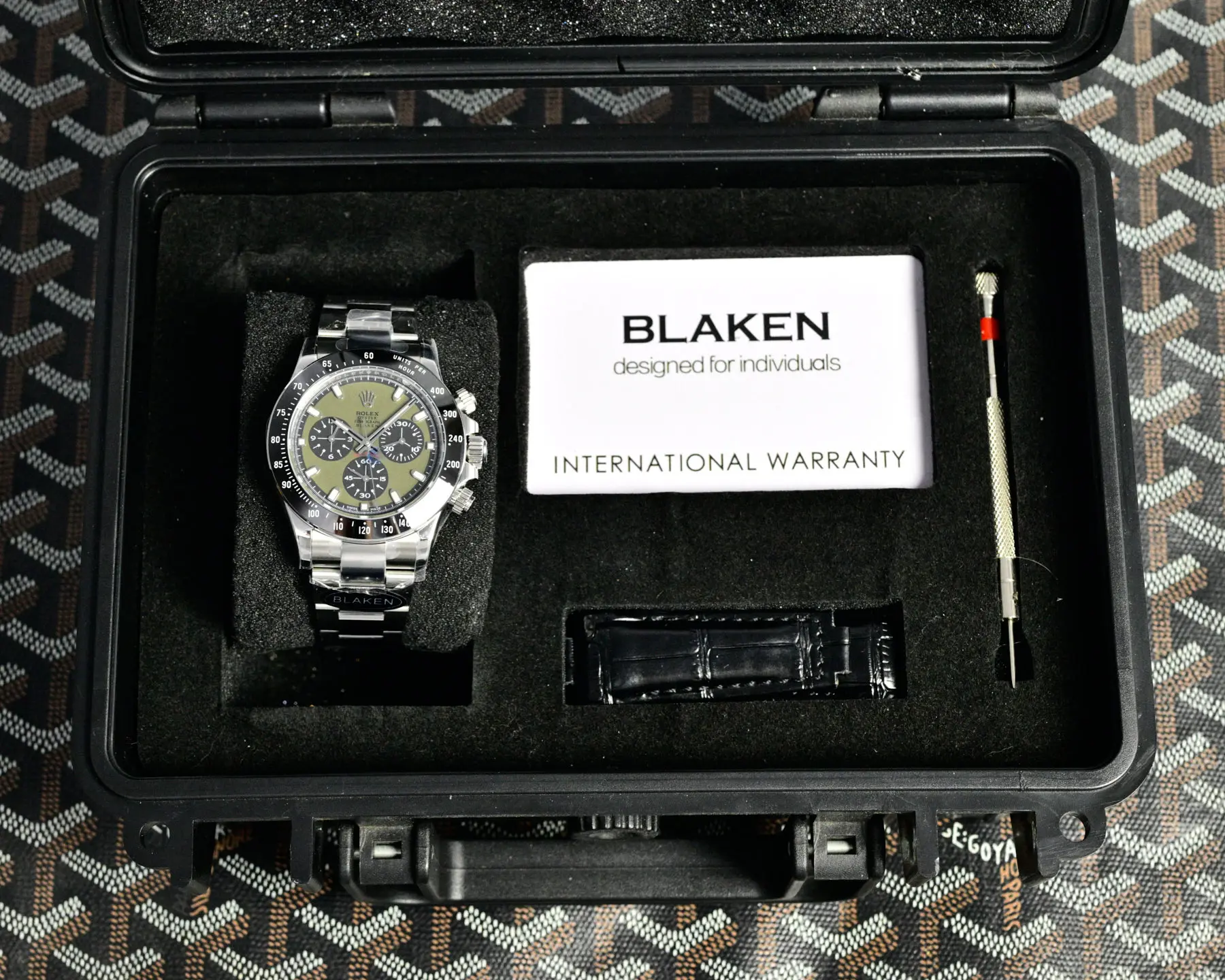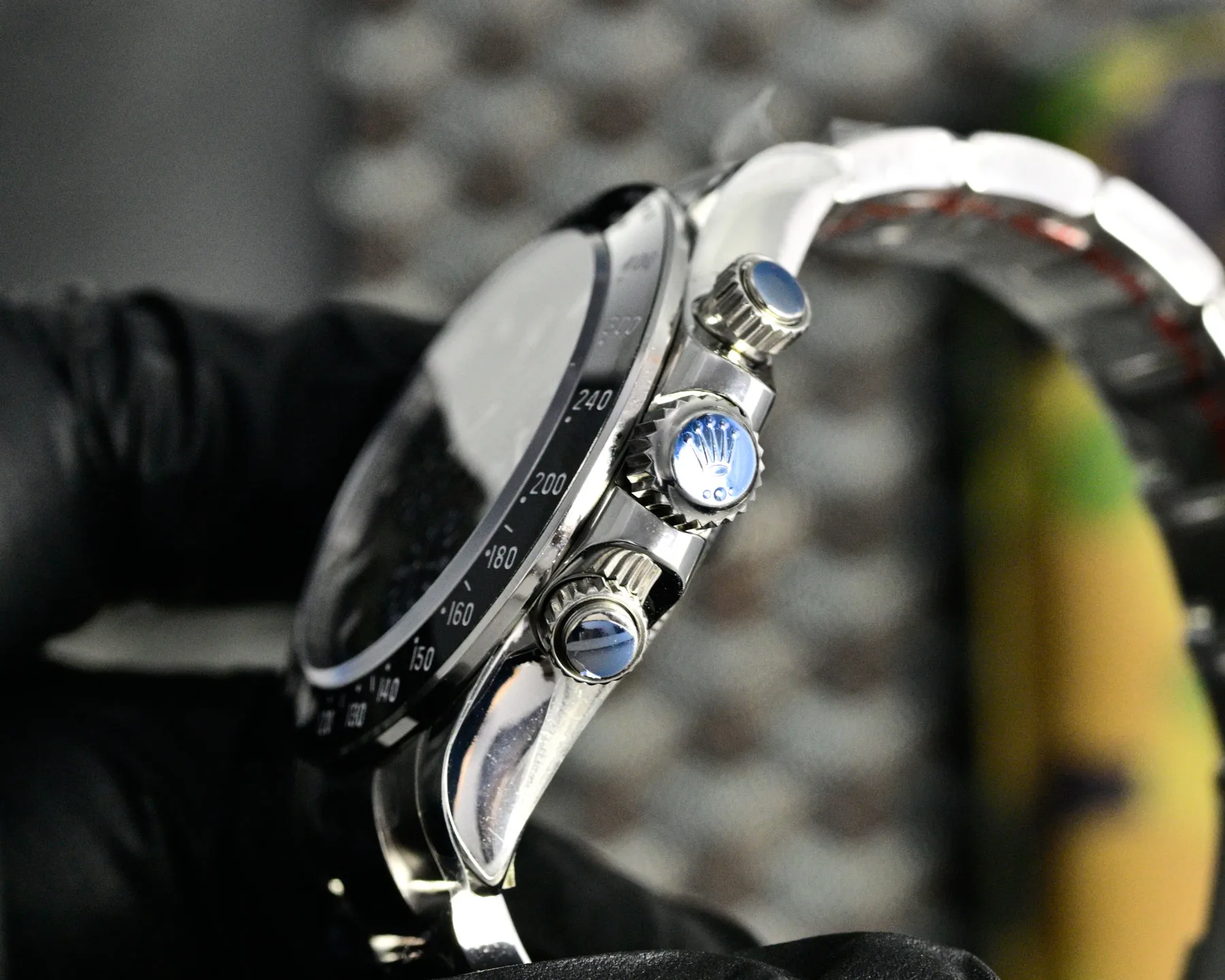 IPK modification company s masterpiece - the BLAKEN version of the water ghost modification style family portrait has been upgraded with the latest DLC King Kong carbon coating technology, making it darker, harder, and more wear-resistant. Authentic limited edition for sale! The family portrait collection is here, and there is bound to be one that suits you. Limited release of 141 pieces with a small quantity available! All-black stainless steel! Provides a visual impact! The imposing chronograph dial presents a sci-fi feel, no longer the common green water ghost! Made with N factory 904 steel components and equipped with a Swiss 2824 stable movement!