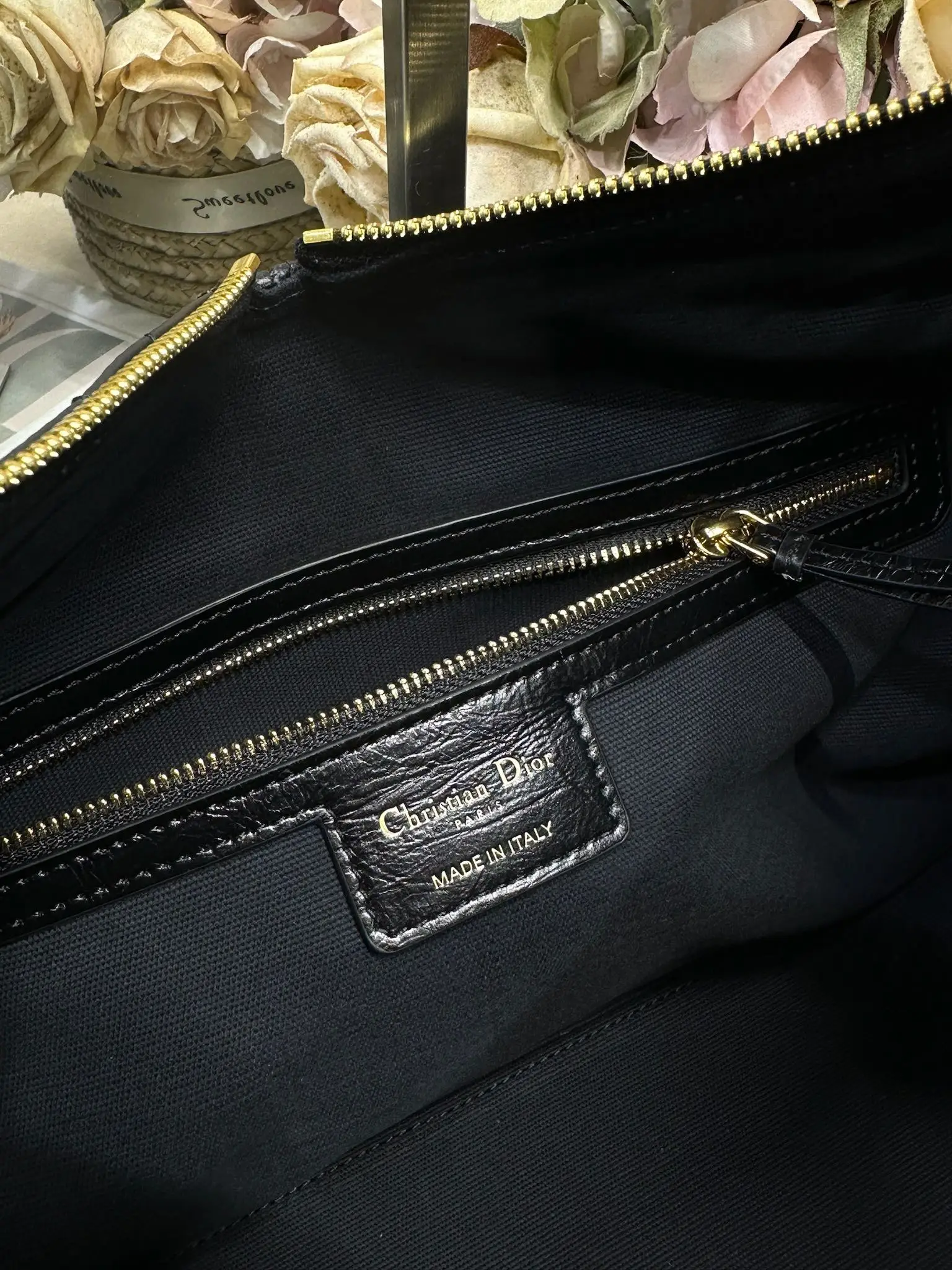 Large Dior Voyage Handbag Wrinkled Black