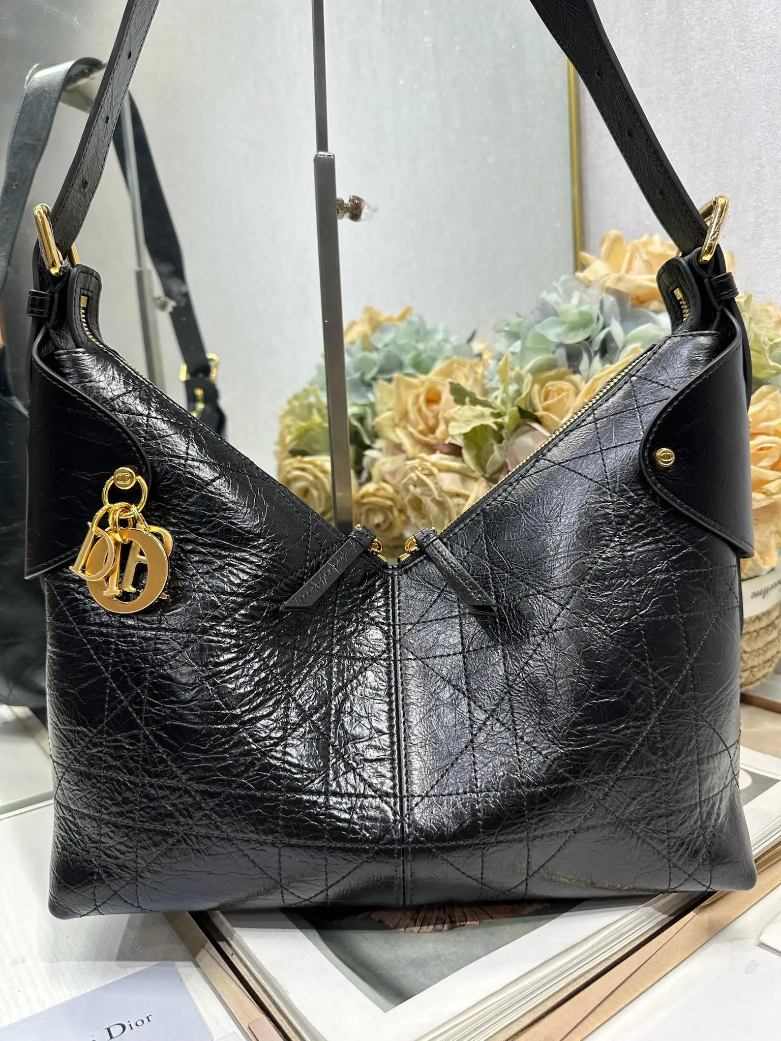 Medium Dior Voyage Bag Wrinkled Black This Dior Voyage Bag is a new addition to the Spring/Summer 2026 ready-to-wear collection, blending soft lines with elegant details to create..