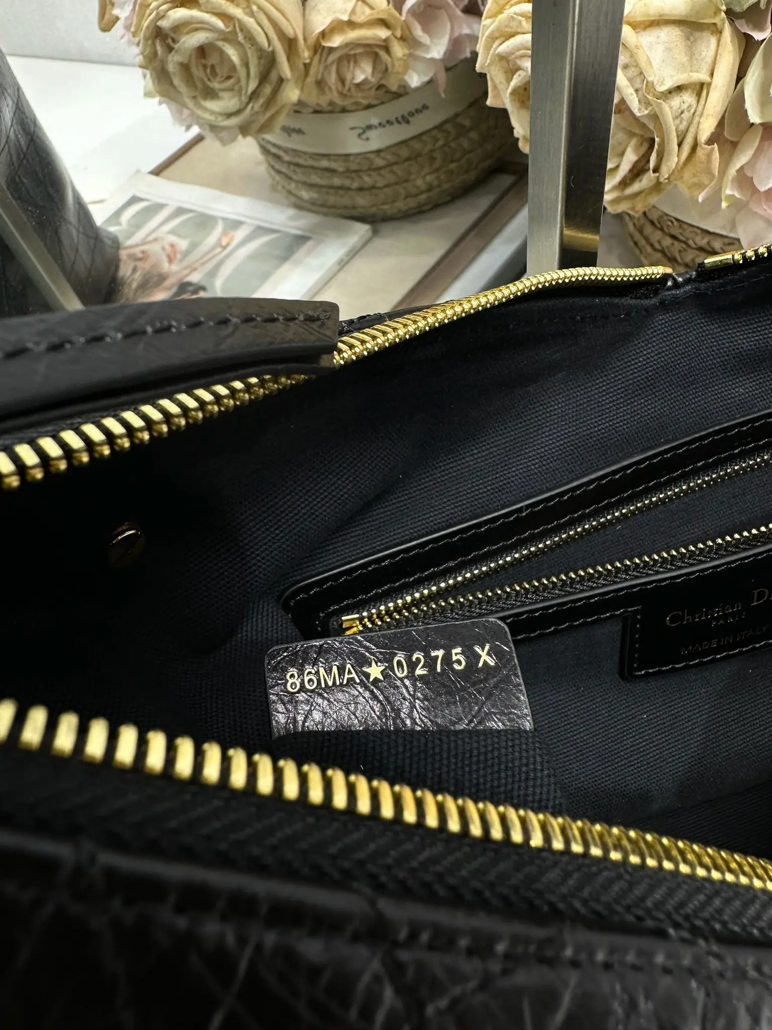 This Dior Voyage Bag is a new addition to the Spring/Summer 2026 ready-to-wear collection, blending soft lines with elegant details to create a harmonious silhouette. Crafted from carefully selected black wrinkled calfskin leather, it features oversized flat wicker pattern stitching, offering a fresh interpretation of Dior s classic motif. Model: 2845