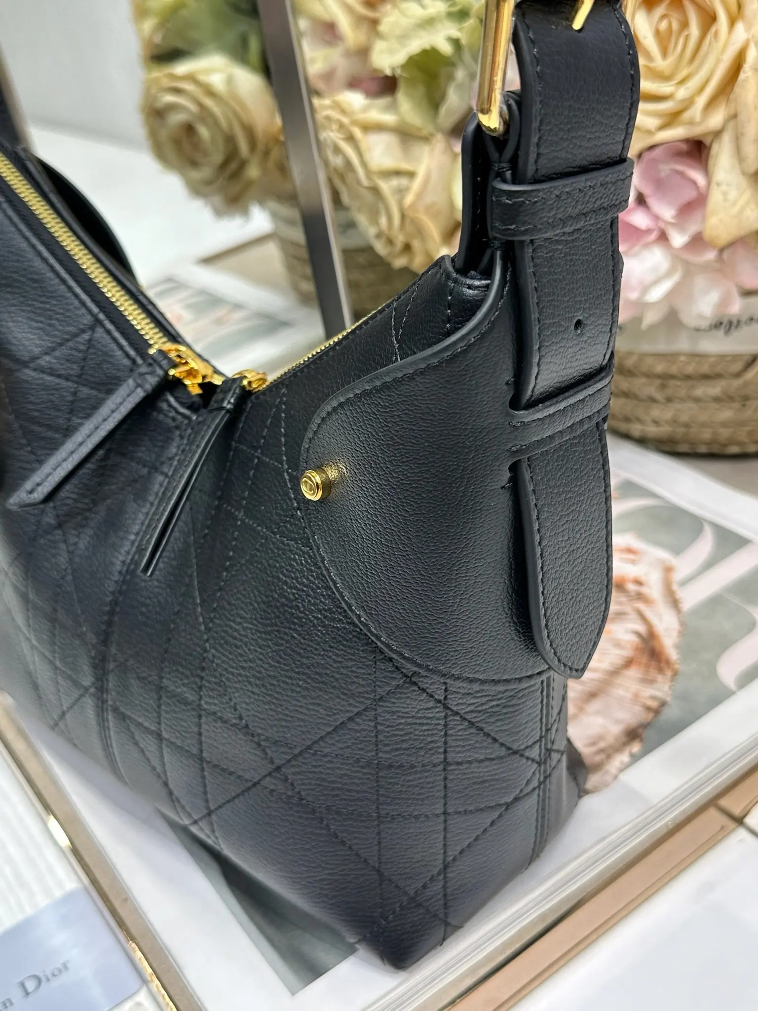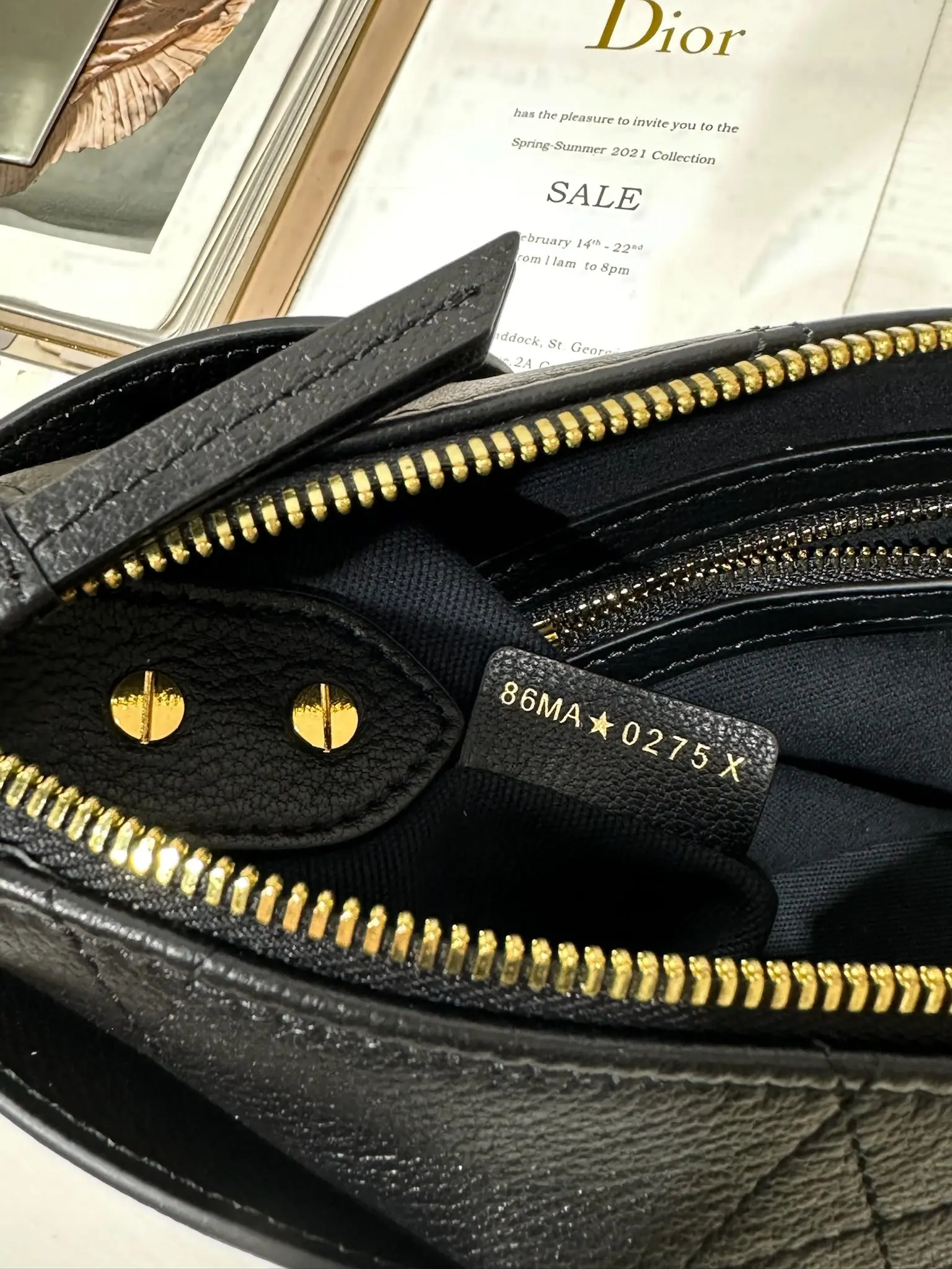 Dior 2846 Black Pebble Grain Cowhide Leather Handbag Women s Crossbody Bag