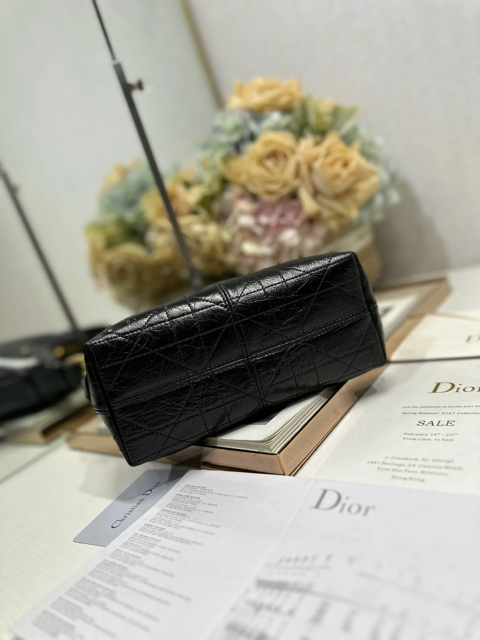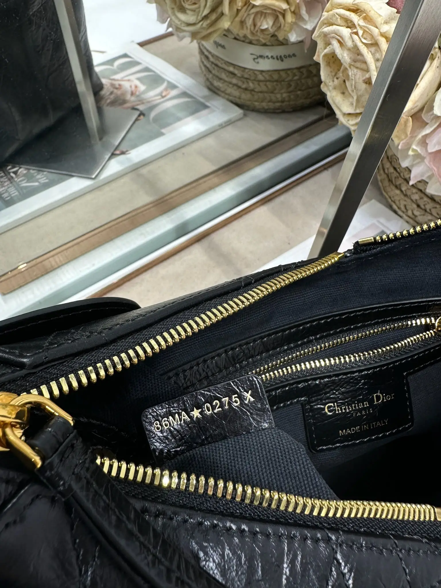 This Dior Voyage bag is a new addition to the Spring/Summer 2026 ready-to-wear collection, blending soft lines with elegant details to create a harmonious silhouette. Crafted from black wrinkled calfskin leather, it features oversized flat wicker pattern stitching, offering a fresh interpretation of Dior s classic motif. Model: 2846