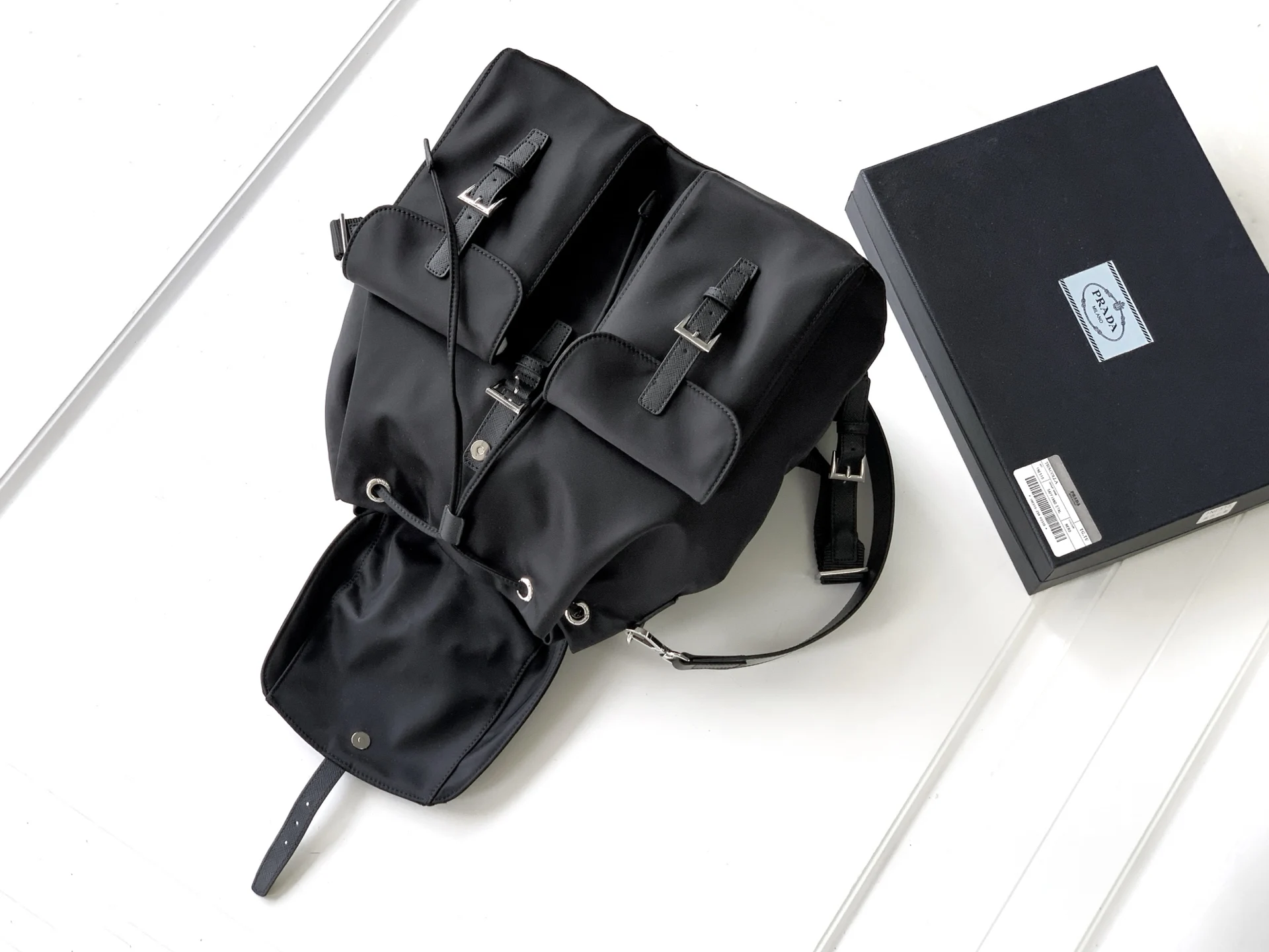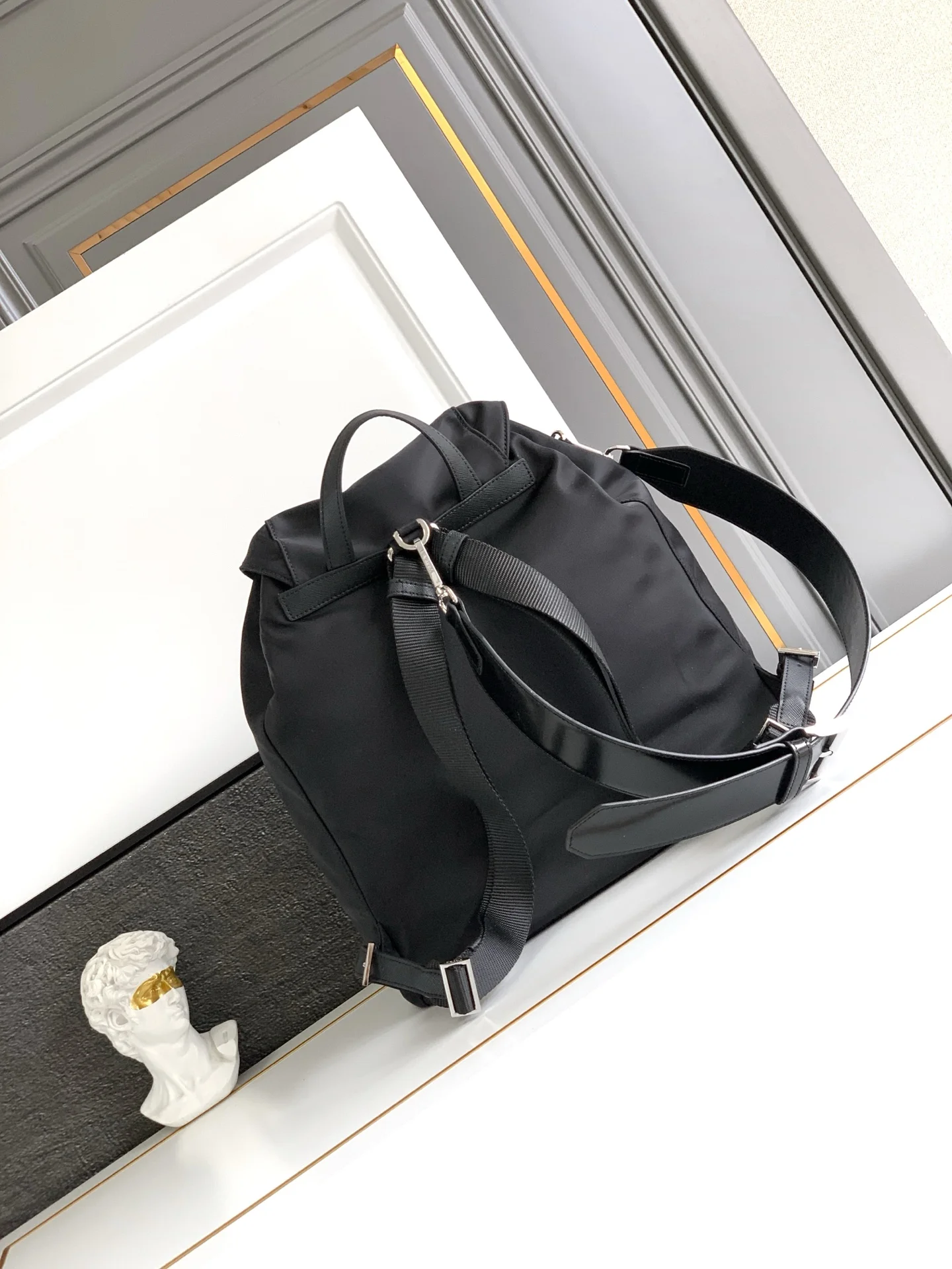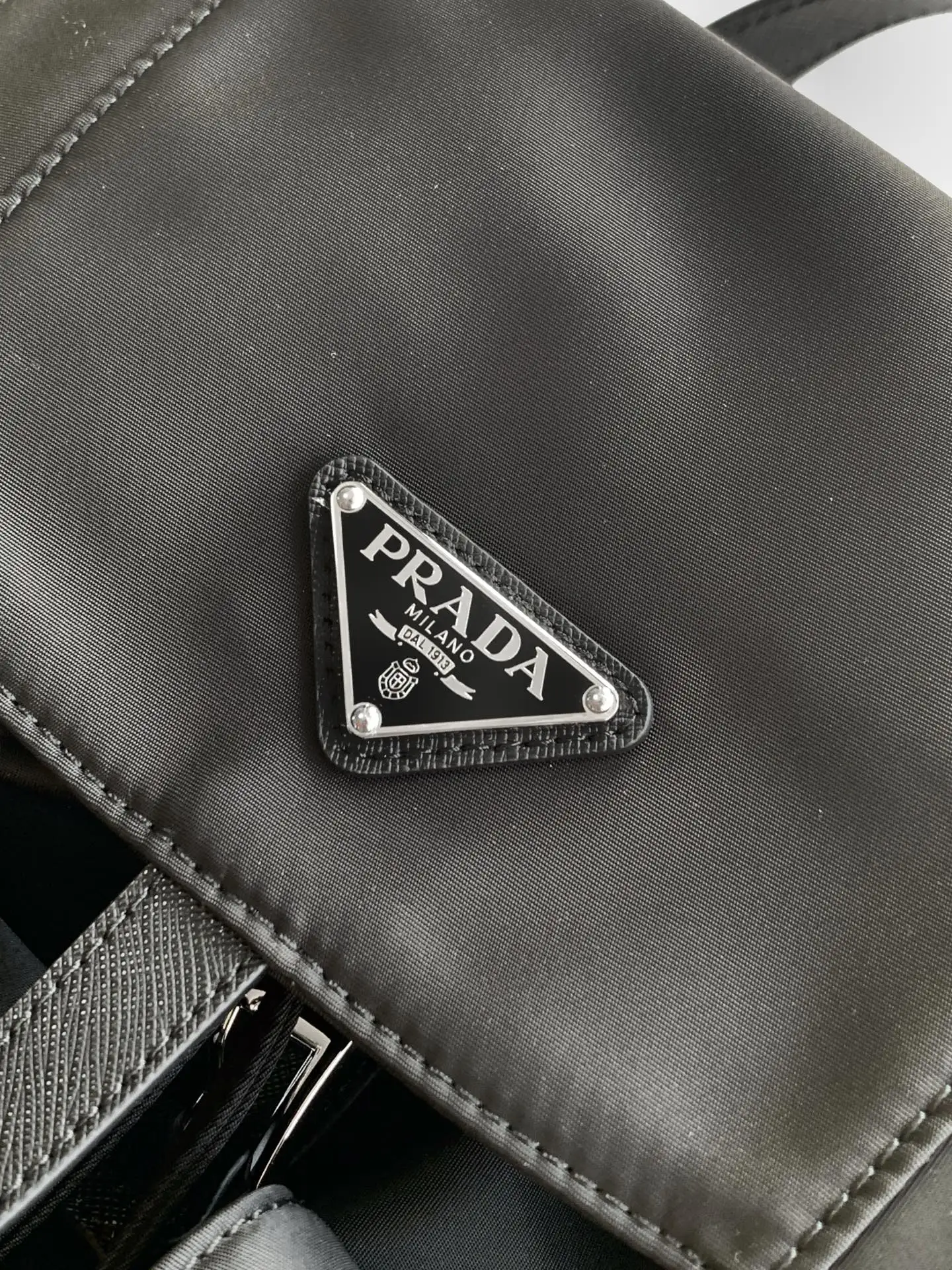 The new nylon backpack features a combination of various materials and is adorned with a triangular logo, showcasing a fashionable and elegant charm. It also comes with a detachable small handbag and adjustable woven nylon shoulder straps paired with a leather belt, making it lightweight and practical. The overall look is stylish and can be easily matched, with an upgraded nylon fabric.