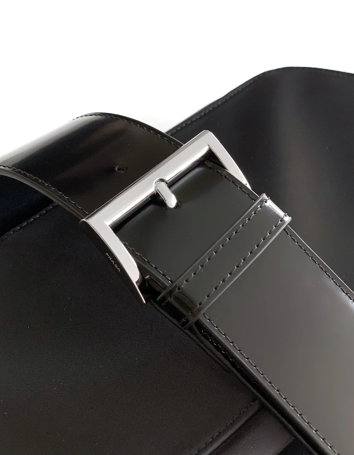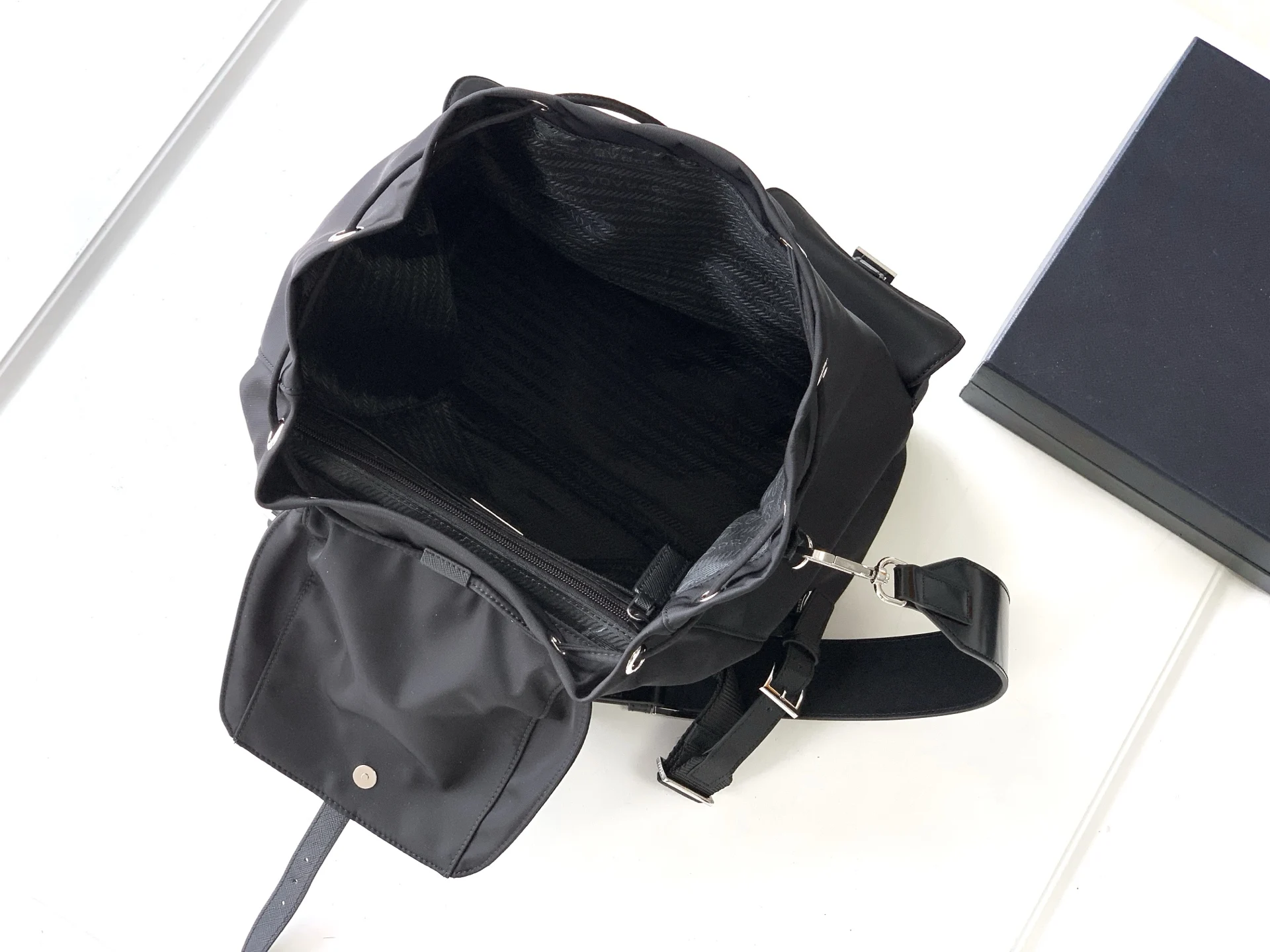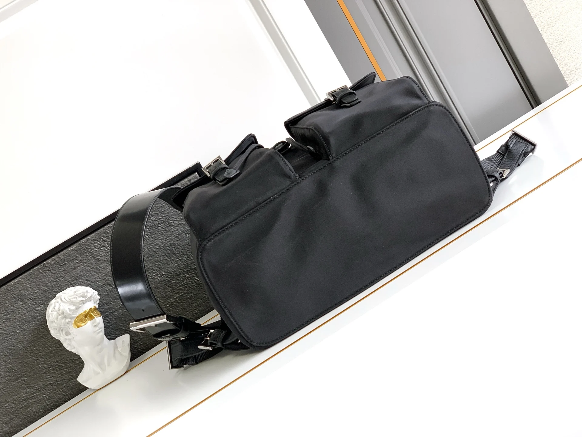 The new nylon backpack features a combination of various materials and is adorned with a triangular logo, showcasing a fashionable and elegant charm. It also comes with a detachable small handbag and adjustable woven nylon shoulder straps paired with a leather belt, making it lightweight and practical. The overall look is stylish and can be easily matched, with an upgraded nylon fabric.