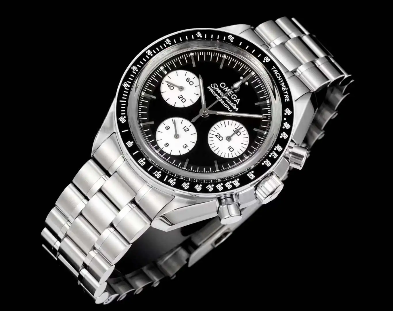 Sunshine Products Stainless SteelOmega OMEGA Speedmaster Series OB2 Speedmaster Reverse Panda Dial Moonwatch, redefining classics in black and white1. Size and Material: 42mm bla..