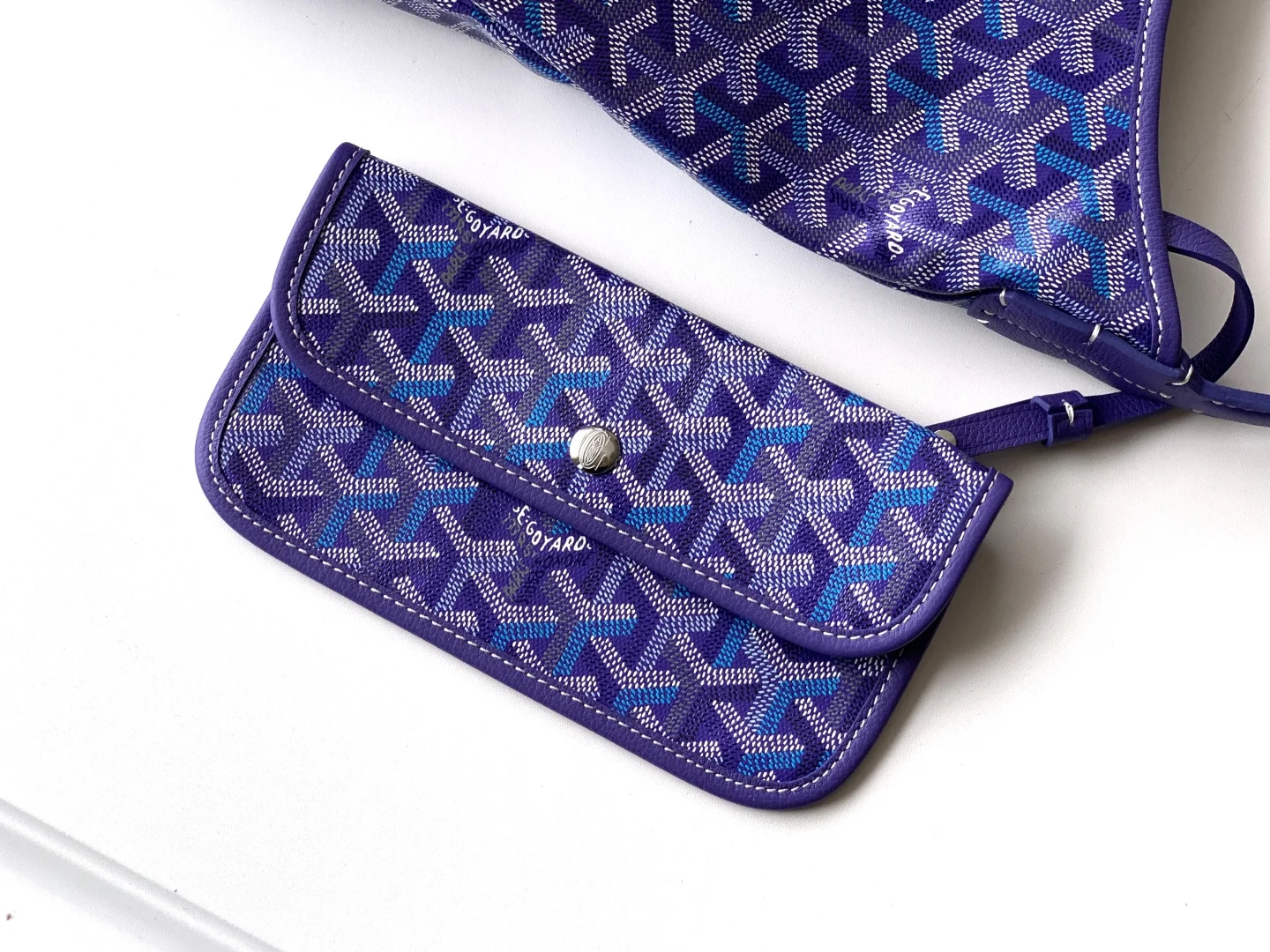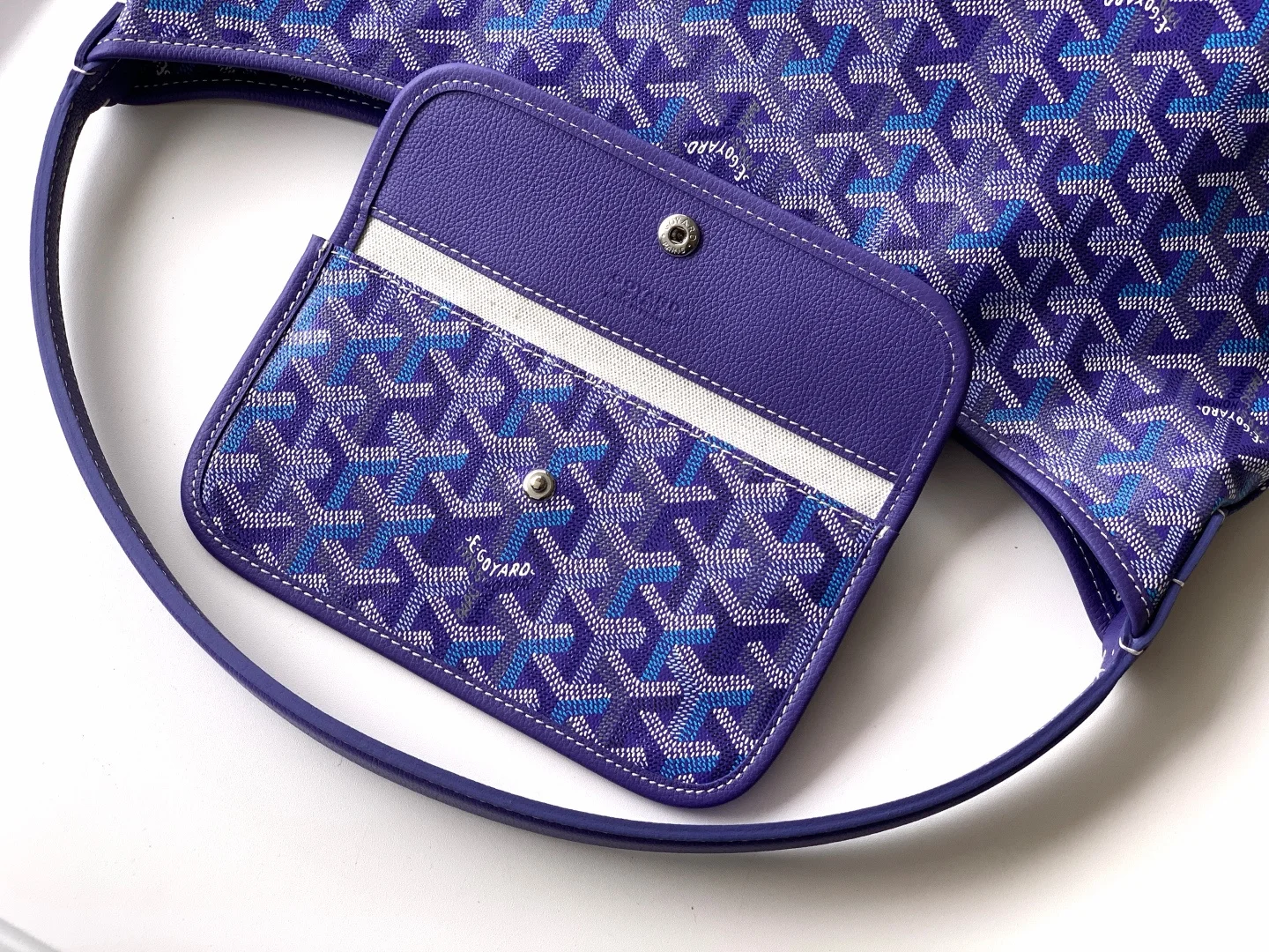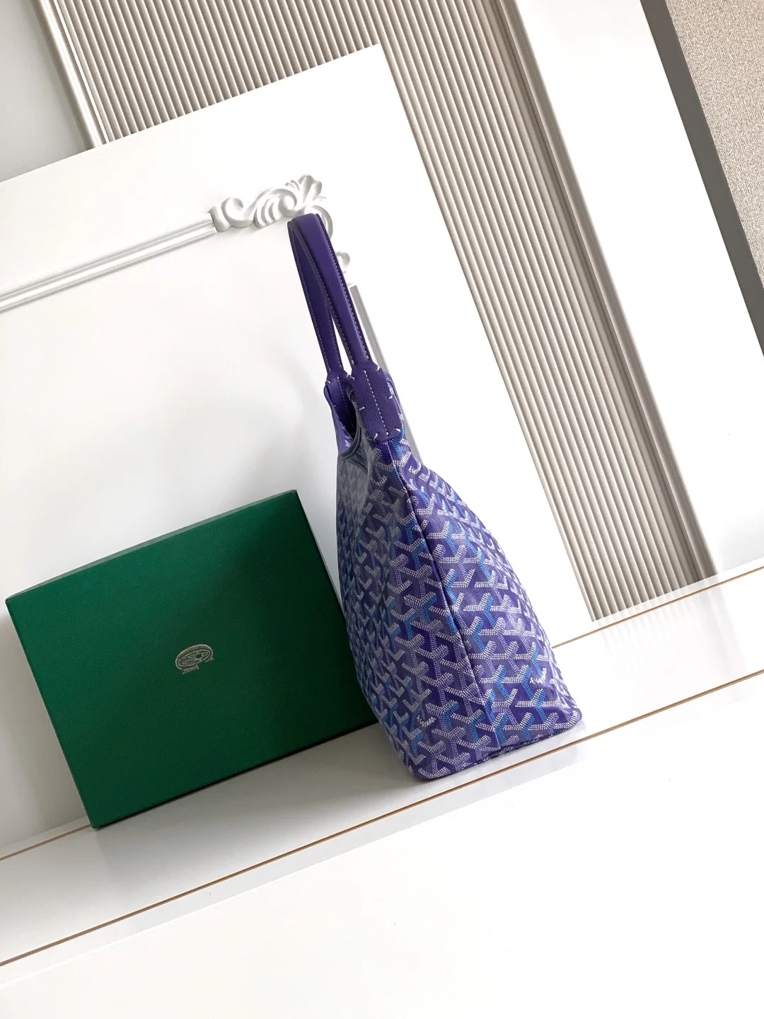 New color HOBO Blueberry Purple Goyard has finally released the highly anticipated Boheme hobo bag! The entire bag design is very suitable for daily commuting, with a lightweight and soft body, and an astonishing capacity that can accommodate all your essentials. It features an extended comfortable leather handle, and the shoulder strap length meets the needs for underarm carrying. It comes with a detachable small bag, making it the perfect dream bag. Dimensions: Bottom length 33cm, Width 42cm, Height 27cm, Thickness 15cm.