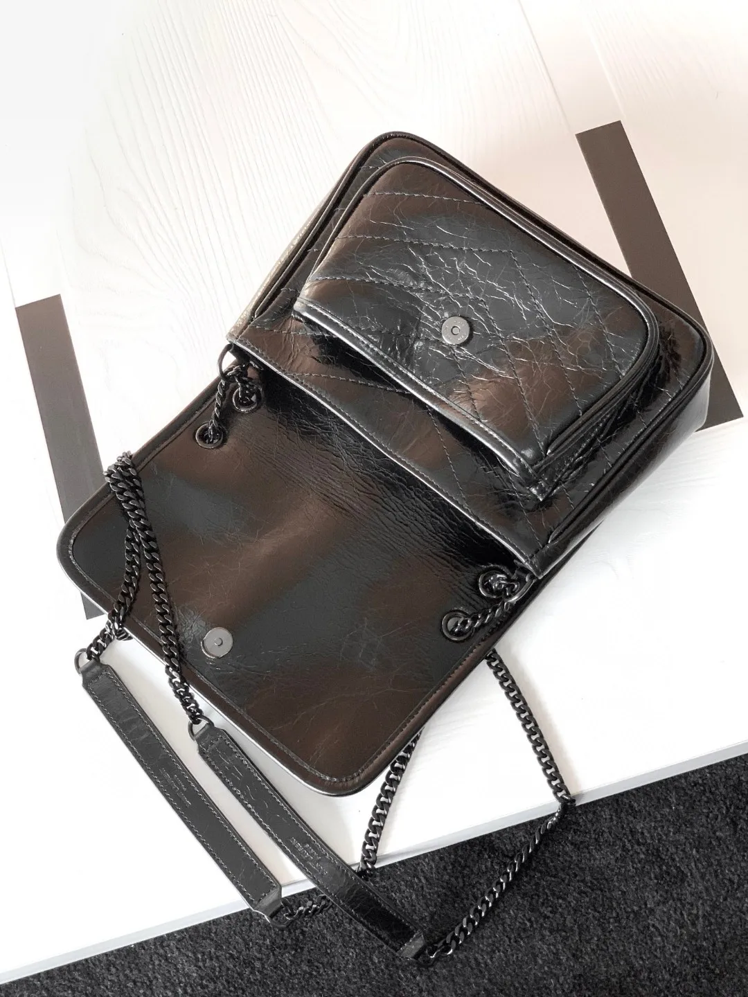 [Imported Original Leather ] Niki 22cm Black with Gold Hardware, what is a classic model? A classic model is one that continues to have its audience no matter how much time passes, and new variations keep emerging! That s right, I m talking about the Niki! It has been on the market for many years and remains a top seller, with no worries about it becoming a relic of the past! The understanding Saint Laurent may have heard everyone s voice and introduced the gold hardware version in oiled leather, silver hardware model: 633151 498892