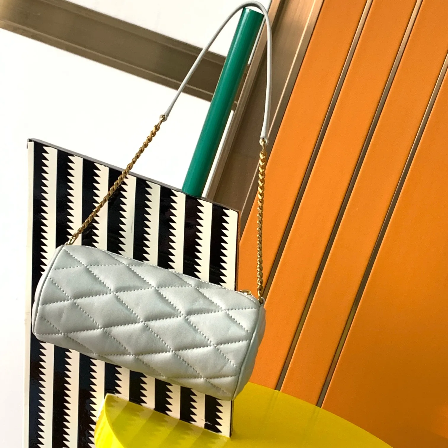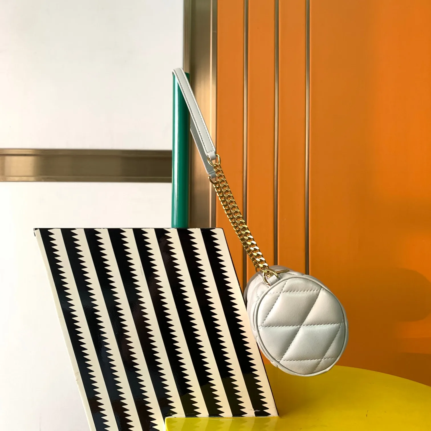 [Imported Original Leather ] 𝑻𝑼𝑩𝑬 𝑺𝑨𝑫𝑬 Small Round Bucket Bag [Rose] is so cute [Color] New SADE Mini Round Tube Handbag, featuring classic diamond quilted stitching and Y brand exclusive metal logo [Gift]. Made of soft lambskin material, the bag has a fluffy and full body with a soft and comfortable feel; [Gift] The instantly loveable small round bucket is known as the king of cost performance, small size with large capacity, [Heart] antique bronze metal accessories, zipper closure! [Go]