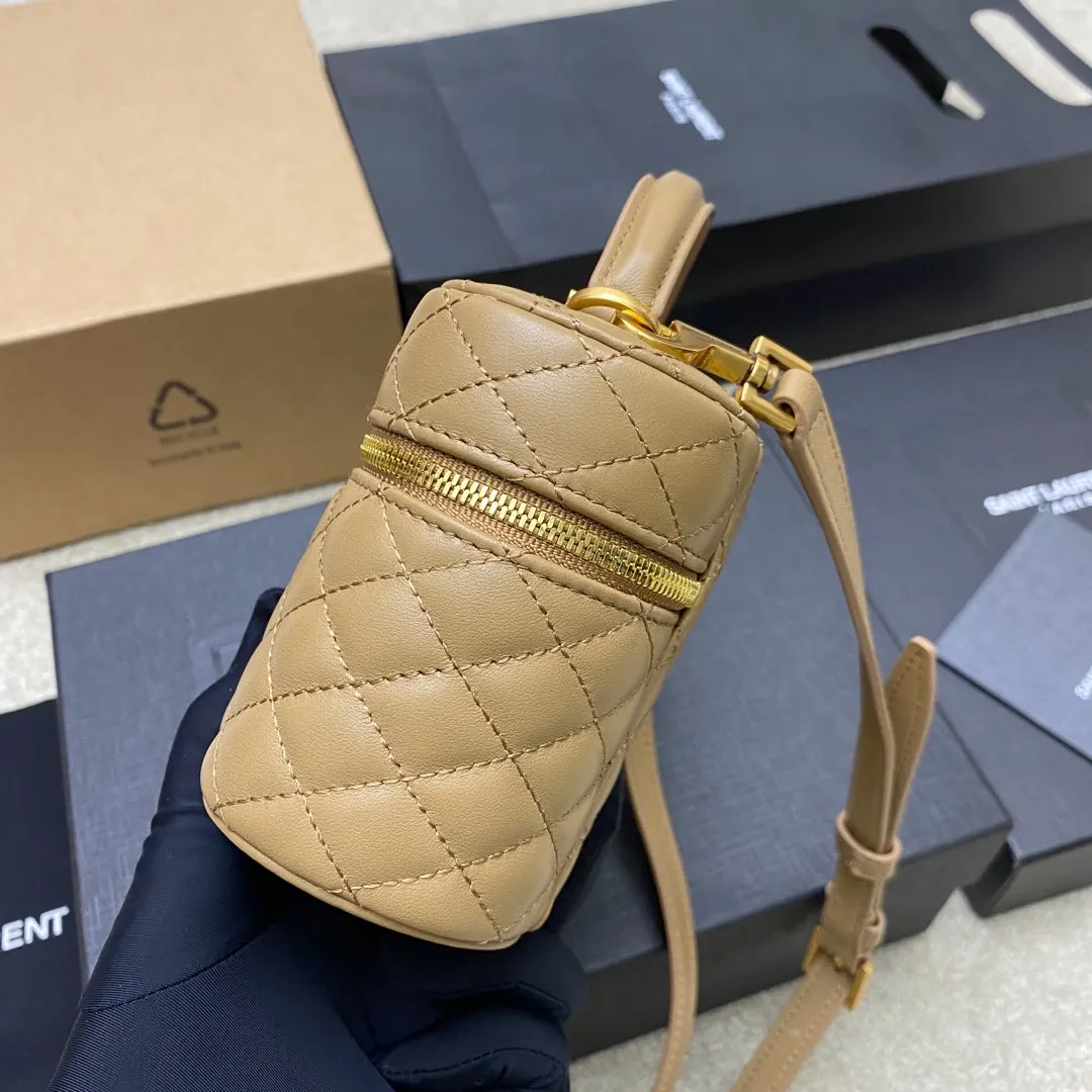 The latest hot item, the 𝙈𝙞𝙣𝙞 lambskin leather shoulder strap clutch makeup bag has arrived! This wrap-around zipper clutch is adorned with 𝙇𝙀 𝘾𝘼𝙎𝙎𝘼𝙉𝘿𝙍𝙀 and diamond quilted stitching, lambskin lining, antique brass hardware, a zipper closure with one card slot, and this multifunctional item comes with a leather top handle and an adjustable detachable shoulder strap, suitable for shoulder or crossbody wear!