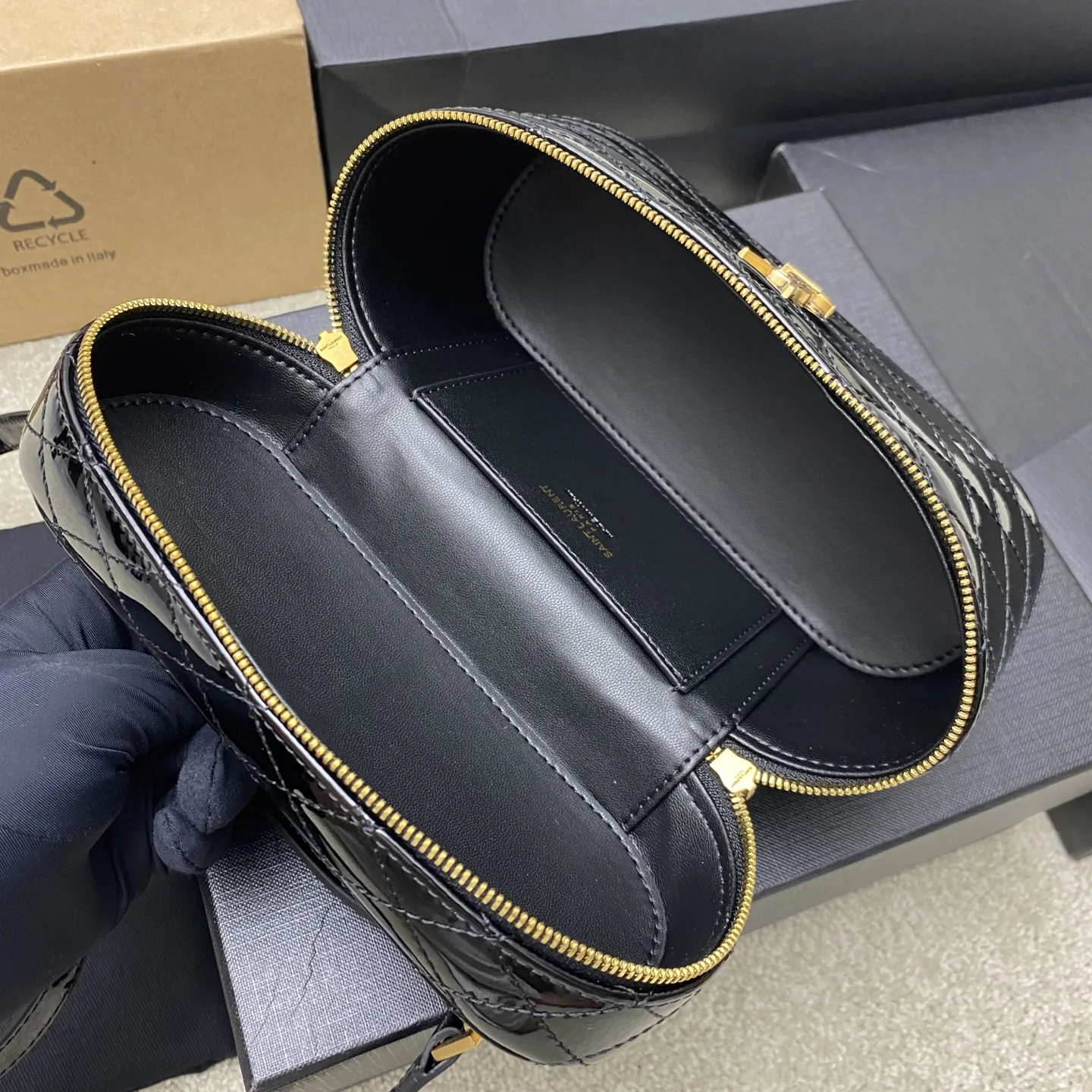 The latest hot item, the 𝙈𝙞𝙣𝙞 lambskin leather clutch makeup bag has arrived! This wrap-around zipper clutch is adorned with 𝙇𝙀 𝘾𝘼𝙎𝙎𝘼𝙉𝘿𝙍𝙀 and diamond quilted stitching, featuring a lambskin lining, antique bronze hardware, a zipper closure with one card slot. This multifunctional item comes with a leather top handle and an adjustable detachable shoulder strap, allowing for shoulder or crossbody wear!