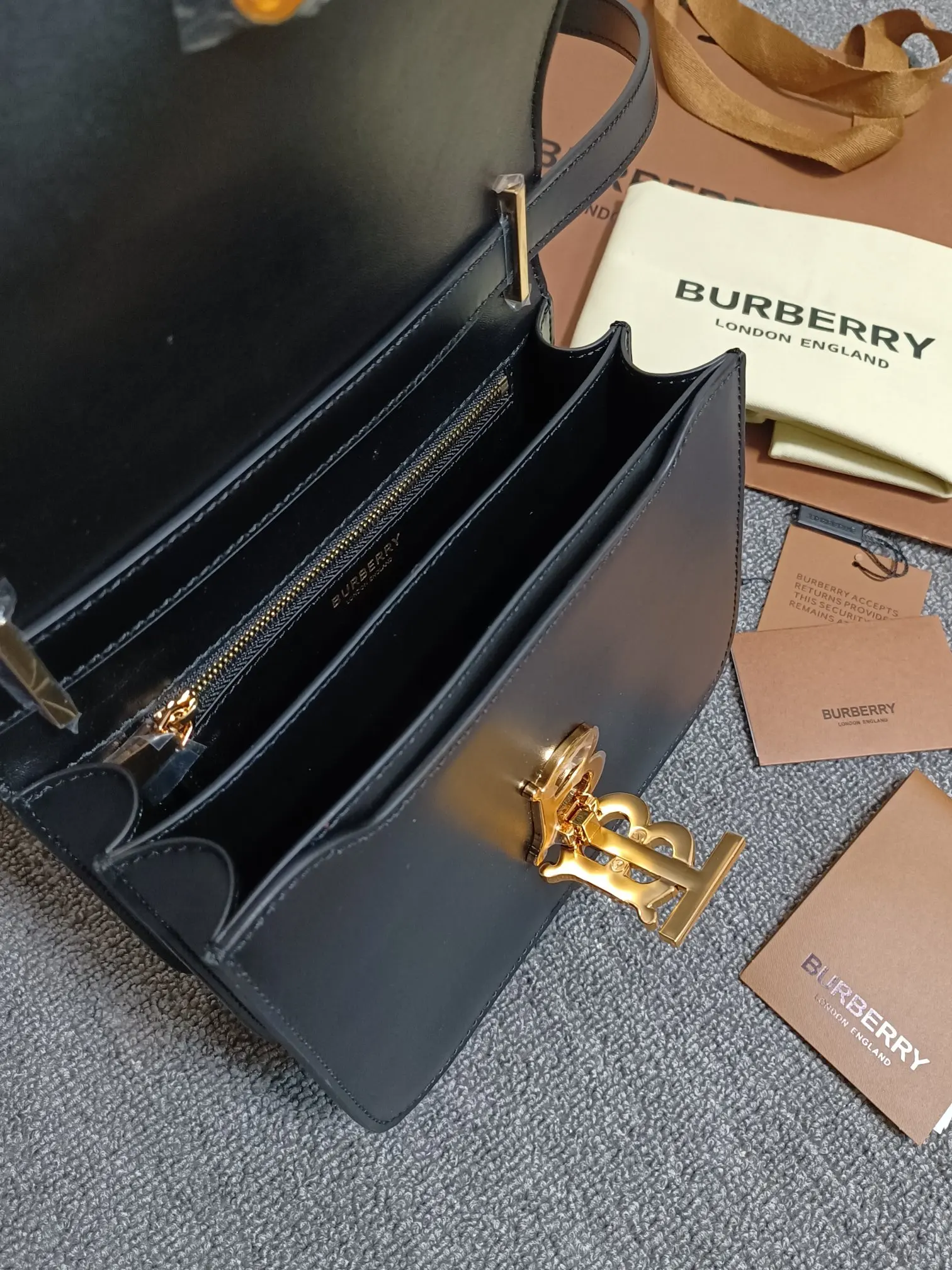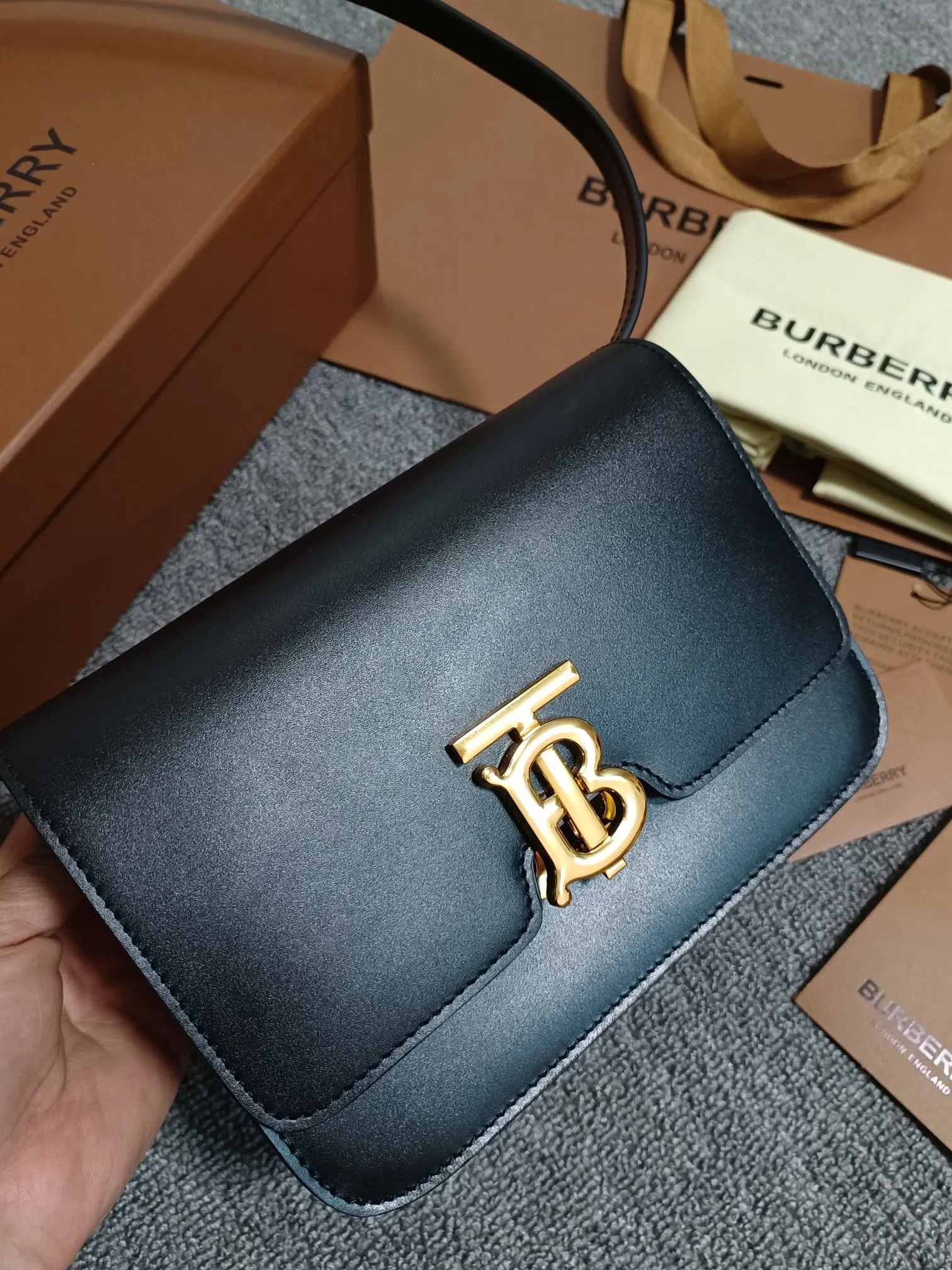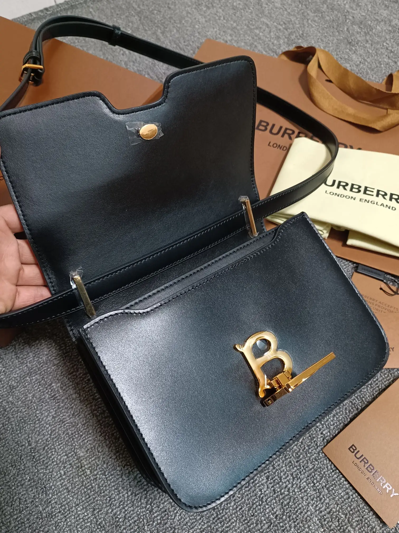 B s TB small exclusive logo leather lock buckle bag, a structured leather shoulder bag with a smooth texture, featuring a lock buckle decoration inspired by Thomas s exclusive logo. It can be easily transformed into a crossbody bag or a clutch.