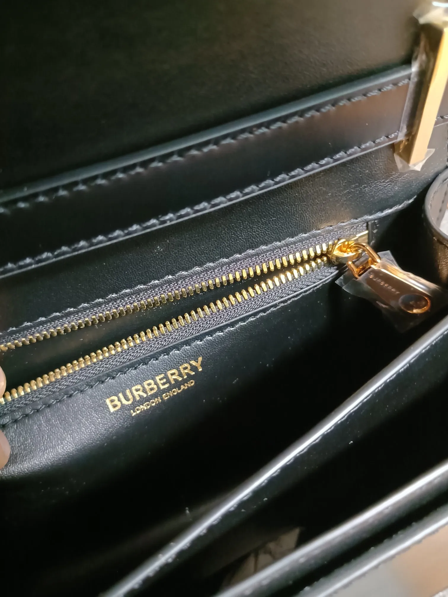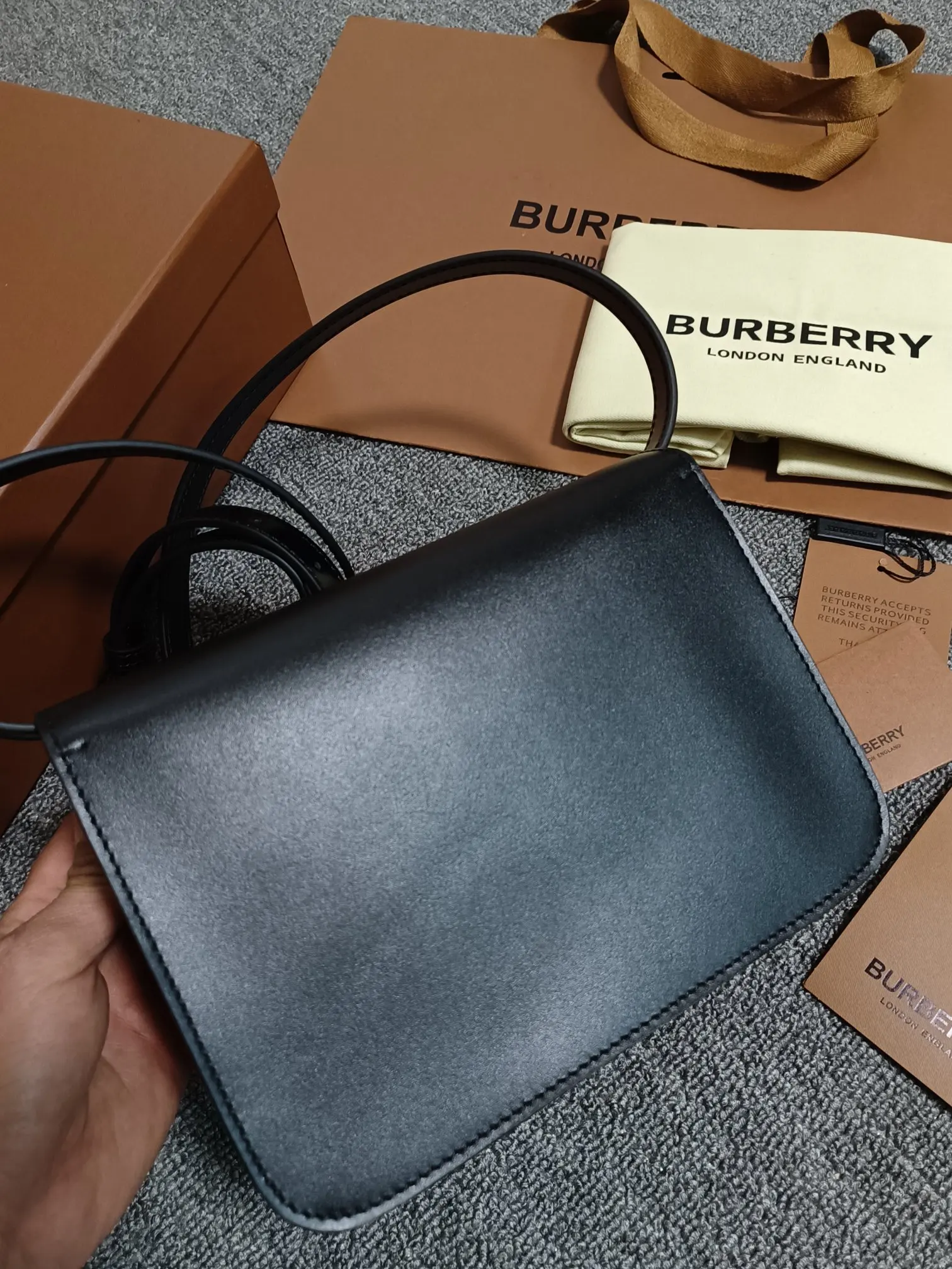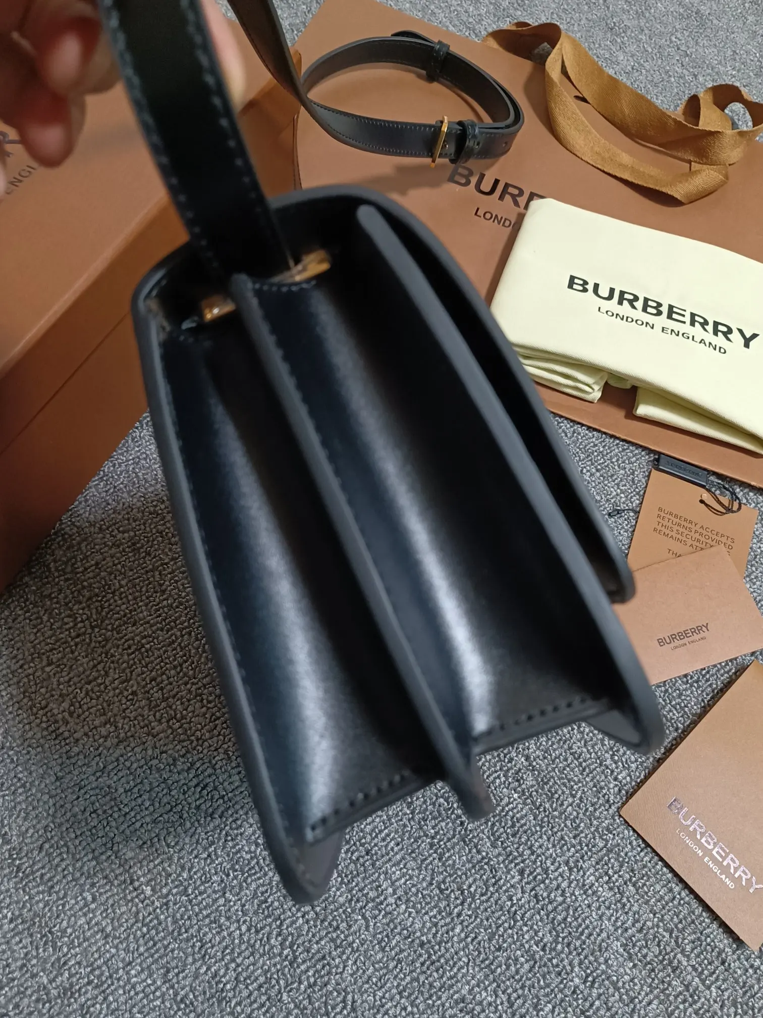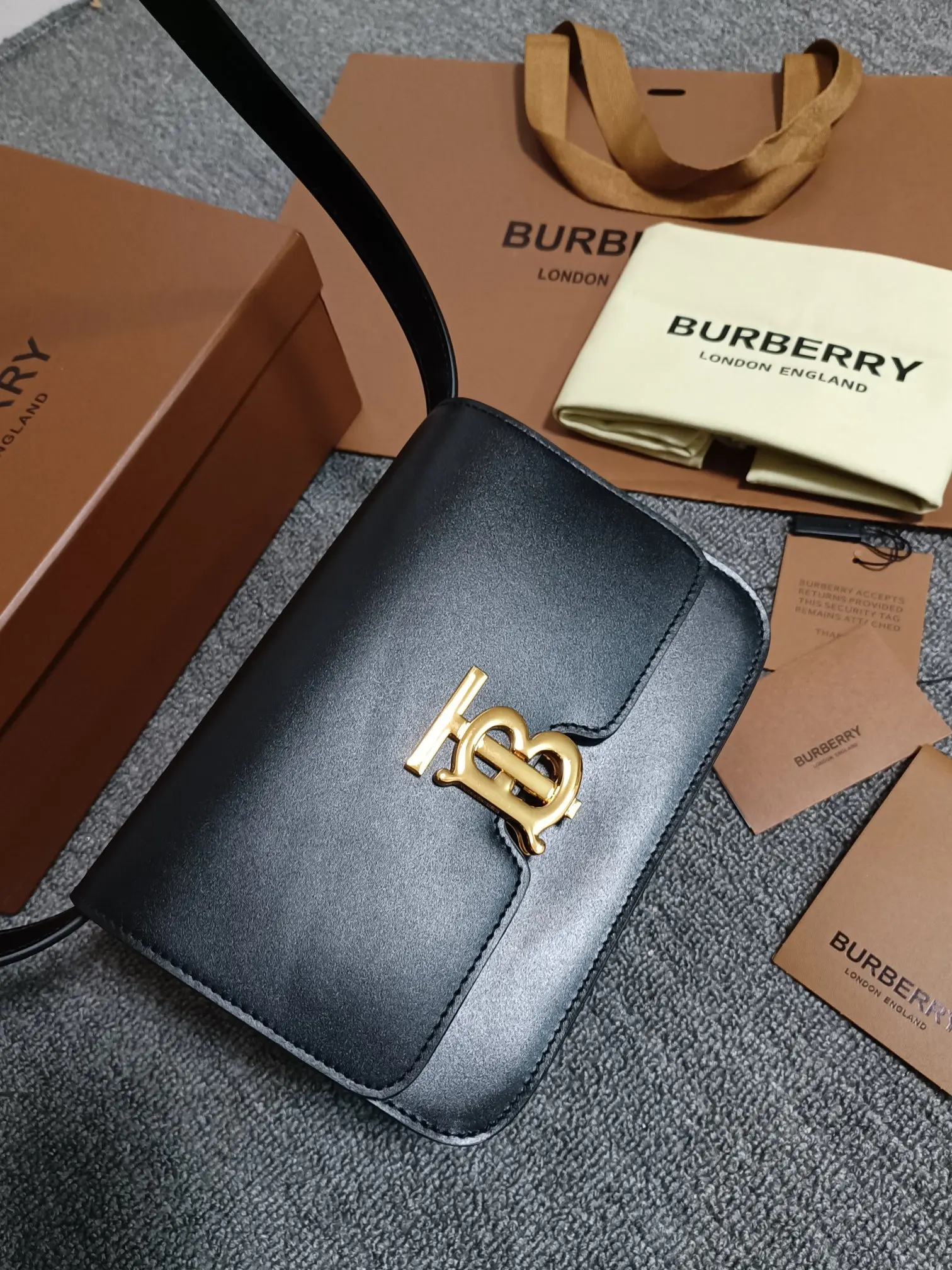 B s TB small exclusive logo leather lock buckle bag, a structured leather shoulder bag with a smooth texture, featuring a lock buckle decoration inspired by Thomas s exclusive logo. It can be easily transformed into a crossbody bag or a clutch.