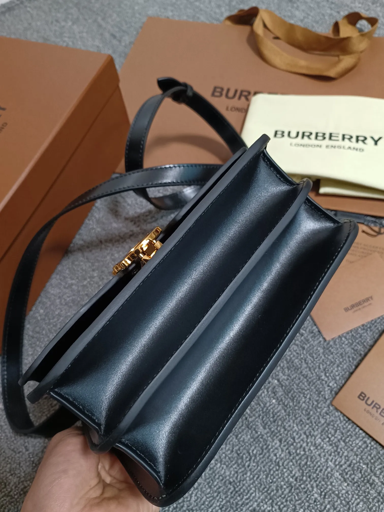 B s TB small exclusive logo leather lock buckle bag, a structured leather shoulder bag with a smooth texture, featuring a lock buckle decoration inspired by Thomas s exclusive log..