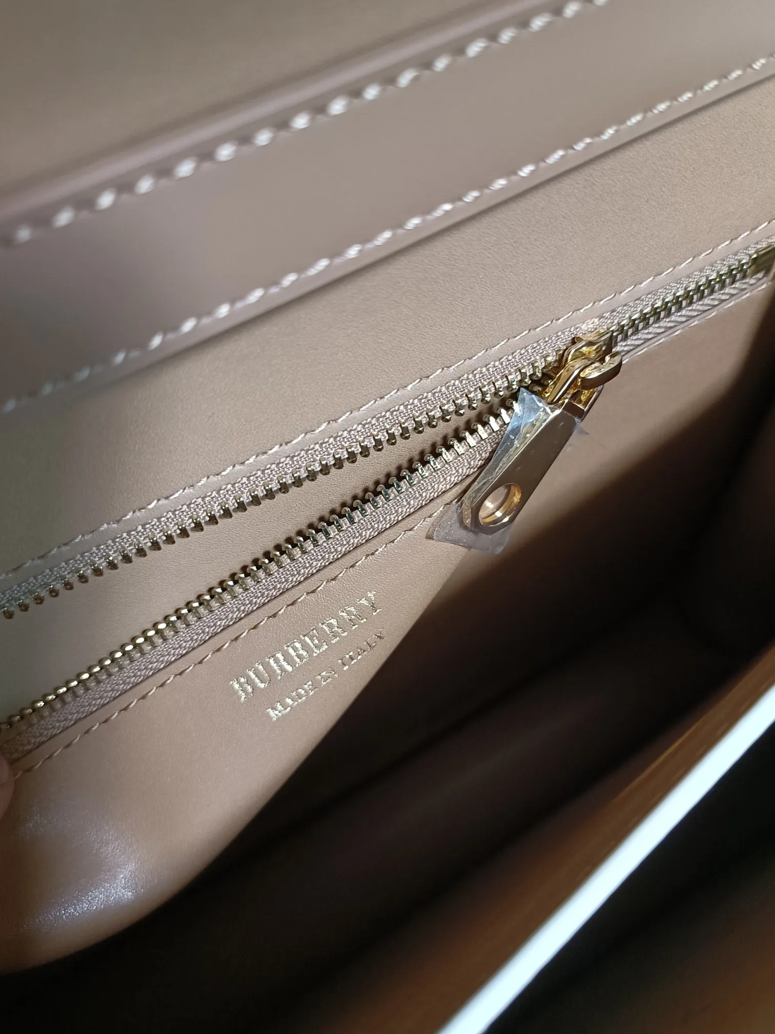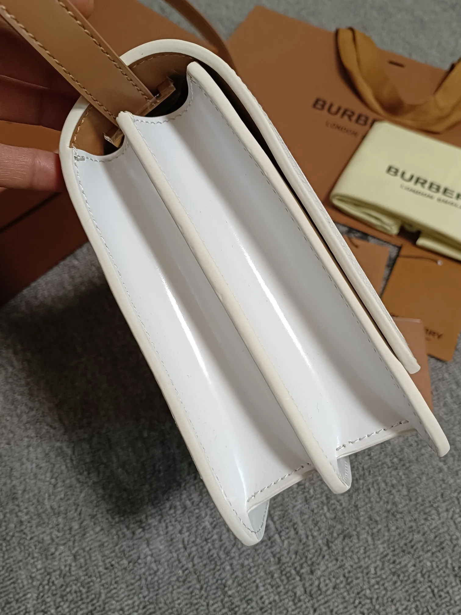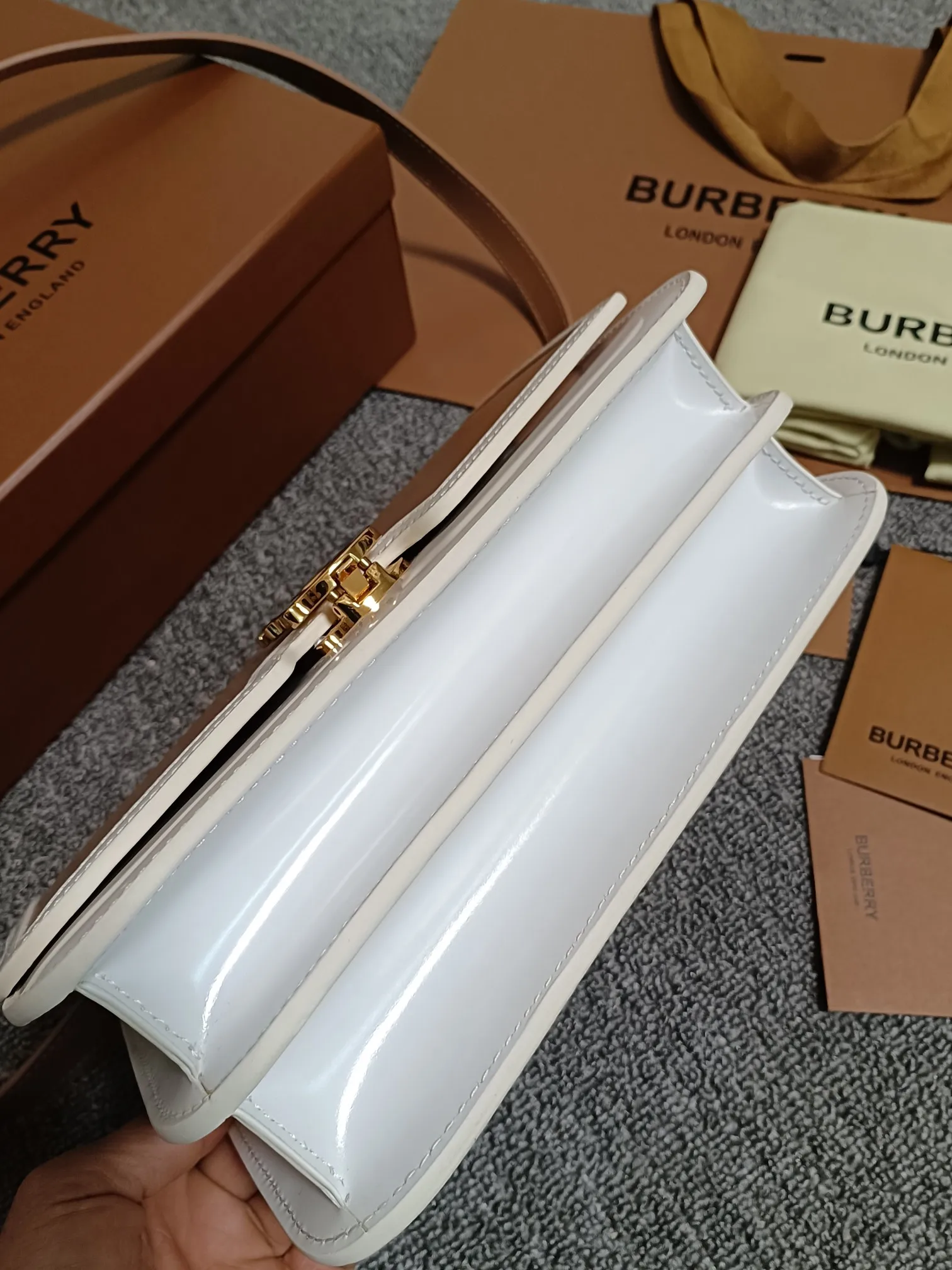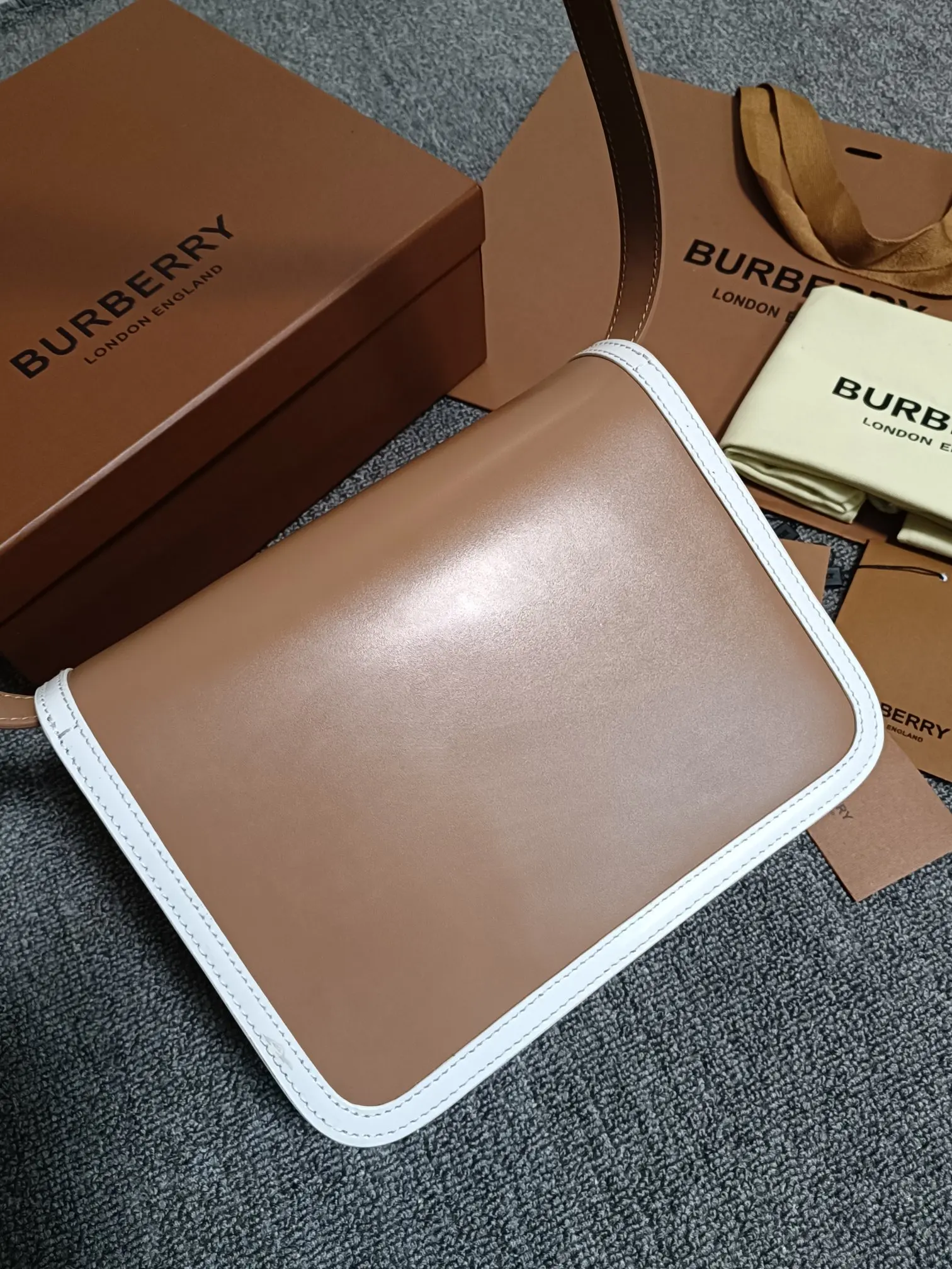B family s TB medium exclusive logo two-tone leather lock bag, a structured leather shoulder bag with a smooth texture, featuring a lock decoration inspired by Thomas Bur s exclusive logo. It can be easily transformed into a crossbody bag or a clutch. Item number: 89063