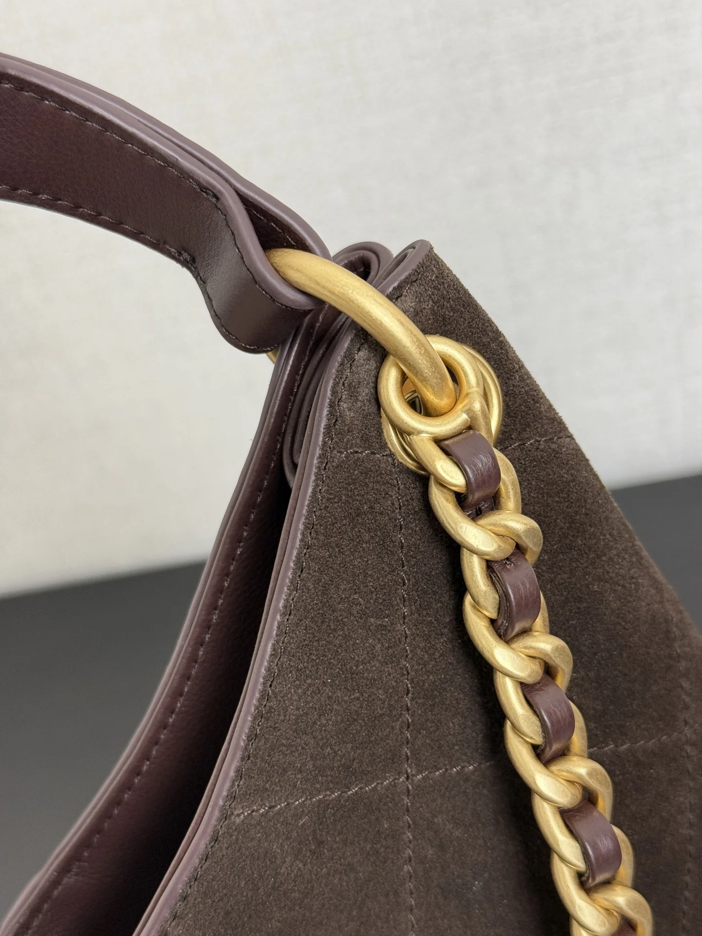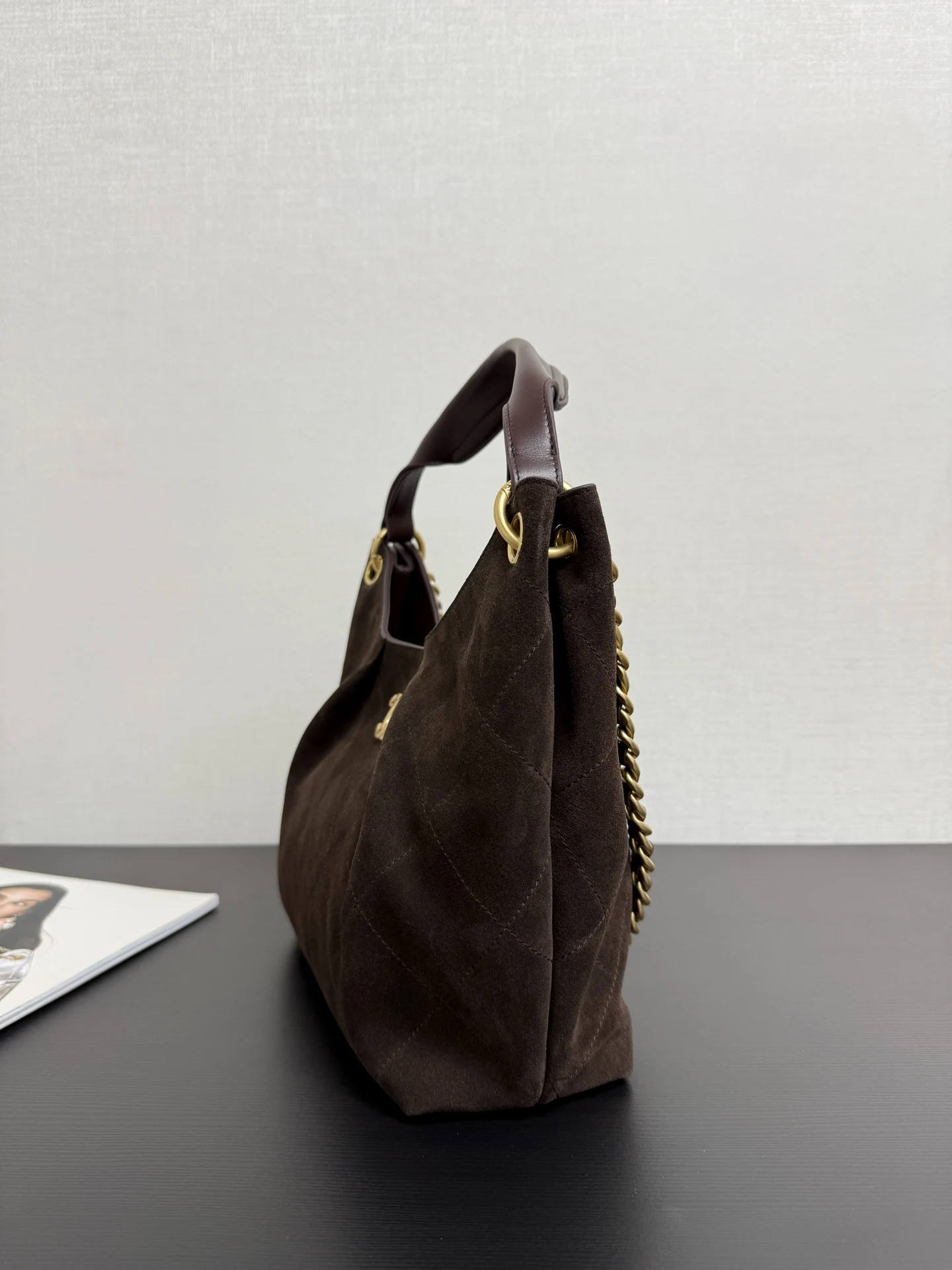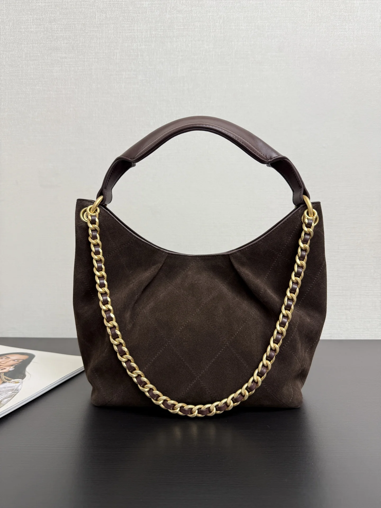 The 26C hippie hobo bag looks great! The dumpling bag shape is quite cute , and the chain adds a touch of liveliness to the whole bag. The suede brown color is more suitable for autumn and winter, and the capacity is still large enough for daily use paired with a coat, it gives a strong female lead vibe, haha. Size: 32*20*9cm 99531