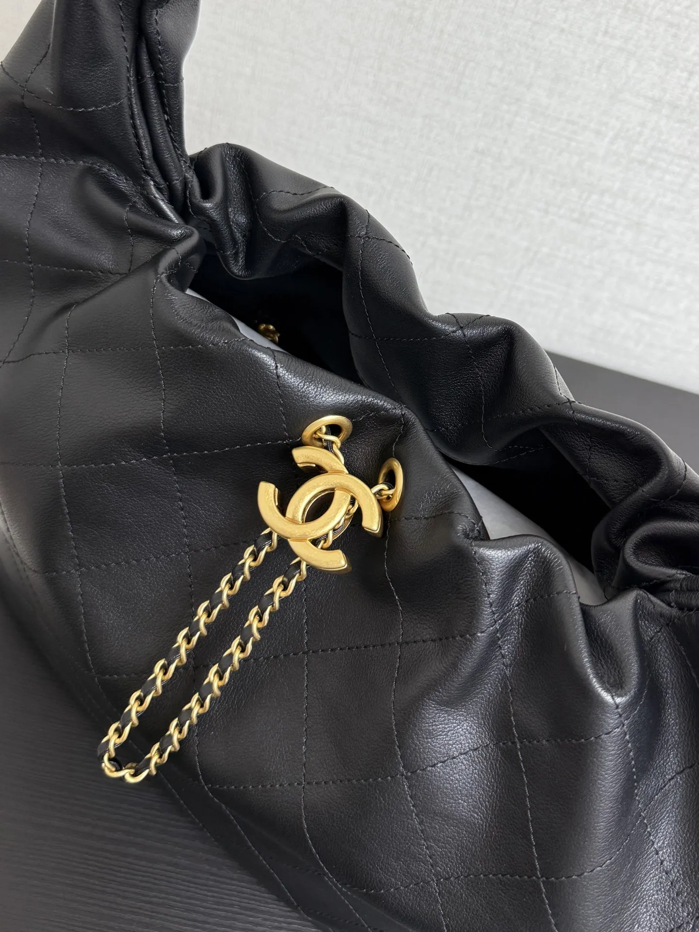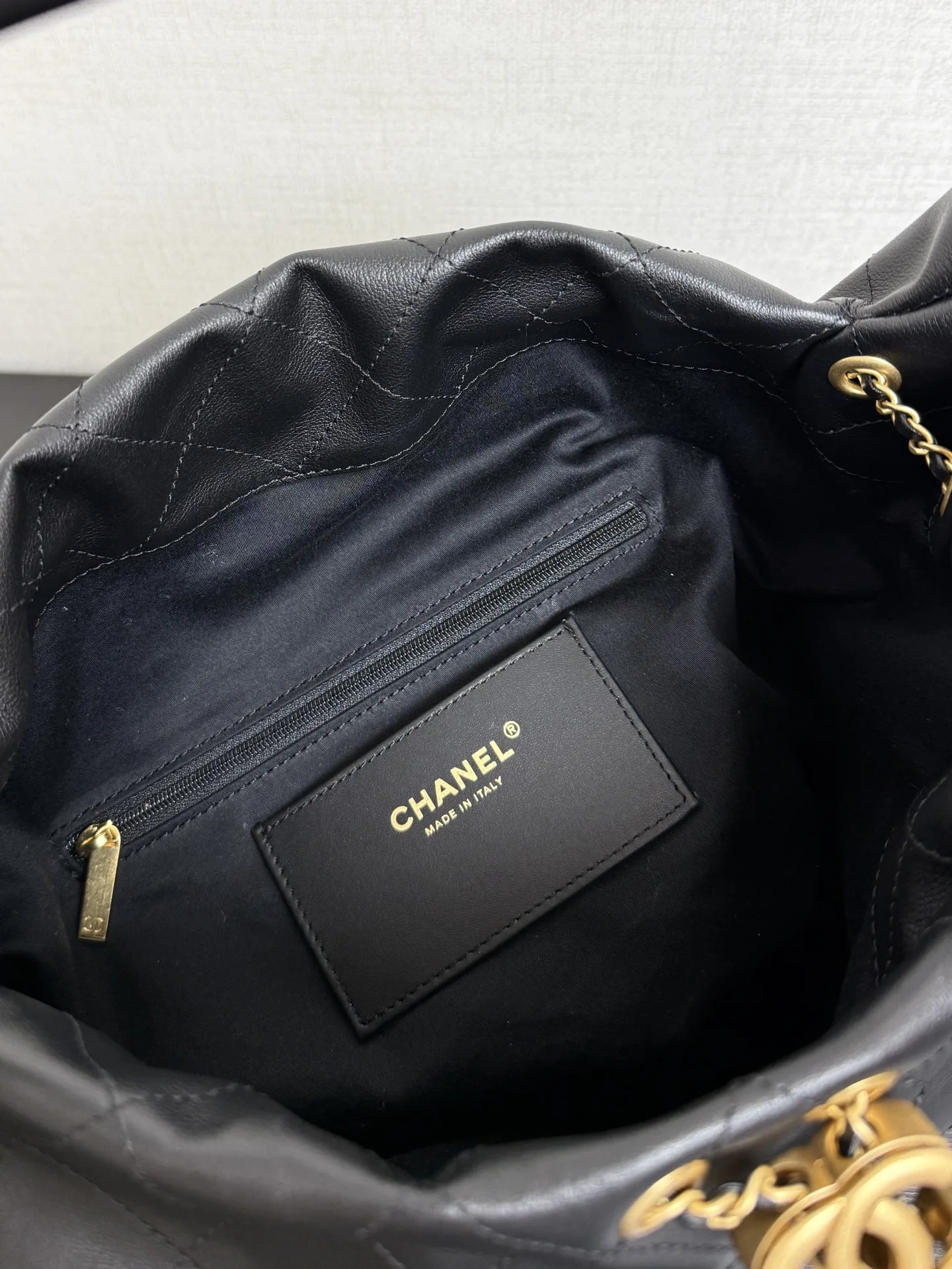 Drawstring opening paired with double C buckle and the same design as the 25bag Very eye-catching, it is the perfect companion for you from casual to elegant. Size: 37*26*8.5cm 99533