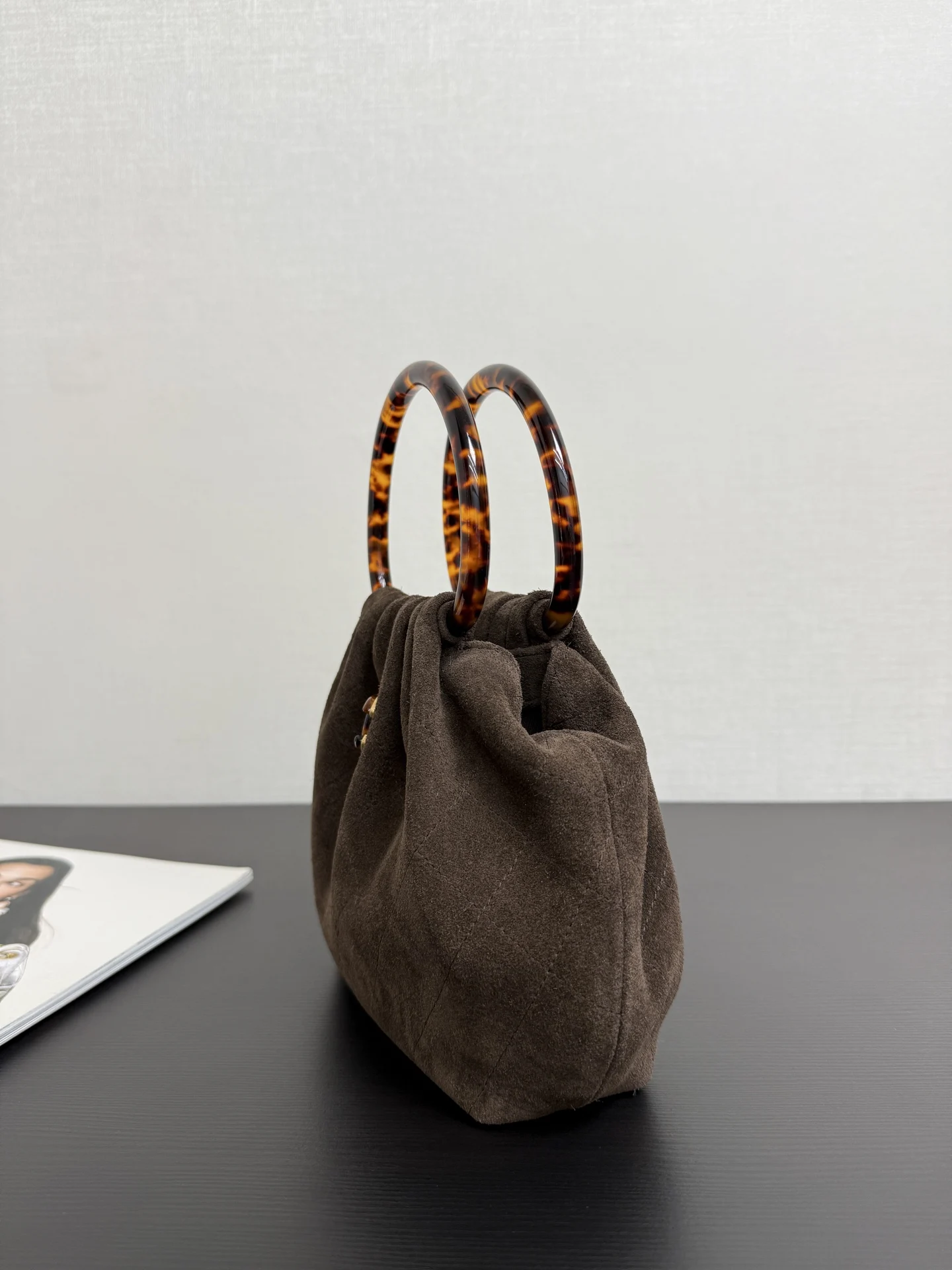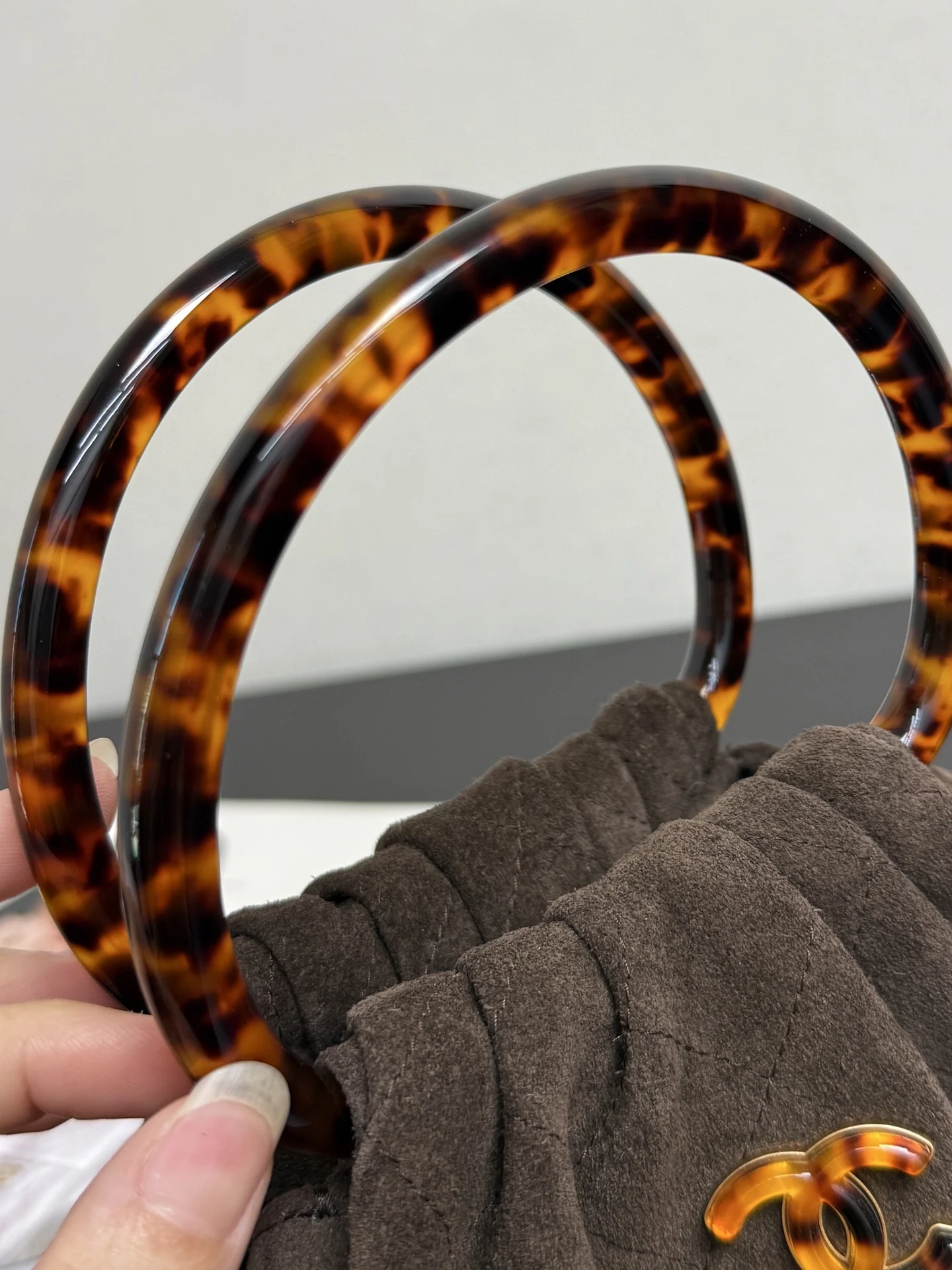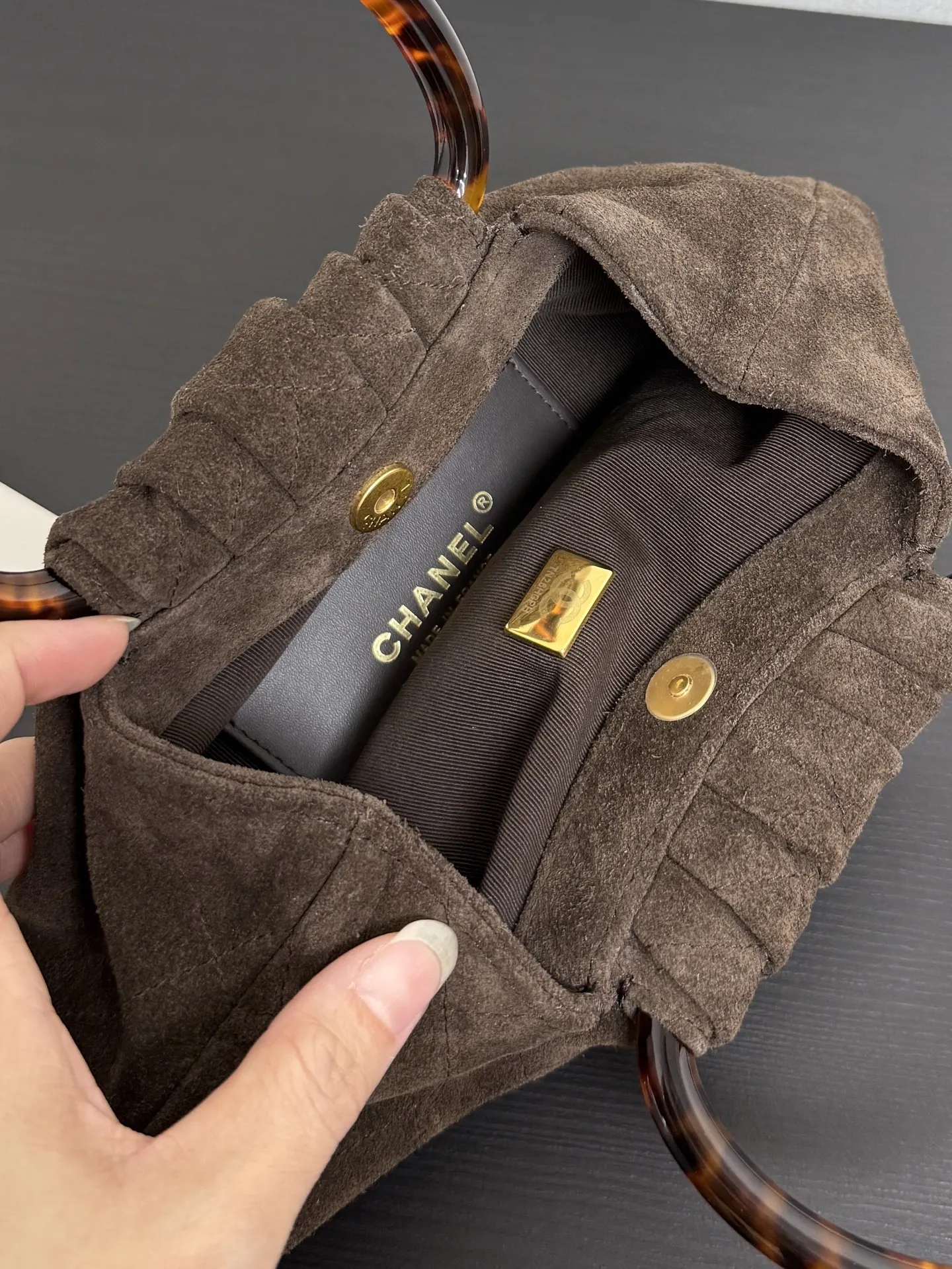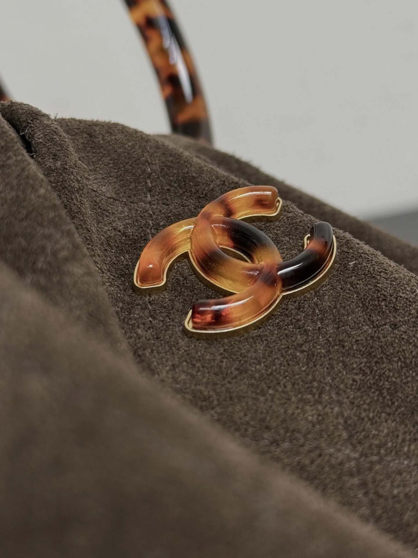 Chanel 99535 Tortoiseshell Handle Suede Small Bag Women s Handbag