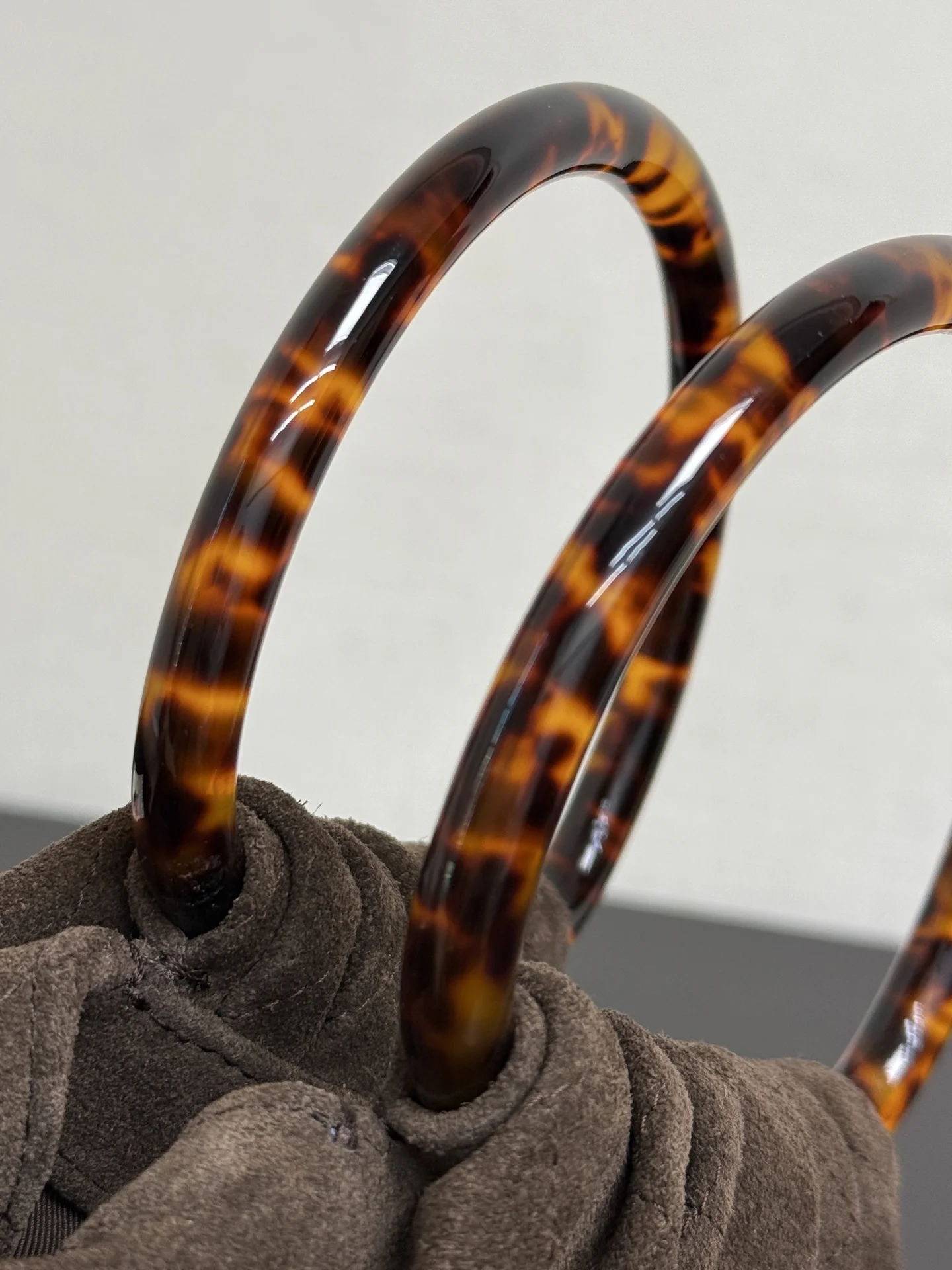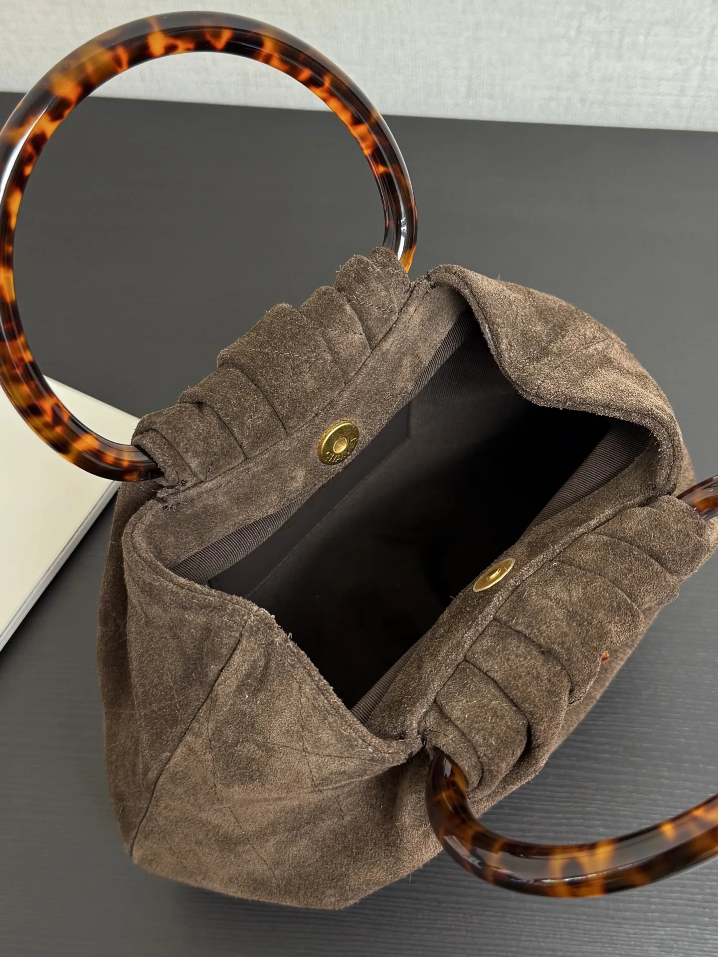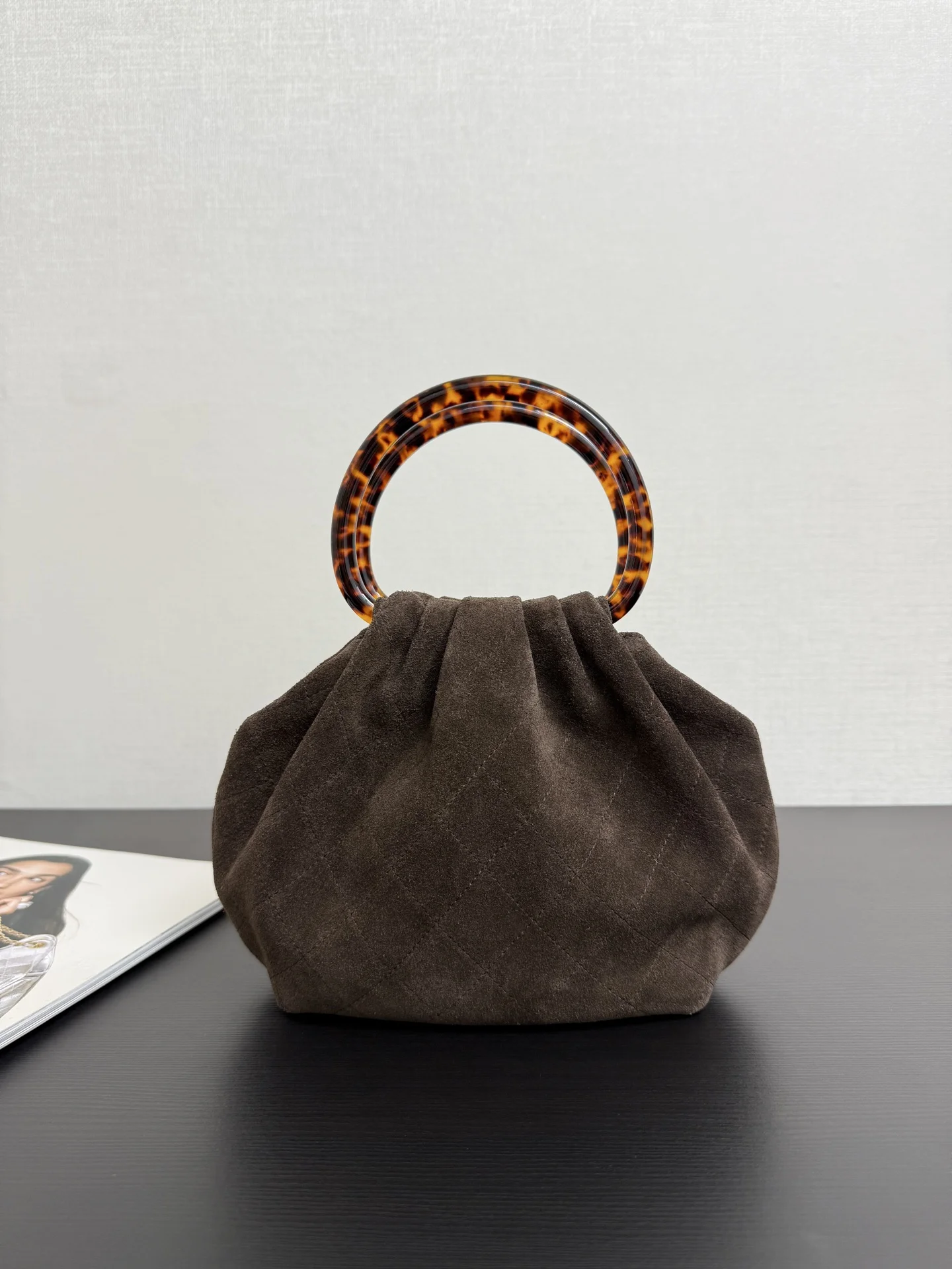 Original factory leather in stock 26C early spring vacation series tortoiseshell handle suede small bag The round small bag is so cute The design of the retro tortoiseshell handle..