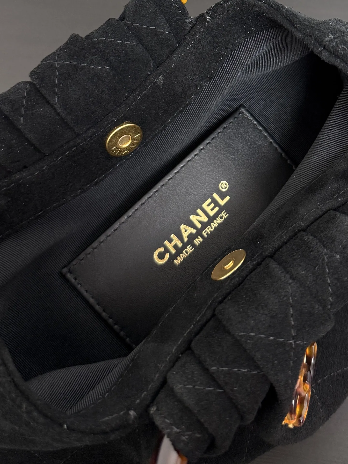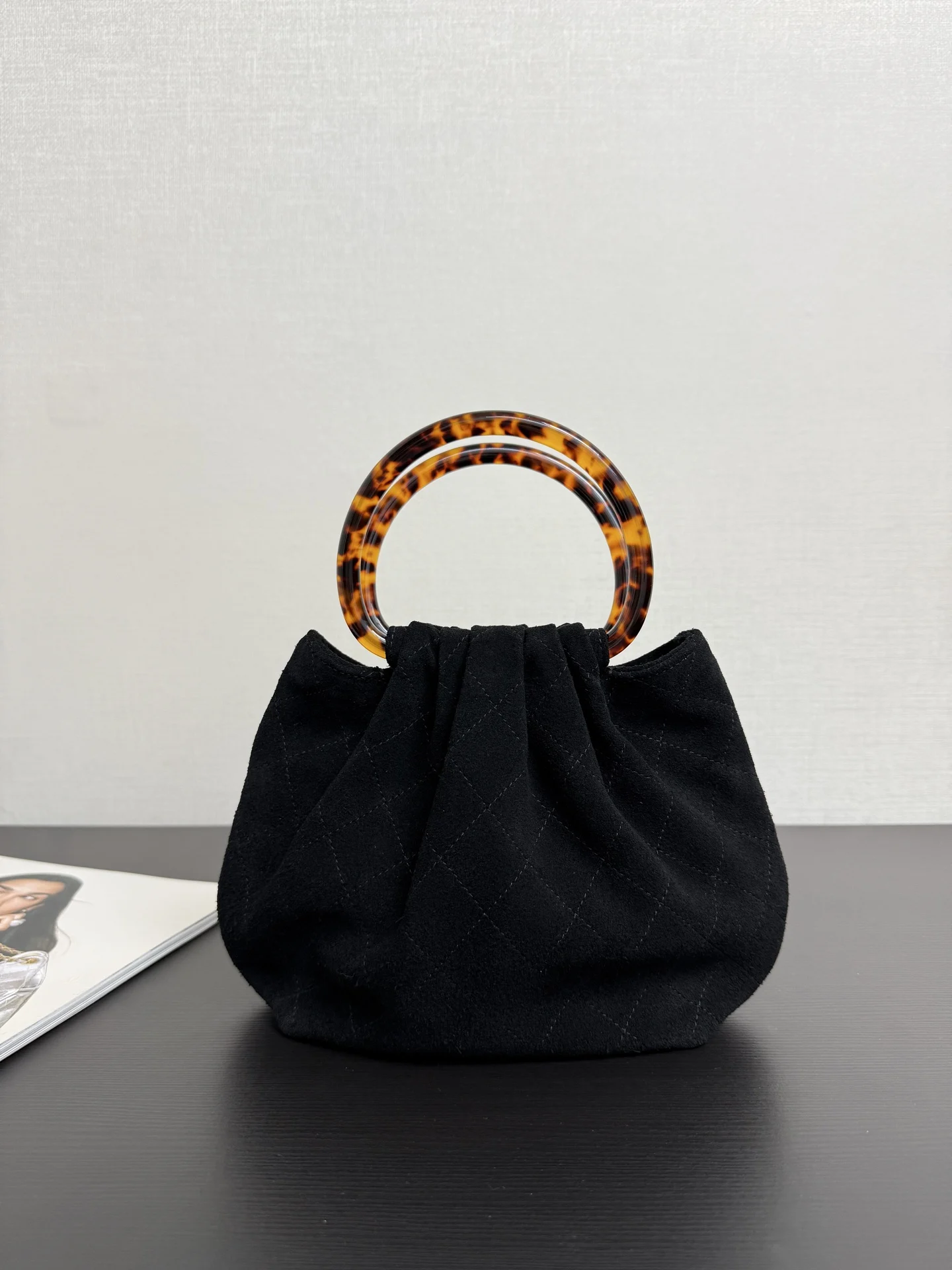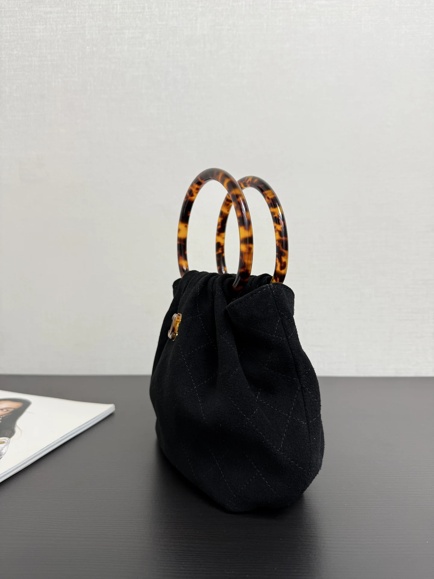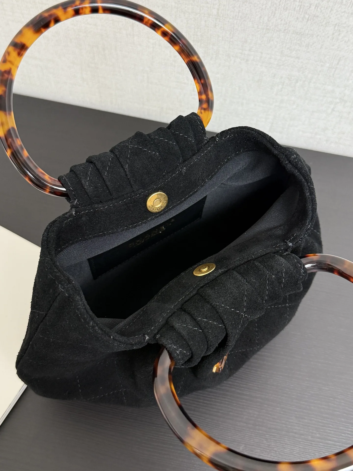 Chanel 99535 Tortoiseshell Handle Suede Small Bag Women s Handbag