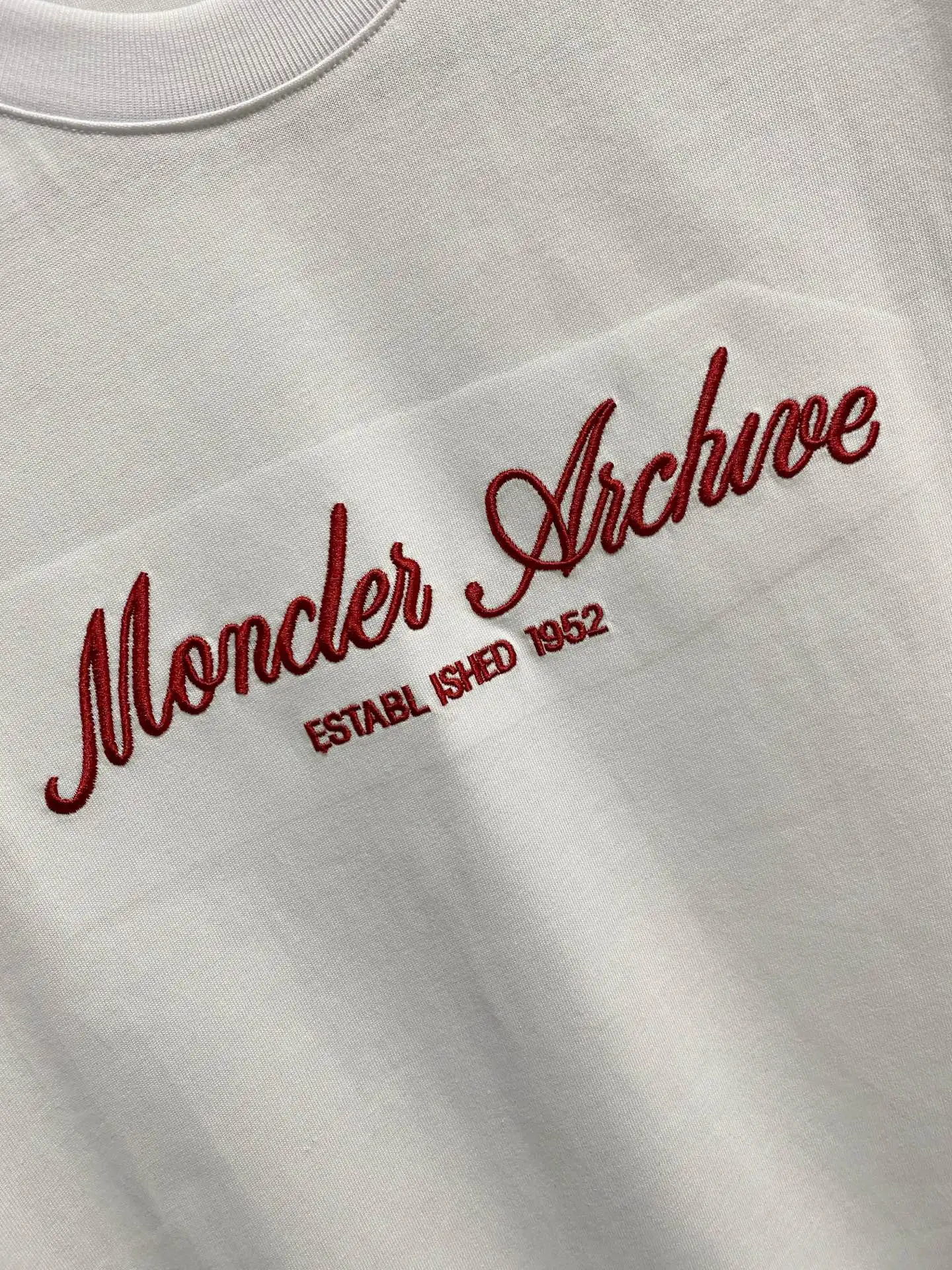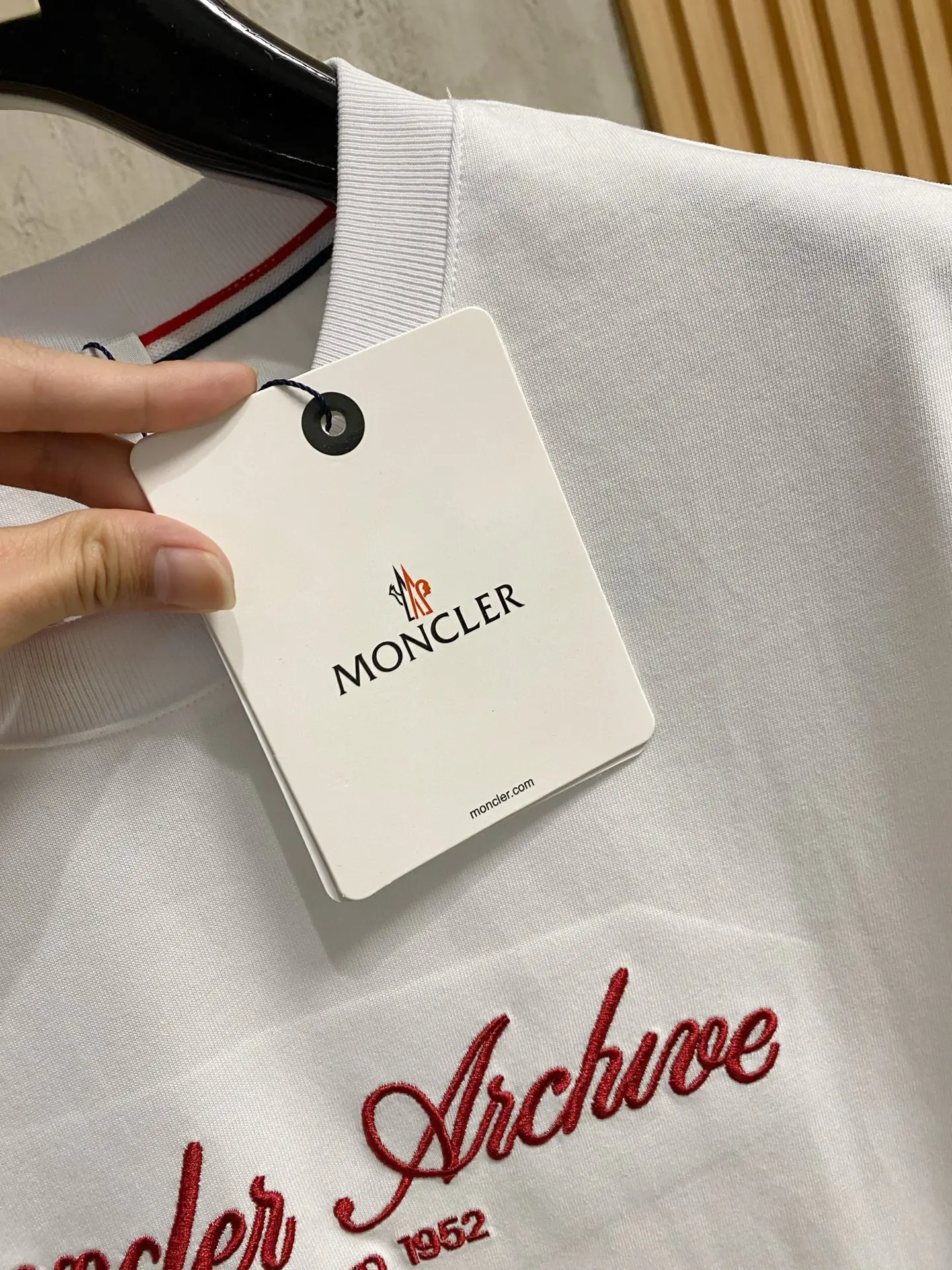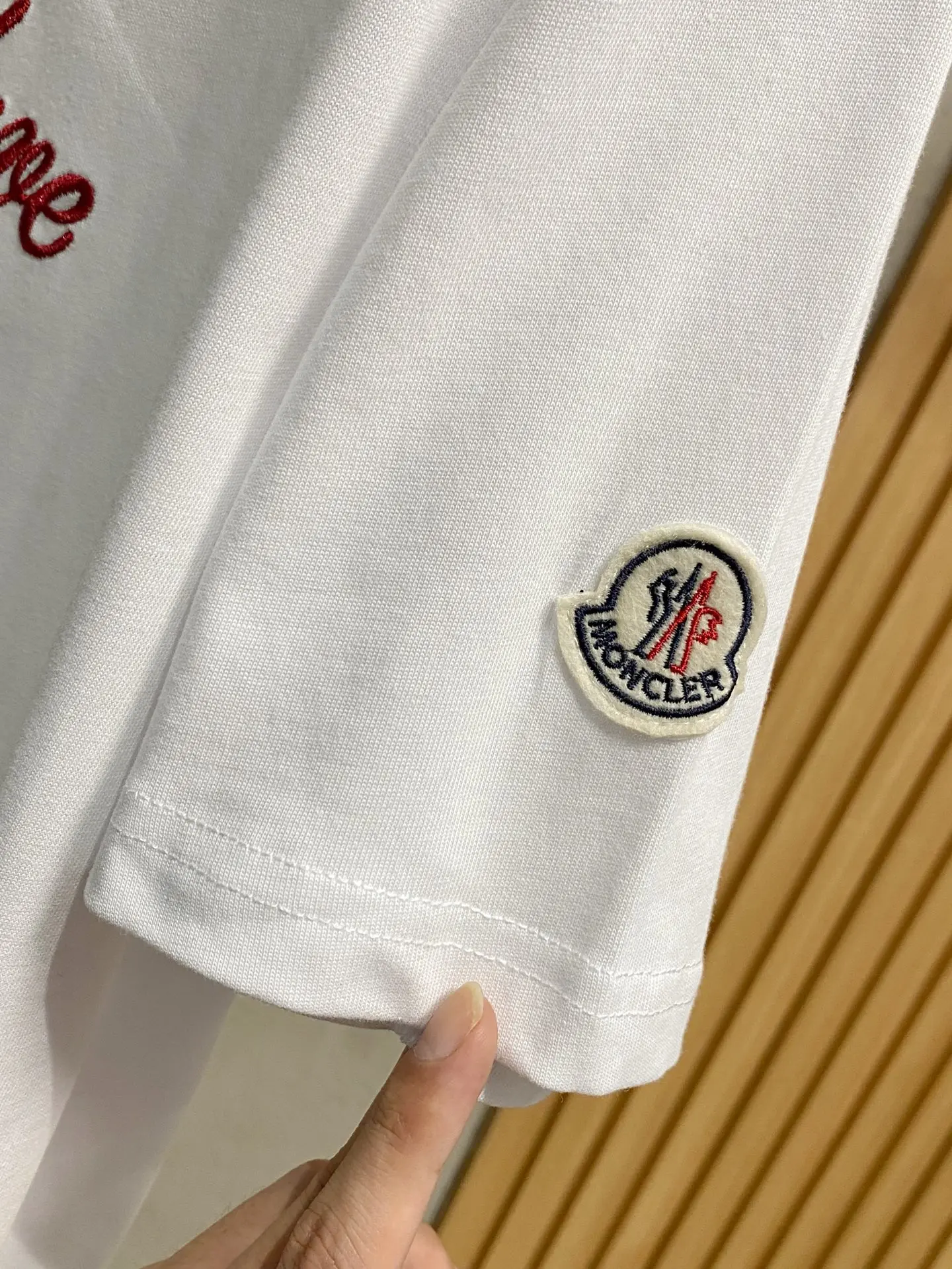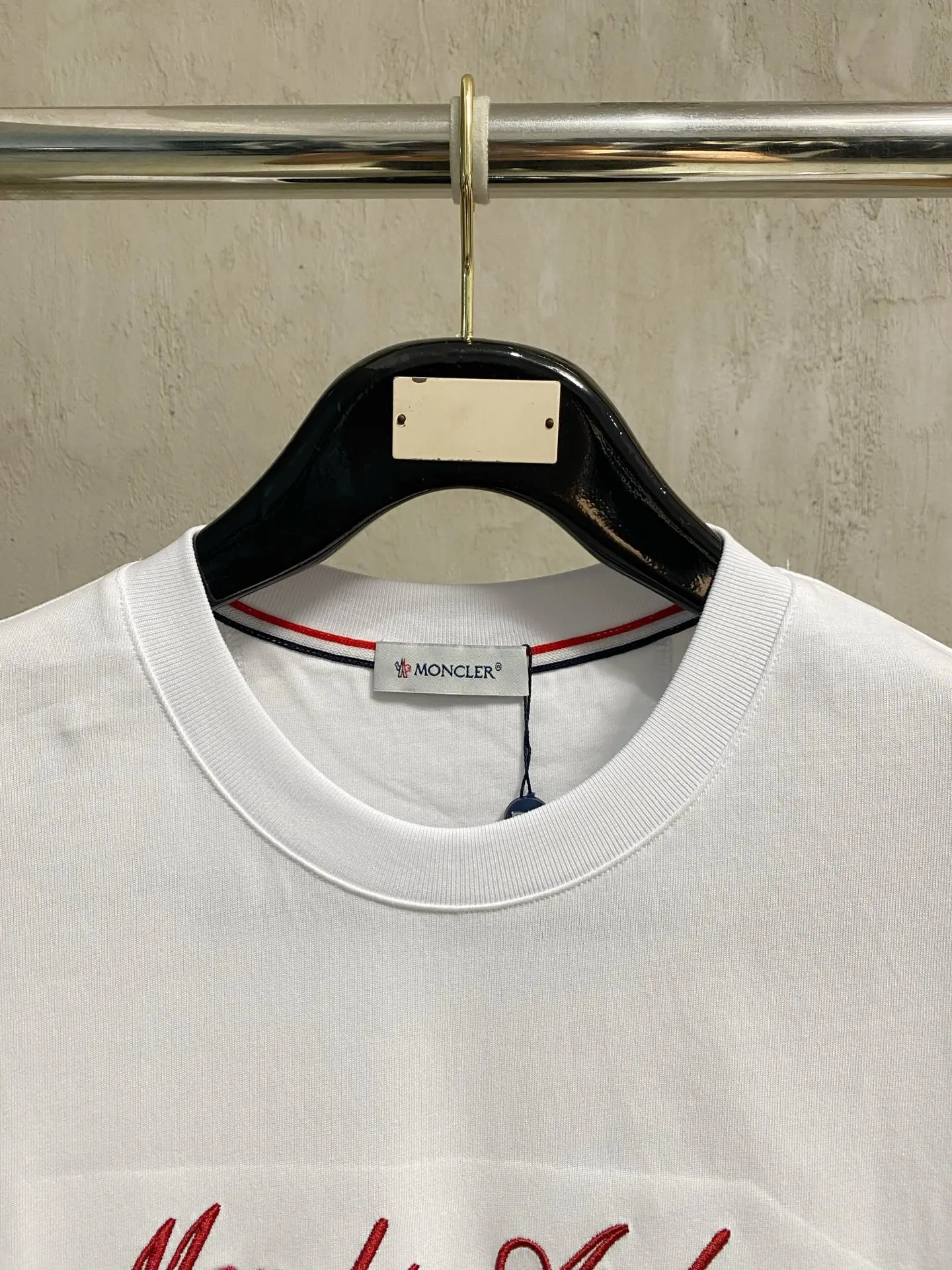 Moncl26ss Spring/Summer New Collection Moncler American Art Signature Series Round Neck Short Sleeve T-Shirt, featuring an artistic signature brand logo on the front along with the text Monestier-de-Clermont France Est.1952 , simple yet recognizable. The left sleeve is adorned with a felt embroidery classic logo, creating a basic item for men s wardrobe and injecting new ideas. The custom fabric is of high-end quality, with excellent elasticity, wrinkle resistance, and yellowing resistance, maintaining its shape after prolonged wear and washing;