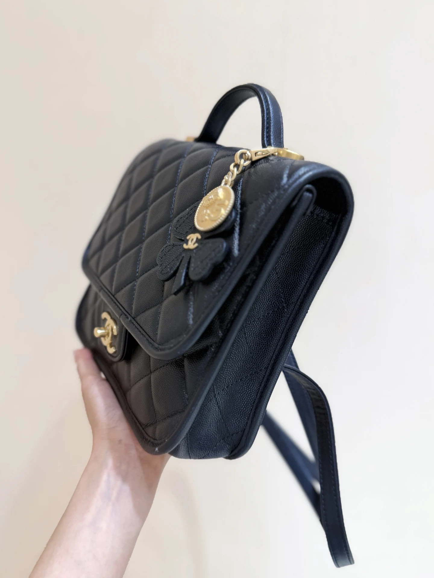 Purchase of ZP 55700Chane1 25B Coin Four-Leaf Clover Double BackpackThe black gold lady is really beautiful!It has a very classic and timeless design, and the coins can be freely d..
