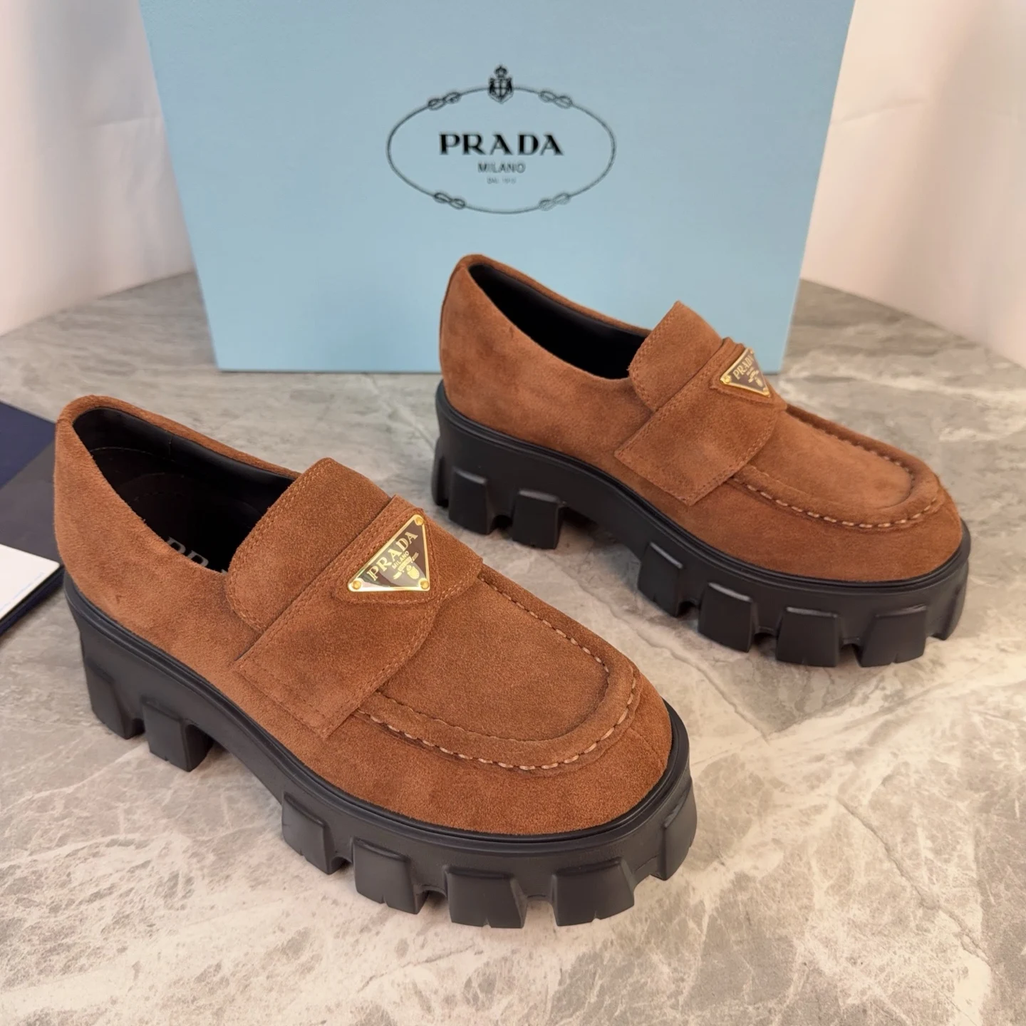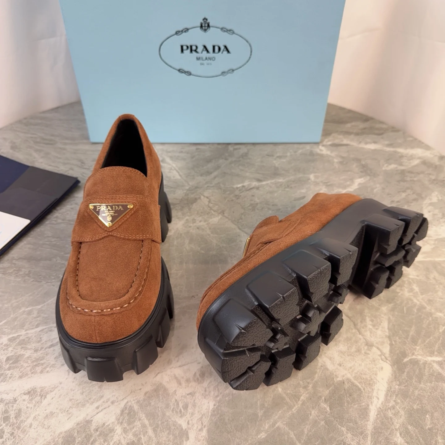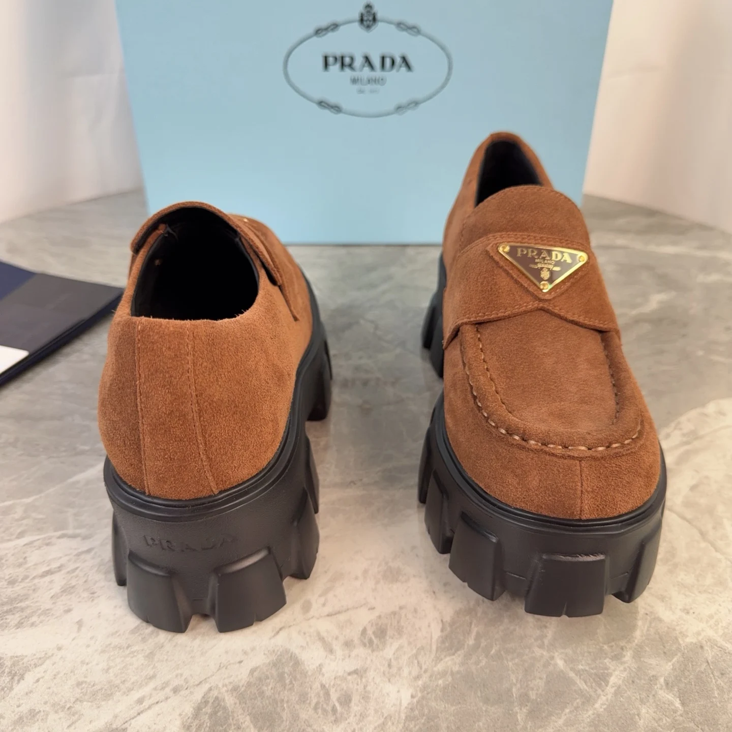 Prada Back-bottom loafers, couple s loafers.
