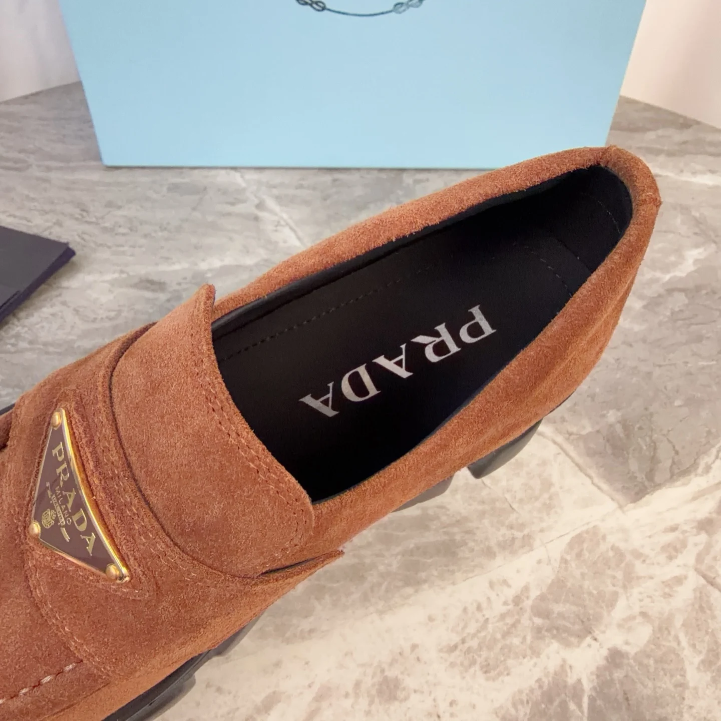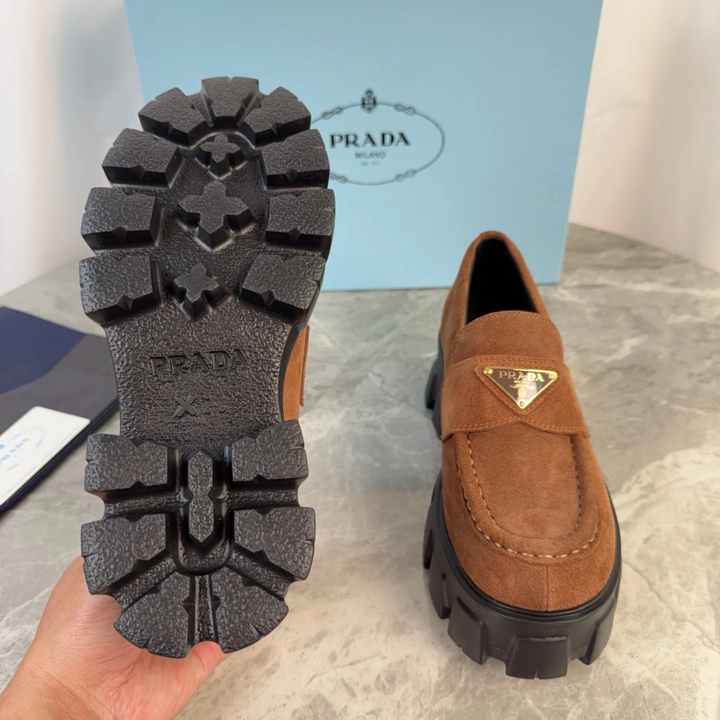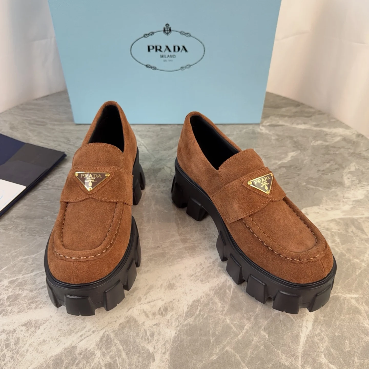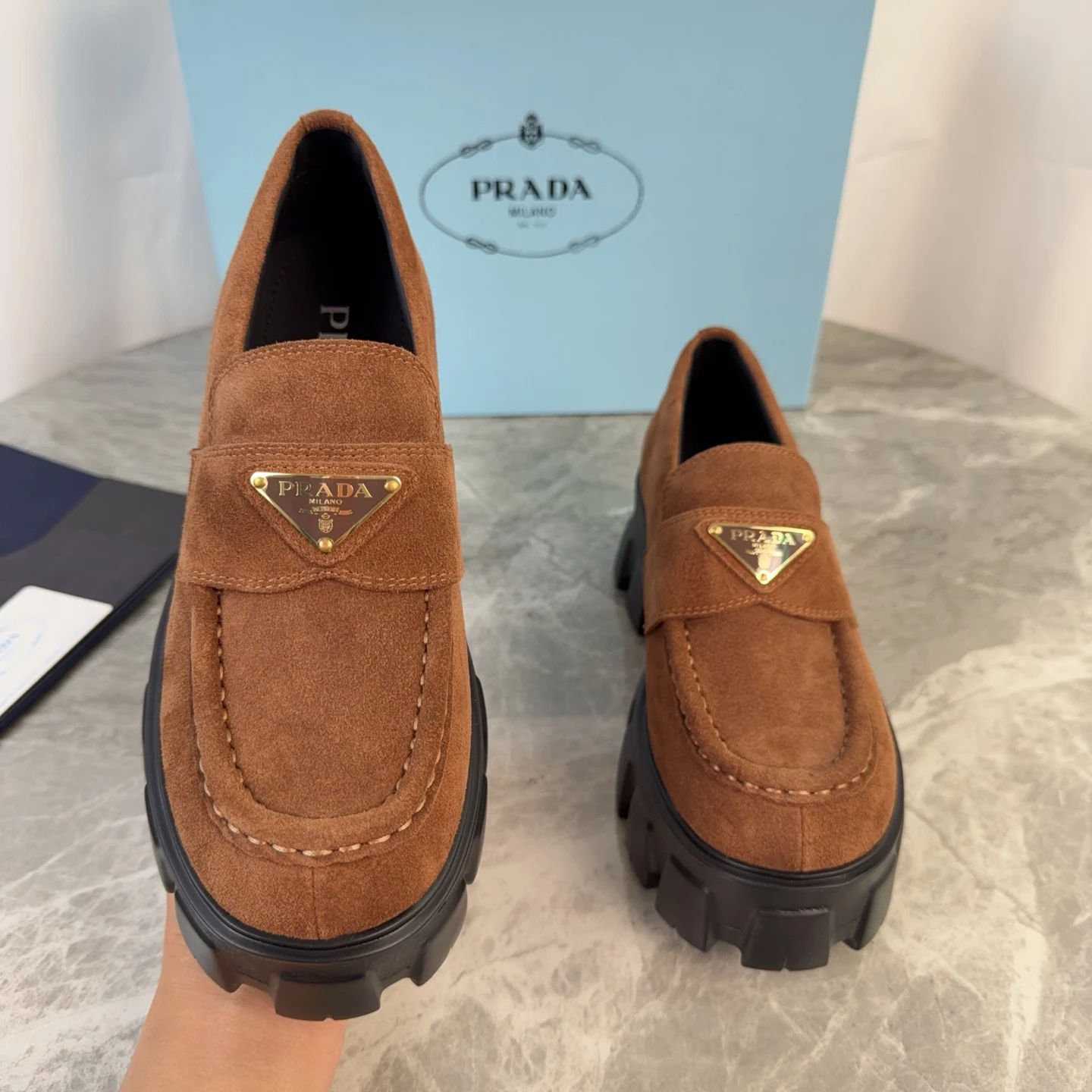 Prada Back-bottom loafers, couple s loafers.