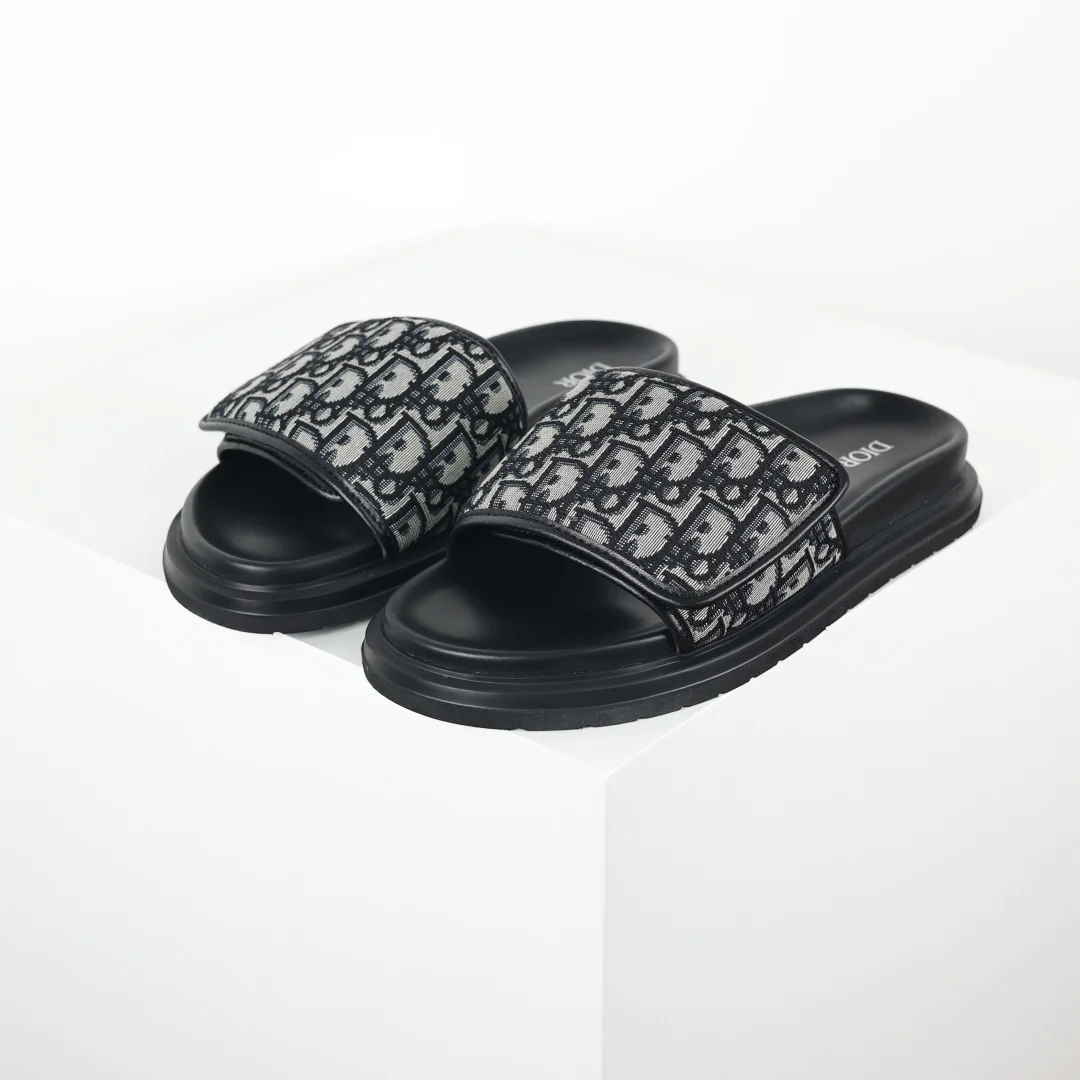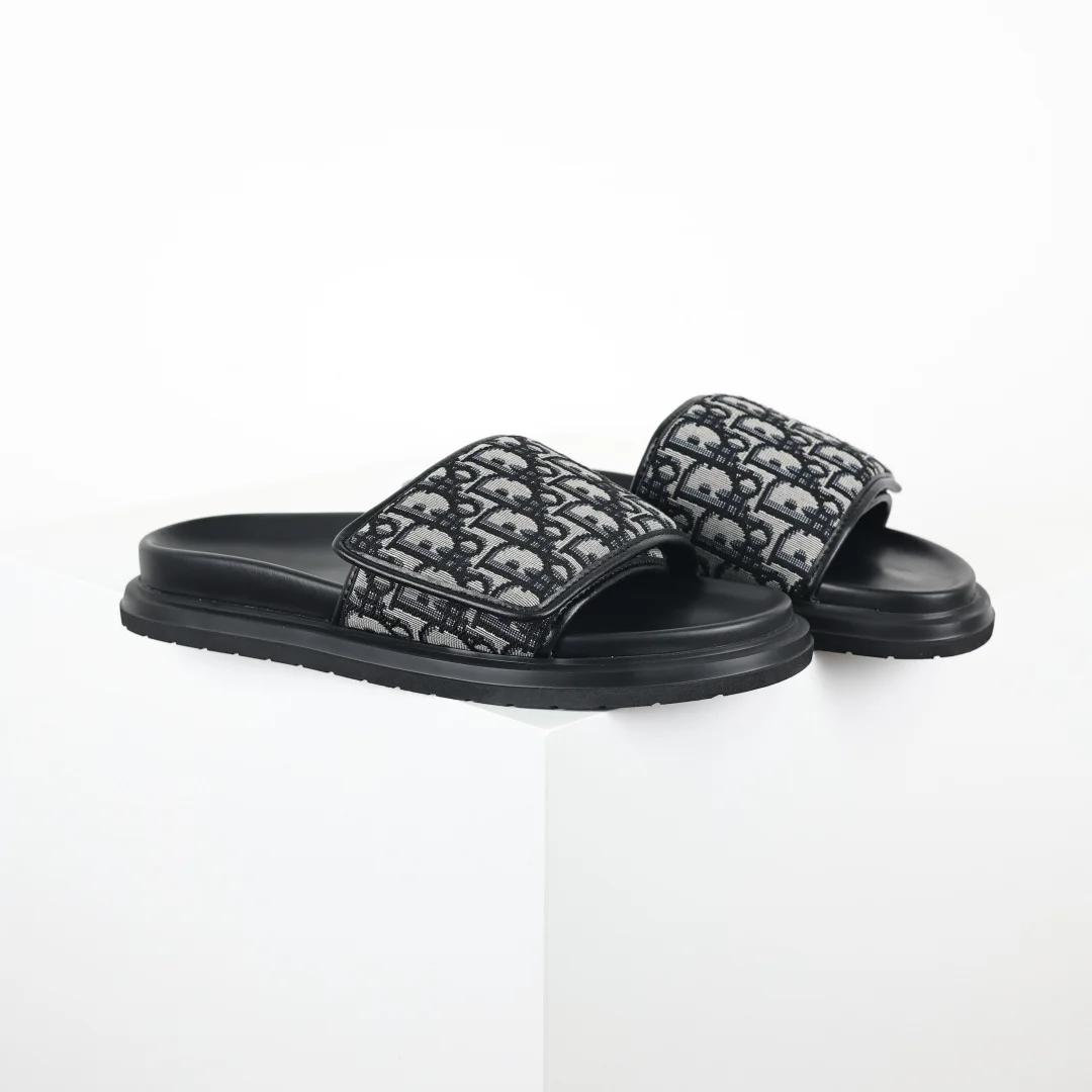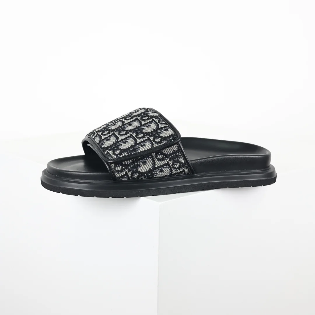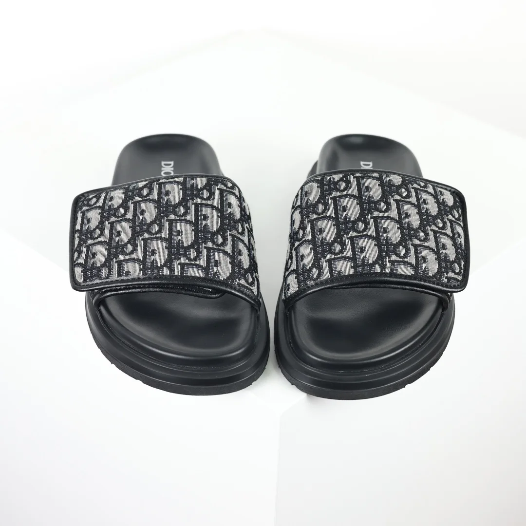 Dior Classic black round-toe Velcro thick-soled slippers