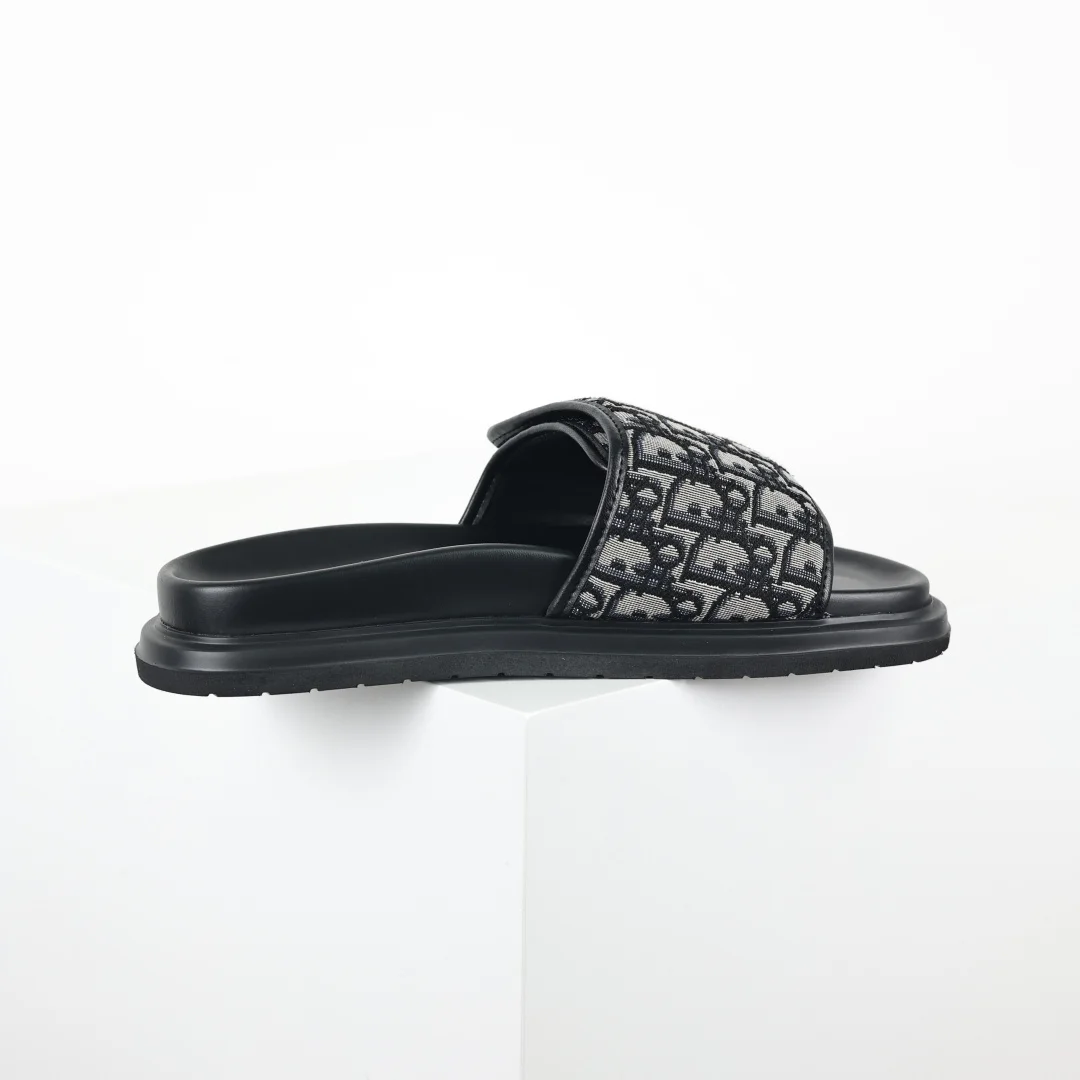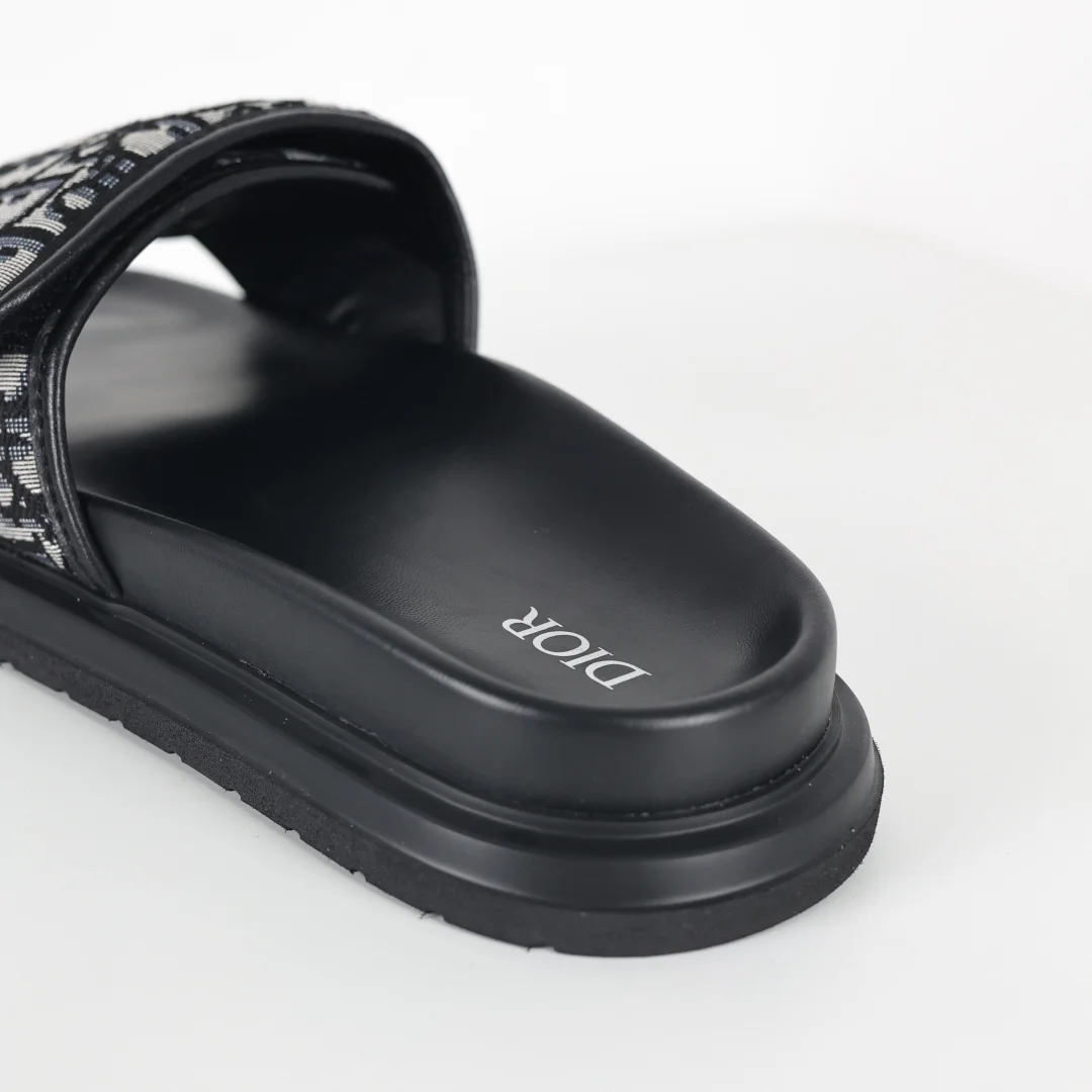 Originally purchased for development, this D1or H-Town sandal pays tribute to the classic sports style emblem, showcasing D1or s haute couture spirit. Crafted from black rubber, it features an Oblique printed upper, adorned with tonal leather details to enhance sophistication. Sizes: 40 41 42 43 44 45 46