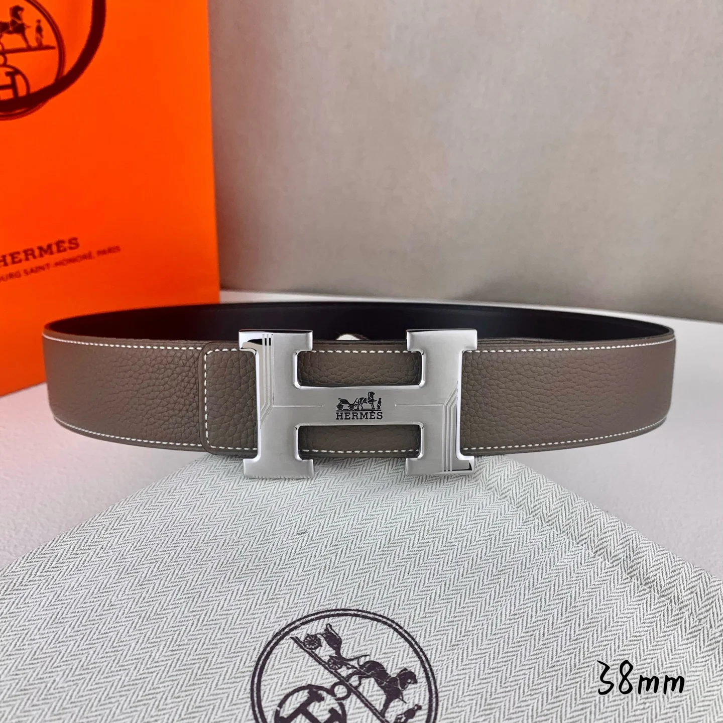 The complete packaging of the men s belt is highly regarded for its exquisite craftsmanship, high-quality materials, and classic design, making it a top choice in men s fashion accessories. The most iconic design features a buckle with the H logo, which is simple yet elegant and highly recognizable, suitable for both business and casual occasions. It is not only a practical accessory but also a symbol of status and taste. Whether in a business setting or casual attire, it adds a sense of sophistication and refinement to the overall look.