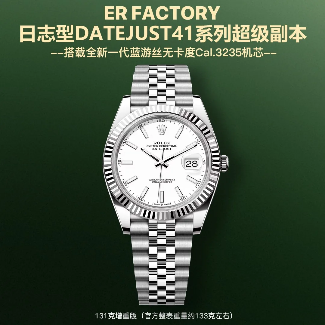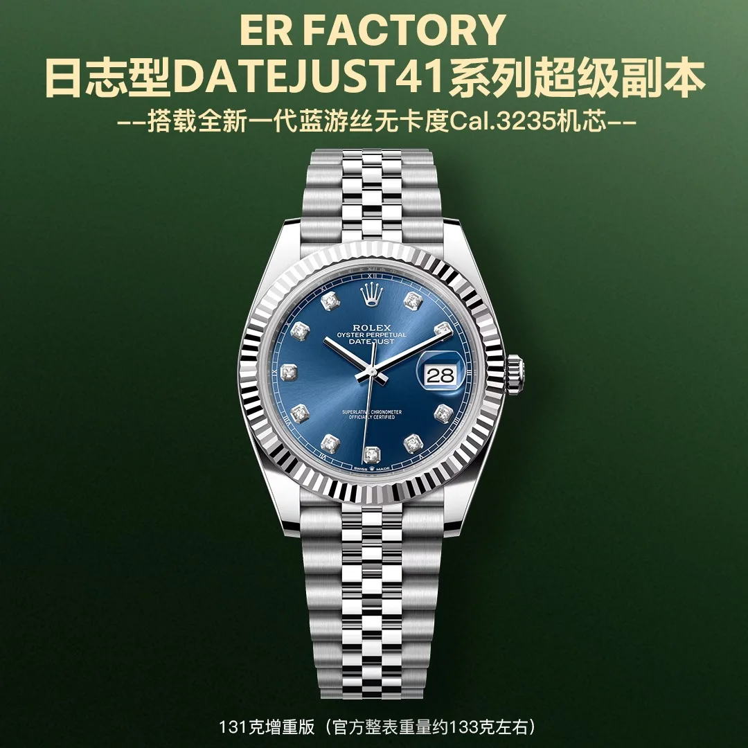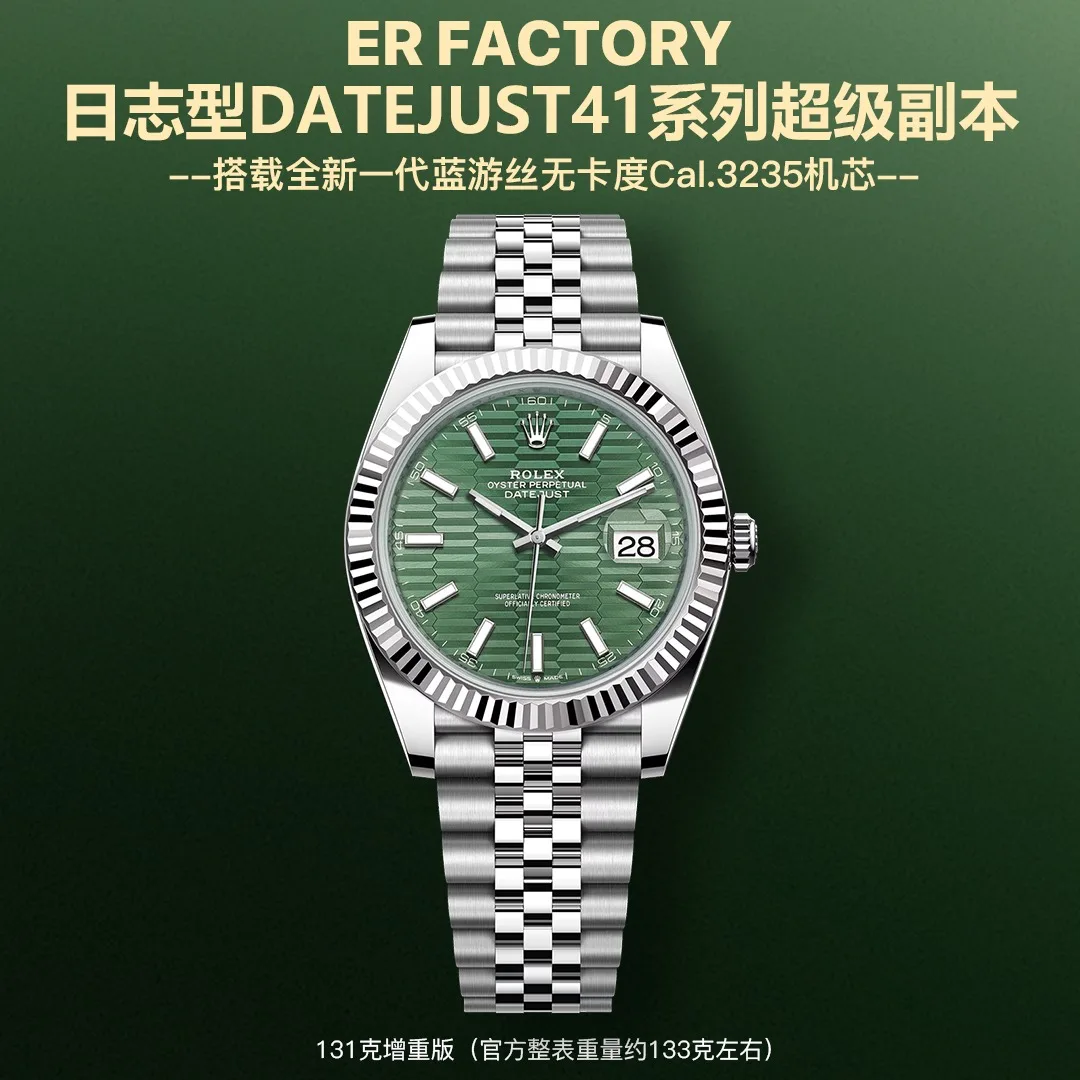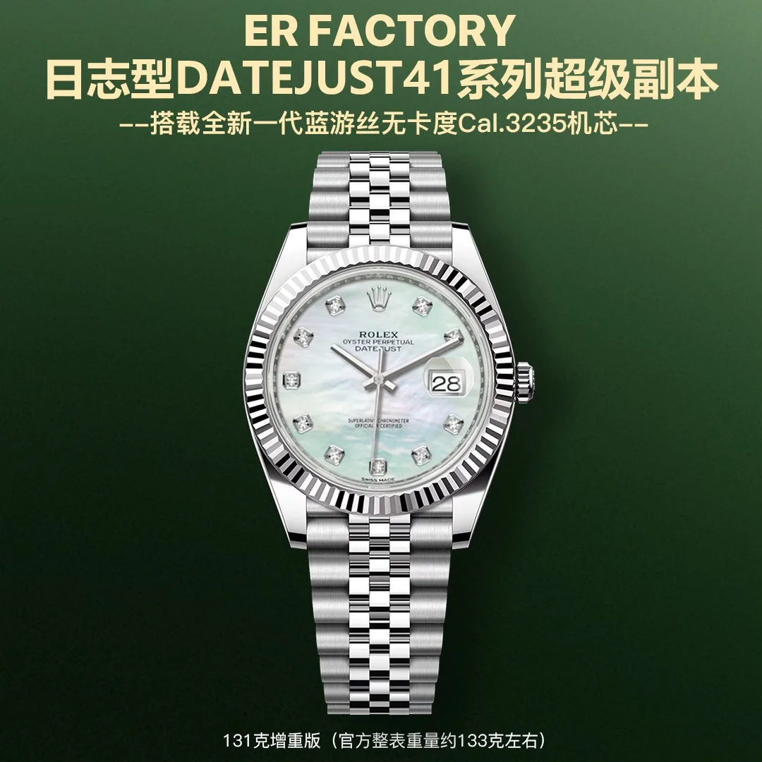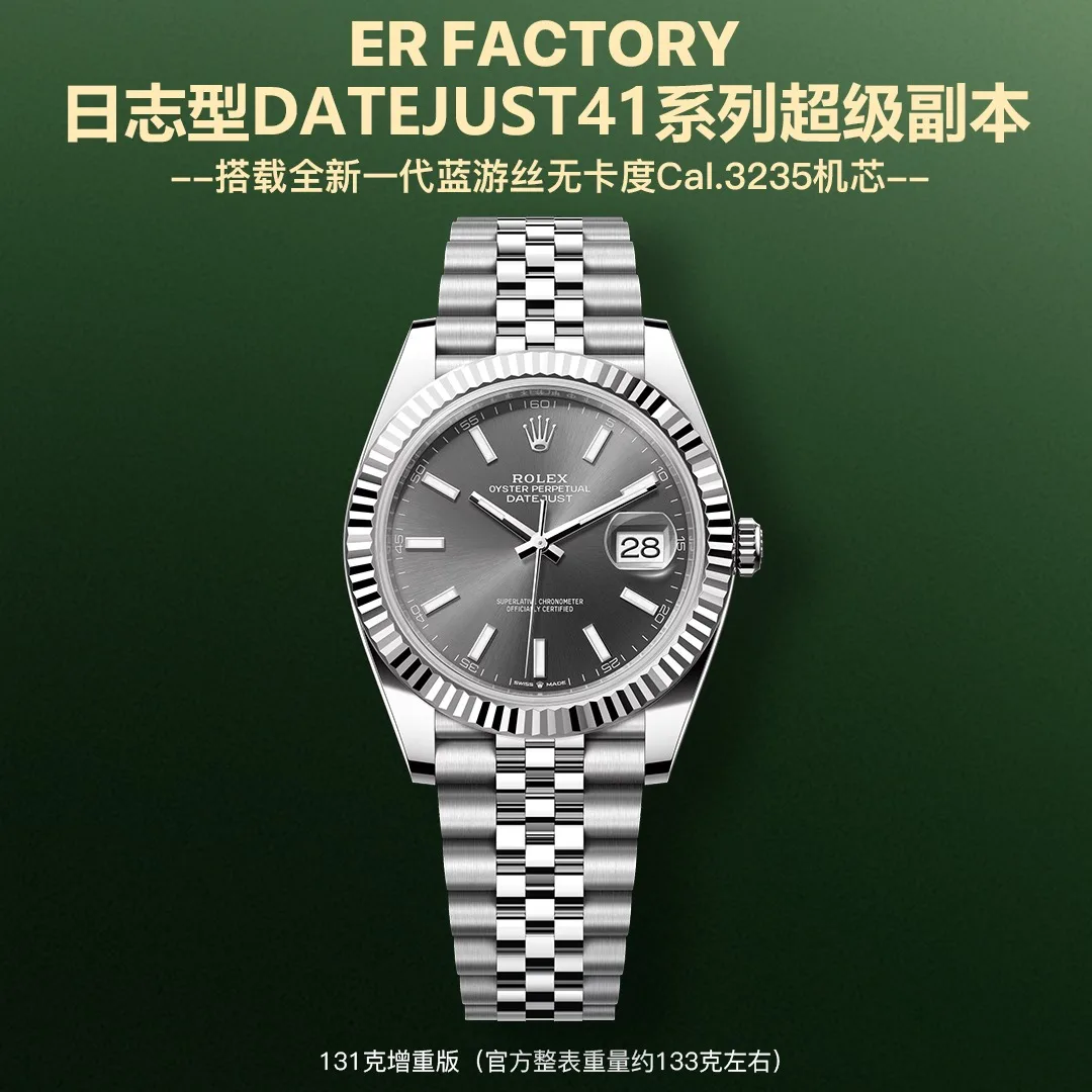 ERF Rolex ROLEX C2 Datejust Series 41mm with Weight All the stunning features come from continuous breakthroughs, another super clone in the history of clone no-card movements: the latest Datejust41 series from ERF factory - 131.5g weight-enhanced version (official total weight is approximately 133g). Sun Production delicately recommends men s mechanical wristwatch